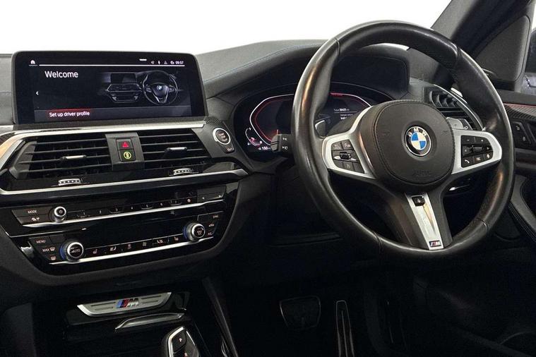 Connected pack professional - X3, Visibility pack - X3, Low rolling resistance tyres, Central locking switch for all doors, fuel filler cap and luggage compartment, Electronic engine immobiliser, Locking wheel nuts, Remote control including two integrated key - one button for open/close all lockable content, windows and separate button for open luggage compartment, Remote control Thatcham category 1 alarm, Start/stop button with Comfort Go keyless engine start and auto Start/stop deactivation button, Auxiliary socket for external MP3 player, BMW professional radio/CD/MP3, DAB Digital radio, ABS/EBD, ADB - Automatic Differential Brake, Automatic Stability Control (ASC), Battery safety cut-off, BMW emergency call, Brake assist, Brake drying, Brake energy regeneration, Braking pre-tensioning, CBC - (Cornering brake control), Child locks on rear doors, Crash Sensor - activation of central locking release, hazard warning light and interior lighting, Deactivation of fuel pump in the event of a crash, Driver and front passenger front and side airbags with passenger deactivation and ITS front and rear head airbags, DSC+, Dynamic brake control, Dynamic Traction Control - DTC, Electromechanical parking brake, Front seat belts warning, Hill descent control, Hill start assist, M Sport braking system, Seatbelt security check for front seats, Side impact protection, Three point seatbelts to all seats with front and outer rear pyrotechnic belt tensioners and seat belt force limiters, Two tone horn, Tyre pressure monitoring system, Ventilated front and rear disc brakes, Warning triangle and first aid kit, Acoustic glazing, Black finish on B pillars, Body colour door handles, Body colour roof mouldings, Body coloured bumpers, Cerium grey air breather, Cerium grey air inlets, Cerium grey frame and kidney grille with high gloss black vertical slats, Direction indicator, side repeaters, integrated in exterior mirrors, Dual black chrome quadrilateral exhaust tips, Dynamic brake lights, Electric adjustable heated door mirrors, Exterior air inlets, mirror caps and air breather in cerium grey, Exterior mirrors - electrically folding with anti-dazzle, Fingertip control / anti-trap function on electric window, Follow me home headlights, Front and rear bumper system with replaceable deformation elements, Front and rear electric windows, Green tinted heat insulating glass, Heated windscreen washer jets, Height adjustable headlamps, High gloss black door sill finishers, High gloss black shadow line roof rails, High gloss shadowline exterior trim in decorative moulding side frame/recess cover/guide rail/B, C pillars/mirror frame and triangle with mirror base, High level 3rd brake light incorporating LED Technology, Interior rear view electrochromatic mirror with automatic anti dazzle function, LED daytime running lights, corona ring style, LED front fog lights, LED Indicators, LED tail lights, Lightweight engineering, M aerodynamic bodystyling, Model designation, Rain sensor including auto headlights activation, Rear wiper, Shark fin antenna, Trim designation deletion on side, Visible VIN plate, Welcome lighting, Windscreen wipers with adjustable interval, 12V socket in centre console and luggage area, 3 rear headrests, 3 zone automatic air conditioning, 4 lashing points to secure luggage, Ambient lighting, Anthracite headlining, Anthracite Velour floor mats, Driver/passenger sunvisors with ticket holders + illuminated vanity mirrors, Electric adjustable seats with memory function, Foldable boot floor with storage compartment, Four grab handles integrated in roof lining, Front and rear bottle holders integrated into door trim storage compartments, Front and rear side armrests integrated into door trim, Front centre armrest with storage compartment, Front footwell lights, Front/rear courtesy lights with soft on/off dimming, Front/rear reading lights, Height adjustable front/rear head restraints, Isofix rear child seat preparation, Leather gear knob, Luggage area underfloor compartment, Luggage compartment lighting, M leather steering wheel, Parcel shelf removeable and storable under boot floor, Reach and rake adjustable steering column, Rear centre armrest with 2 cupholders, Removable / retractable luggage cover, Slope adjustable rear seats, Storage compartment in rear centre console and front/rear door trims, Through loading system with 40/20/40 split folding rear seat, Toolkit located in luggage compartment, Two front cupholders with removable oddments tray/lid, Vernasca leather upholstery, Active Guard incl speed limiting and lane departure functions with auto steering, and front collision warning with brake intervention, Attentiveness assist, Automatic tailgate operation, BMW Live Cockpit Professional sat nav system including 10.25" high resolution display and Intelligent Voice Assistant, BMW Online services, BMW Teleservices, Brake pad wear indicator in front and rear, Check Control warning system for monitoring of lights and door/luggage compartment open warning, Control display - 6.5" colour display screen, iDrive Controller with 8 favourite buttons, Lights on warning by audio warning signal when ignition is switched off, Navigation system - BMW Professional multimedia with Hard disc drive (HDD) and 10.25" touch display, Oil sensor for level and grade, warning by check control system, On board computer - average speed+fuel consumption, service interval, clock/date, odometer/trip meter, outside temperature display and ice warning, Optimum shift indicator, Personal Profile - automatic lock when driving away selectable, Real time traffic information, Semi digital instrument cluster, Stop/start system, Variable sports power steering, Incorrect fuelling protection, M Sport differential, Multi-link rear suspension, Performance Control, Sport automatic transmission,