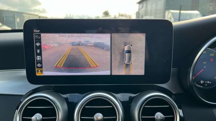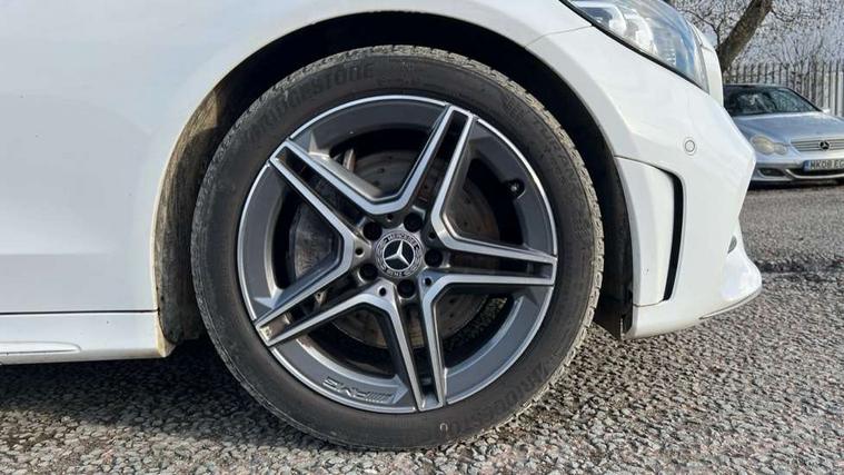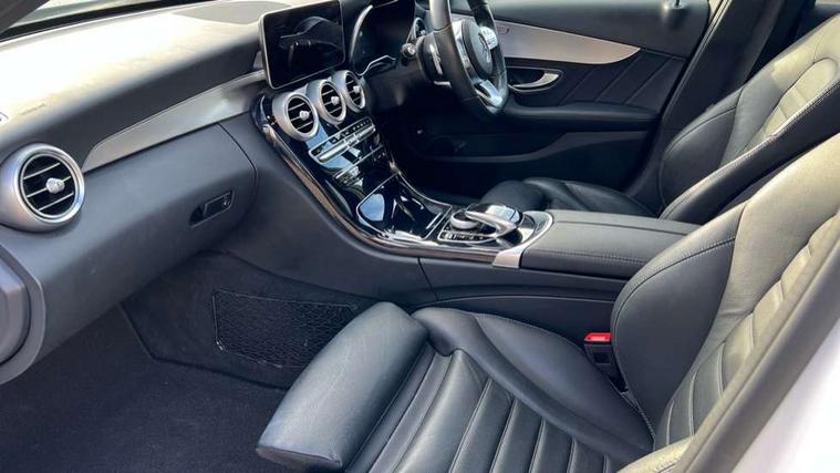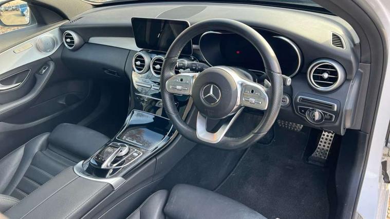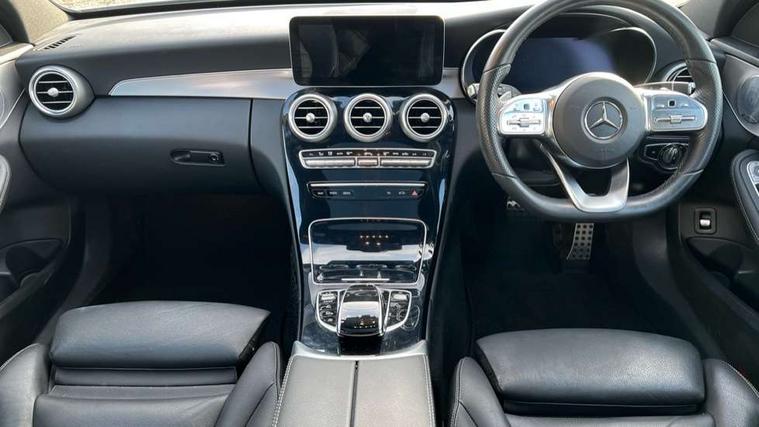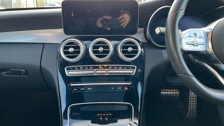 12.3" digital instrument cluster display, 360 degree parking camera, Active park assist with parktronic system, Attention assist, Bluetooth system, Collision prevention assist plus, Comand Online HDD Nav with media interface, radio/CD/DVD/MP3, 10.25 screen, linguatronic voice control, DYNAMIC SELECT with a choice of driving modes (ECO, Comfort, Sport, Sport+ and Individual), Multi function trip computer, Outside temperature gauge, Power opening/closing tailgate, Remote boot release, Service indicator (ASSYST PLUS), Smartphone integration with Apple CarPlay and Android auto, Wireless charging, Petrol Particulate Filter, 2 USB ports in centre console, Burmester surround sound system, DAB Digital radio, SD card slot, Steering wheel mounted audio controls, Adaptive brake lights, Aerial in rear window, AMG body styling, Body coloured bumpers, Body coloured door mirrors, Chrome pins diamond radiator grille with integrated stars, Chrome roof rails, Electric front sliding and fixed rear panoramic glass sunroof, Electric windows one touch open/close, Electrically adjustable and heated door mirrors, Green tinted glass, Heated windscreen washers, LED daytime running lights, LED Indicators, LED tail lights, LED third brake light, Multi beam LED headlights, Rain sensor windscreen wipers, Rear wiper, Side windows surround in polished aluminium, Twin exhaust pipes, 2 cupholders in front centre console, 3 spoke flat bottom AMG steering wheel in nappa leather, 40:20:40 split folding rear seats, AMG floormats, AMG sports seats, Auto Mercedes-Benz child seat recognition sensor, Dual zone automatic climate control, Electric front seat height adjustment, Front and rear head restraints, Front centre armrest with storage compartment, Front door sills with Mercedes Benz lettering, Gearshift paddles, Heated front seats, Illuminated glovebox, Interior lighting - 64 colour Ambient lighting, Load compartment cover, Multifunction steering wheel, Rear top tether child seat ISOFIX attachment, Sports pedals with stainless steel surfaces and rubber studs, Sunvisors with illuminated vanity mirrors, Lighting pack - C class, Mirror pack - C Class, Seat comfort pack - C Class, Stowage space pack - C Class, 3 rear 3 point seatbelts, ABS with Brake Assist, Active bonnet, Adaptive brake system, Black seat belts, Brake calipers with Mercedes-Benz lettering + perforated brake discs, Child proof door locks, Crash sensor, Drivers knee airbag, Drivers pelvis airbag, Dual stage driver/passenger airbags, Electronic parking brake, ESP with ASR, Front passenger seat occupancy sensor, Front side airbags, Hill start assist, Rear seatbelt warning indicator, Tyre pressure monitoring system, Warning triangle and first aid kit, Window airbags, Alarm system/interior protection/immobiliser, Chrome surround in electric key, Keyless entry and keyless start, Remote central locking, Tyre inflation kit,