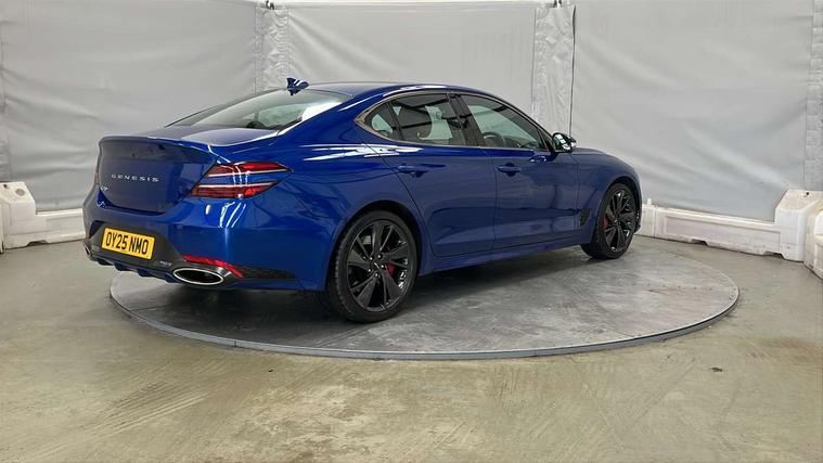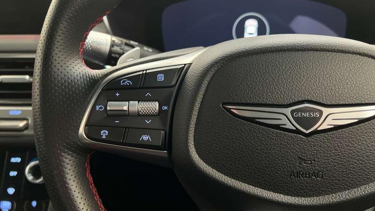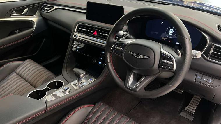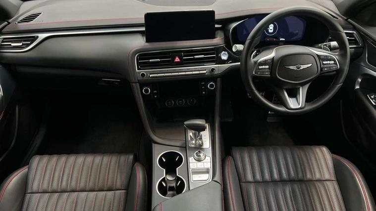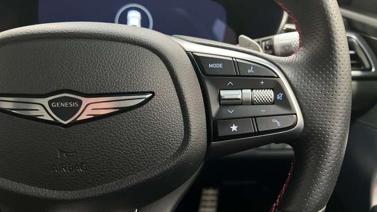 10.25" navi screen + DAB radio + phone mirroring + genesis connected, 8" Dashboard cluster TFT display, Blind spot collision avoidance assist rear (BCA-R), Bluetooth connectivity with voice recognition, Drive mode integrated control, eCall emergency call system, Electric power steering, Electric rear tailgate opening, Electronic chromatic mirror with HOMELINK, Forward Collision Avoidance Assist Junction Turning (FCAJX), Front parking sensors, Highway Driving Assist (HDA), Intelligent speed limit assist (ISLA), ISG with AMS 2, Lane Following Assist (LFA), Lane keeping assist (LKA), Lighting backup guidelines, Low washer fluid warning, Manual speed limit assist (MSLA), Rack and pinion mounted motor driver power steering (MDPS), Rear parking sensors without button, Rear view camera with dynamic guidelines on screen, SCC smart cruise control with stop and start, Trip computer, Wireless phone charger, Battery saver, Electronically controlled suspension, Limited slip differential, Shift by wire - E shift, 1x USB front, Steering wheel audio remote control, Active hood system, Aero blade wiper, Auto up/down windows, Automatic headlights with dusk sensor, Automatic window defogger, Beltline in satin finish, Black painted dual rear muffler and chrome coating, Body coloured bumpers, Body coloured door mirrors, Body coloured outside door handles, Body coloured side sills, Dual front LED low and high projection headlamps with high beam assist, Electrochromic inside rear view mirror, Electrochromic outside rear view mirrors, Insulated hood, Laminated front side glass, LED daytime running lights, LED position lamp, LED rear combination lamp, LED rear fog lamp, LED rear stop light, Outside electrical folding rear mirror, Outside rear mirrors electrical adjustment + heated, Puddle lamps with logo, Rain sensor, Rear boot, Rear door glass + backlite glass (solar + solar), Rear side wing doors, Rear spoiler with high mounted stop lamp, Side repeater lamp in exterior mirrors, Sport appearance, Tow hitch receiver, Windshield acoustic film, Windshield glass + front door glass (solar with sun blind + solar), 2nd row heating floor output, 2nd row remote folding seats, 3 seat bench in 2nd row, 4 way manual headrest adjustment for driver and passenger, 4 way mechanical electric lumbar support for driver, 60:40 split back folding and cushion for 3 passengers, Air purification (PM sensor), Backlight flash heated + timer, Central armrest, Console storage box, Console ventilation duct, Drink holder at centre armrest, Driver and passenger electric seat adjustment, Driver and passenger illuminated LED sunvisor, Driver and passenger seat back panel with pocket, Driver and passenger sliding sunvisor, Driver and passenger vanity mirrors, Driver's seat electric height adjustment, Floor mounted pedal, Foot lamp in front, Front air condition with dual zone adjustment, Front and rear courtesy lamp reflector, Front cup holders, Front passenger seat, Front power outlet, Heated front seats, Heated steering wheel, Height adjustable passenger seat, Ion plated interior door handle, Leather gear knob, LED luggage compartment lighting, Luggage net, Luggage net with hooks, Metallic pedals, Overhead console LED lamp with sunglass case & mood lamp, Paddle shifter, Perforated leather with metal grain steering wheel, Premium air filter, Premium charcoal cabin filter, PTC heater, Room LED lamp in 2nd row, Up/down rear headrest adjustment, USB charger console inside (1port), USB rear charger console outside (2ports), 3x3 point rear seat belts, ABS + ESC + HAC + MCB (Multi Collision Brake), Brembo premium brakes, Driver and passenger depowered airbag, Driver knee airbag, Dual shell horn, Electronic parking brake with auto hold, Forward collision avoidance system (car/pedestrian/bicycle), Front brake ventilated disc 345mm, Front center side airbags, Front thorax and pelvis + rear thorax + side curtain (ff/rr) airbag, Rear brake ventilated disc 330mm, Rear door child safety locks, Rear seat alert without sensors, Tyre pressure monitoring system, Upper and lower rear Isofix child anchor, Central door lock driver's control, Immobilizer + deadlock, Smart key/button start, Aluminum sport dark stripe pattern, Leatherette dashboard, Michelin tyres,