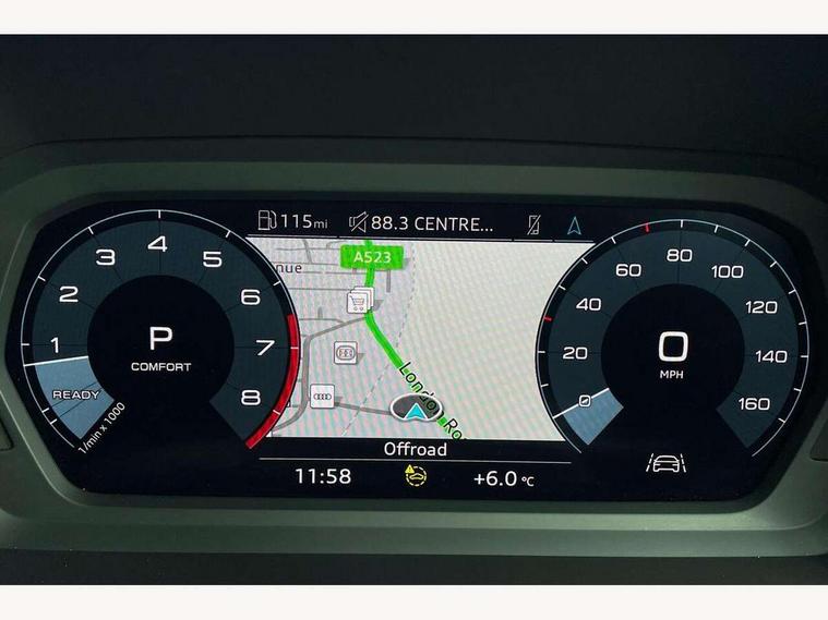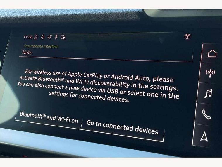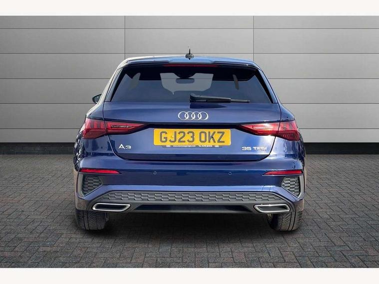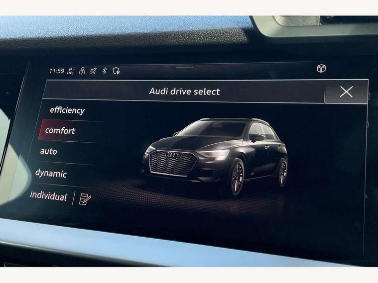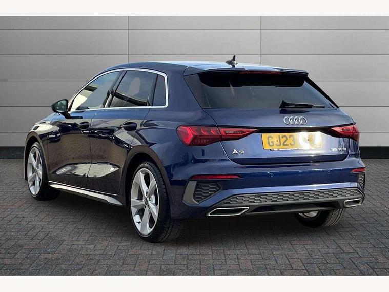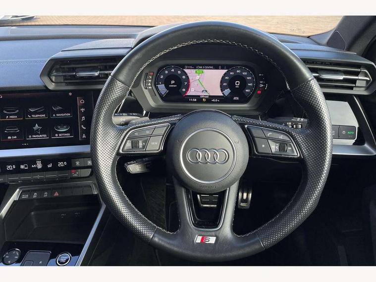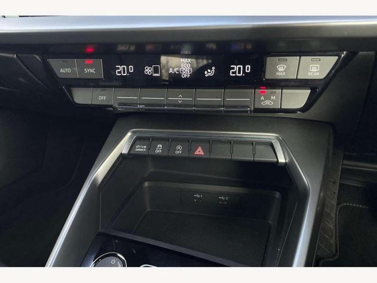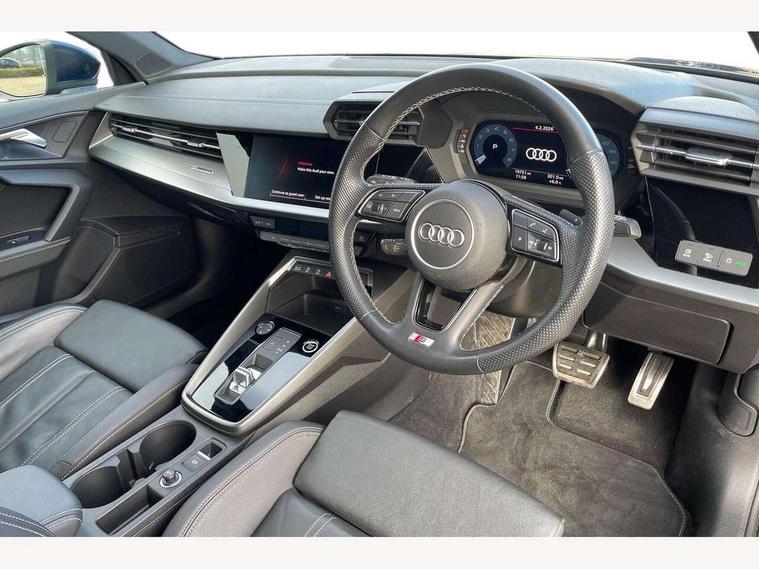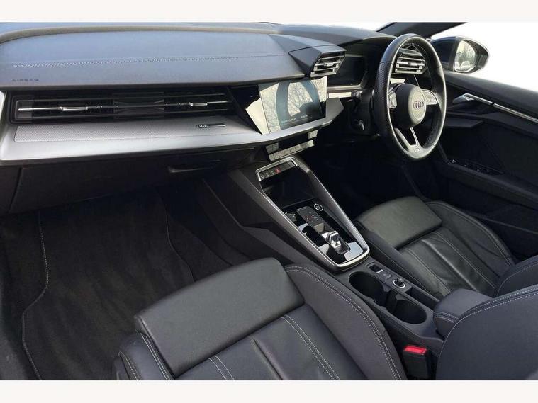 Audi drive select (Auto, Comfort, Dynamic, Efficiency and Individual), Audi smartphone interface, Audi Virtual Cockpit - 10.25" digital and colour instrument cluster, Automatic start/stop system with recuperation, Bluetooth interface, Collision avoidance assistant, e-Call (emergency call), Electromechanical power speed sensitive steering, Lane departure warning system, MMI Navigation Plus with high resolution 10.1" colour touch screen display, Service indicator, Trip computer, Voice control system with natural language interaction, Sports suspension, 2xUSB-C connection with data and charging functions, 6 passive loudspeakers, DAB Digital radio, 3rd brake light, Acoustic glass windscreen, Aluminium window trim, Auto dimming frameless rear view mirror, Body colour exterior mirrors, Electrically adjustable/heated/folding/dimming door mirrors with kerb view includes integrated LED indications + kerb view function for passenger side, Front electric windows, Illuminated aluminium inserts front door sills with S logo, LED daytime running lights, LED headlights with LED rear lights and dynamic rear indicators, Light and rain sensors, Privacy glass - dark tinted rear window, rear door and side windows, Rear electric windows, Rear side air outlets in grained matt black, Rear side wing doors, Rear wiper, S line bumpers, S roof spoiler, 12V socket and storage compartment in front centre console, 3 seat bench in 2nd row, 3 spoke leather multifunction steering wheel with paddle shift, 40/20/40 split folding rear seat bench with cupholder, Black cloth headlining, Dual zone electronic climate control, Front and rear centre armrest in leather, Front and rear headrests, Front/rear floor mats, Height and reach adjustable steering wheel, Illuminated vanity mirror, Interior lighting - glove compartment light and right hand side, Luggage compartment floor covering, Manual boot compartment lid, Manually adjustable front seats, Seat side bolsters, Single front passenger seat, Stainless steel pedals and front footrest in black, Twin leather upholstery with front sports seats S embossed logo, Aluminium interior elements pack - A3 Sportback, LED interior lighting pack - A3 Sportback, S line styling pack - A3 Sportback, 3x3 point rear seat belts, Audi pre sense front, Driver and front passenger airbag with passenger airbag deactivation, Electronic Stabilisation Control (ESC) including ABS, ASR and EDL, First aid kit with warning triangle and 2 safety vests, Front side airbags with head airbags and interaction airbag, Pre-sense front with pedestrian and cyclist detection, Seatbelt monitoring, Tyre pressure loss indicator, Anti theft alarm, Anti-theft wheel bolts, Electronically operated child lock, Immobiliser, Remote control central locking, Accent surfaces in the dashboard and centre console in platinum grey silk effect paint finish, Dark spectrum aluminium inlays,