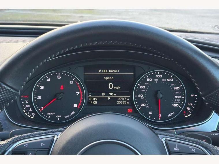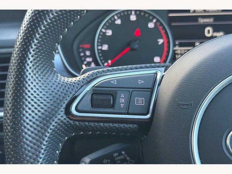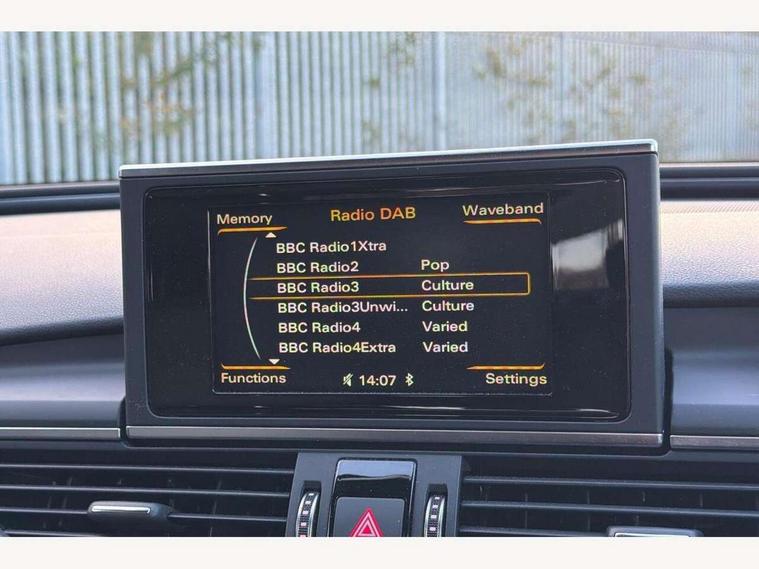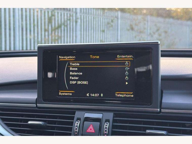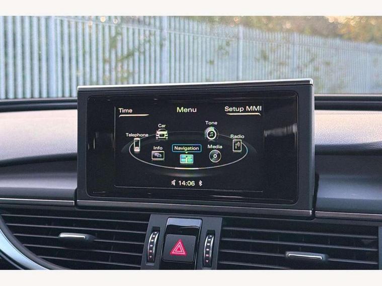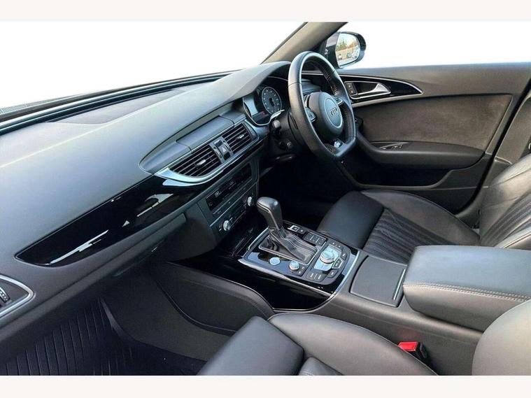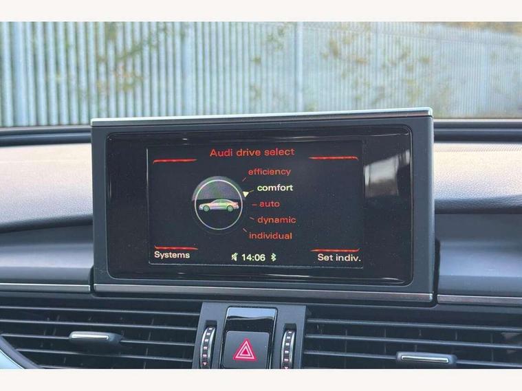 Audi drive select, Audi parking system plus with front and rear sensors, Audible and visual fasten seat belt warning - front and rear, Cruise control, Driver's information system, MMI SD card Navigation, Mobile telephone preparation, PAS, Service interval indicator, Audi music interface, Auxiliary input socket, DAB digital radio module, MMI Radio plus with CD player and bluetooth interface, SD card slot, USB connection, Auto dimming rear view mirror, Automatic headlights + automatic windscreen wipers, Body colour bumpers, Body colour door mirrors and handles, Body colour roof spoiler, Electric front/rear windows, Headlight washers, High gloss black door mirrors, High gloss black finish B pillar, High gloss black triangular aperture at rear door, LED daytime running lights, LED rear lights, Light sensor, Platinum grey front lip spoiler, Privacy glass (to rear of B post), Rain sensor, Rear wiper, 12V power in rear centre console, 4 way electric lumbar support for driver and front passenger, 4 zone climate control, Aluminium door sill trims, Black cloth headlining, Door sill trims with S line logo, Double cargo floor, Electric front seats + driver memory, Front centre armrest, Front head restraints, Front/rear floor mats, Height adjustable front seats, Isofix front passenger and rear seat preparation, Jack and tool kit, Perforated leather gearknob, Rear headrests, Split folding rear seat, Black styling pack - A6, Non smoking pack - A6, 3 point seatbelts on all seats, ABS/EBD, ASR traction control, Curtain airbags, Driver and passenger airbags, Driver/front passenger side airbags, Electromechanical parking brake, Electronic stability control, Front passenger airbag deactivation, Hill hold assist, Tyre pressure monitoring system, Warning triangle and first aid kit, Anti theft alarm, Anti-theft wheel bolts, Immobiliser, Keyless Start, Remote central locking, Alcantara door trim, Space saver spare wheel,