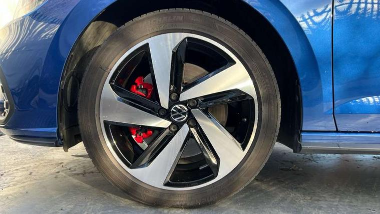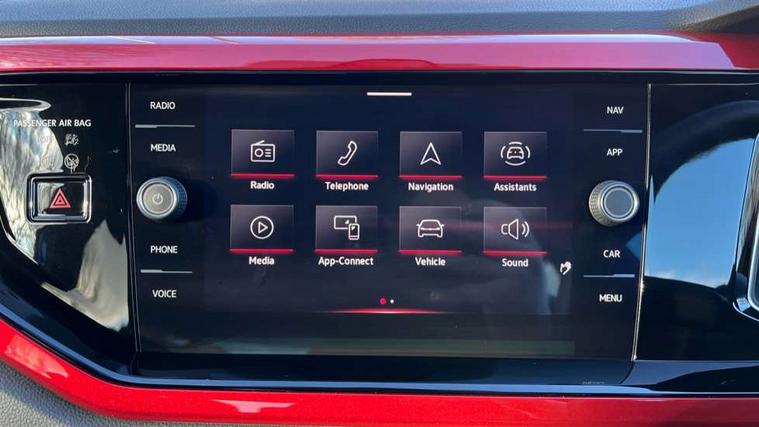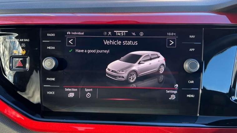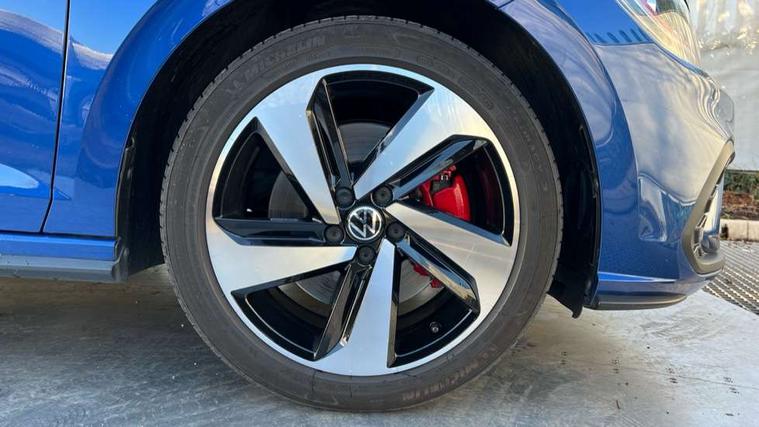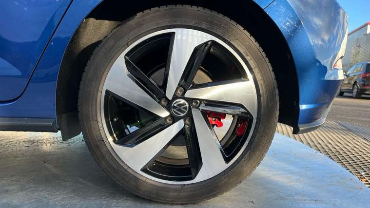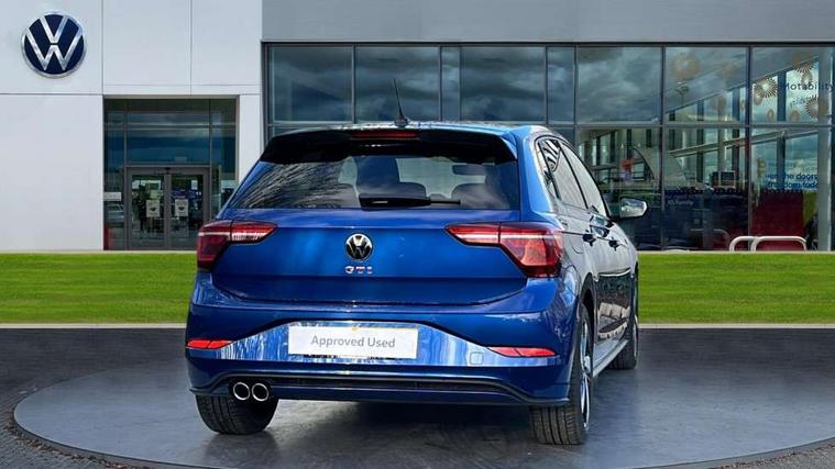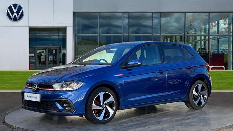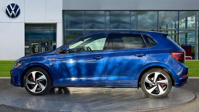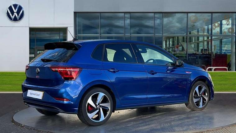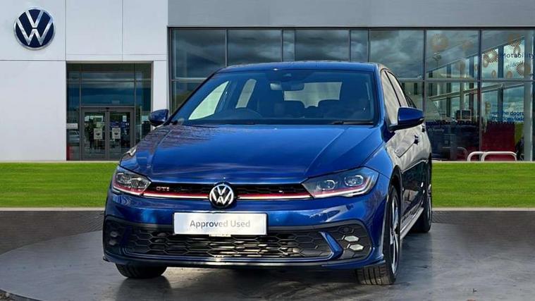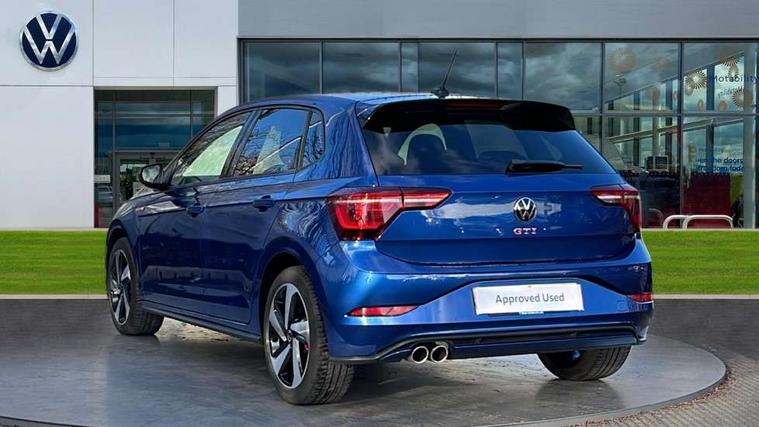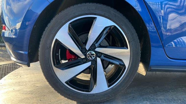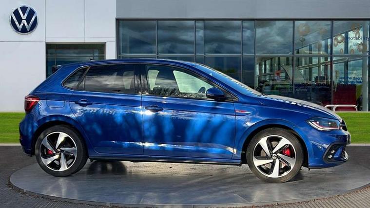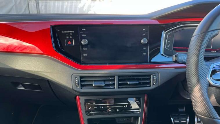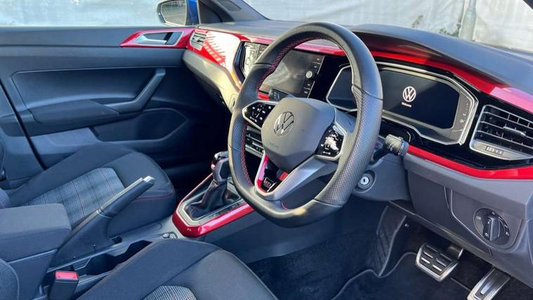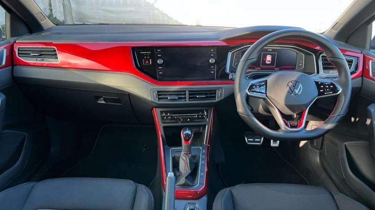 Adaptive cruise control with follow-to-stop and speed limiter, Bluetooth mobile phone interface, Digital Cockpit Pro with 10.25" Display, Driver alert system, Dynamic road sign display, Eco mode, Emergency call service, Power assisted speed sensitive steering, Preparation for We connect and We connect plus, Speedo and rev counter, electronic odometer, trip, service interval display and fuel gauge, Travel Assist - Lane keeping system and traffic jam assist, Travel assist including emergency assist, Trip computer, Warning signal and warning light for front and rear seatbelts not fastened, Washer fluid level indicator, Wireless app connect, Adaptive chassis control, Front wheel drive, Heavy duty rear axle, Rear shock absorpion sports version, Sports select suspension lowered by 15mm, Start-stop system with battery regeneration (recuperation - energy recovery during braking), DAB Digital radio, Diversity antenna for FM reception, Front and rear 6 speakers, Body colour bumpers, Body colour door handles, Electric front windows, Front scuff plates in aluminium with GTI logo, Heat insulating darkened glass in side and rear windows, Heat insulating glass windscreen, Power folding adjustable/heated exterior mirrors and front passenger exterior mirror lowering function, Rear electric windows, Rear fog light, Rear side wing doors, Rear windscreen washer and wiper with interval delay, Sport bumpers with air intakes with honeycomb structure, Third brake light, Twin chrome exhaust tailpipes, 12V power socket in centre console, 2 USB-C ports in the front, 2 USB-C charging sockets on the center console in the rear, 3 rear head restraints, 60/40 split folding rear seat and rear seat bench not split, Air care climatronic air conditoning system with active combination filter and 2-zone temperature control, Black roof lining, Chrome plated radiator grille inserts, air vent surrounds and light switch surrounds, Door and side trim panel, Driver and front passenger seat height adjustment, Driver/passenger sunvisors with illuminated vanity mirrors, Front + rear carpet mats in recycled material, Front centre armrest, Front footwell illumination, Front seat backrest storage pockets, GTI sports gearshift knob in aluminium leather, Handbrake lever handle in leather, Headliner in recycled material, Isofix child seat preparation easy-fit (for two outer rear seats, and front passenger seat) compatible with I-size, LED interior light with switch off delay and dimmer, 2 reading lights front and rear, Luggage compartment cover, Luggage compartment floor, Luggage compartment lighting, Single front passenger seat, Stainless steel pedals, Standard pedal cluster, Three spoke leather wrapped multifunction sports steering wheel with shifting paddles, IQ LED matrix headlights pack - Polo, Light and sight pack - Polo GTI, Sports suspension pack - Polo, 3 point height adj front seatbelts + pretensioners, 3x3 point rear seatbelts, ABS, Driver and front passenger airbag with front passenger airbag deactivation, Drivers and front passengers safety optimised head restraints, ESC (Electronic stability control) + EDL (Electronic Differntial lock) and ASR (Traction control), Extended and predictive pedestrian/ cyclist protection, Front and rear disc brakes with red brake calipers, Front curtain and side airbags with center airbag, Hill hold control, Manual child lock in rear doors, Two tone horn, Tyre pressure loss indicator, Alarm with interior protection, Anti-theft alarm system with interior monitoring, backup horn, and towing protection, Anti-theft wheel bolts, Electronic engine immobiliser, Chrome applications on rotary light, mirror adjustment, window regulator switches, outlet with frame in black, Low rolling resistance tyres,