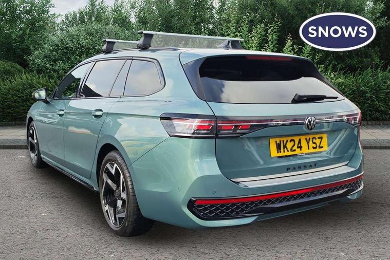 2 x Front USB-C ports, 2 x USB-C charging sockets on the centre console in the rear, charging capacity up to 45W, Adaptive cruise control, Advanced driver attention and drowsiness monitor, Digital cockpit pro 10.25" high resolution, Discover media navigation system includes streaming and internet, Dynamic road sign display, E-Sim card for online connectivity, eCall emergency call service, Full electric tailgate operation, Inductive smartphone charging without external antenna connection, Memory feature for park assist, Oncoming vehicle braking when turning including swerve support, Park assist with park distance control, Predictive speed limiter, Preparation for We connect and We connect plus, Wireless app connect, Battery 380 A (59 Ah) EFB+, Front wheel drive, Petrol Particulate Filter, Auto dimming interior rear view mirror, Automatic headlights, Body colour bumpers, Body colour door handles, Heated windscreen washer jets, LED third brake light, Rain sensor, Rear side wing doors, Rear wiper, Welcome light with surround lighting, 3 seat bench in 2nd row, 3 zone air care climatronic with rear air conditioning control panel, 30 colours options interior ambient lighting, Brushed stainless steel pedals, Front + rear carpet mats, Front head restraints, Front sports seats, Isofix child seat preparation, easy-fit (for two outer rear seats, and front passenger seat), compatible with I-size, Luggage compartment cover, power operated, Rear centre armrest, Single front passenger seat, Sun visors with illuminated vanity mirrors for driver and front passenger, Sunblind for rear side windows, Three rear head restraints, Unsplit rear seat bench, split folding backrest, Acoustics pack - Passat Estate, LED High matrix headlamps pack - Passat, 3x3 point rear seat belts, ABS (Anti locking brake system) includes BAS (Brake assist) and EBD (Electronic brake pressure distribution), Autonomous emergency braking front assist with pedestrian and cyclist monitoring, Disc brakes in front, Driver/Front Passenger airbags, Drivers knee airbag, Electronic parking brake with auto hold, ESC (Electronic stability control) + EDL (Electronic Differential lock) and ASR (Traction control), EDTC (Engine drag torque control), Extended safety system with proactive passenger protection system, Front passenger airbag deactivation switch, Hill hold function, Tyre pressure loss indicator, Warning triangle and first aid kit, Alarm with interior protection, Electronic engine immobiliser, Keyless locking and starting system keyless access with safelock, Tool kit for tyre mobility set, Trims for alloy wheels,