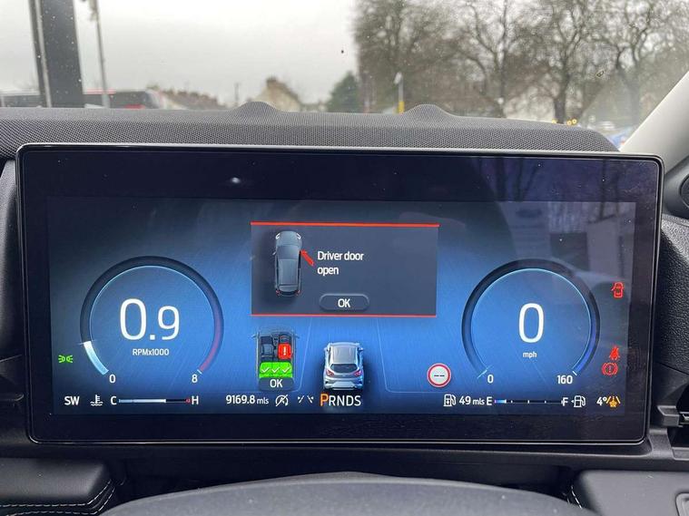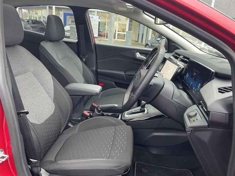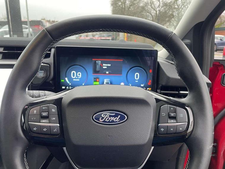 Driver impairment monitor, Emergency call service, Ford easy fuel, Full digital 12.8" instrument cluster, Lane keeping aid with lane departure warning, Power assist steering, Selectable drive modes(Normal, sport, Eco, trail, slippery), Speed sign recognition, Standard suspension, 12" landscape touchscreen display with wireless apple car play and android auto 6 speaker audio system, Ford pass connect and emergency assistance, Ford SYNC4 with connected navigation, Automatic headlights with rain sensing wipers and auto high beam, Front fog lamps, LED daytime running lights, LED rear lamps, LED third brake light, Quickclear heated windscreen, Rear privacy glass, Rear side wing doors, Rear wiper, 3 seat bench in 2nd row, Centre console with armrest and stowage, Electronic automatic temperature control (EATC), Ford megabox extended bootspace, Front and rear head restraints, Front floor mats, Manual 4 way driver seat adjust with lumbar adjustment, Single front passenger seat, Titanium cloth upholstery, 3 rear seatbelts, Child safety lock, Electronic stability control (ESC) and hill start assist, Pre-collision assist with autonomous emergency braking, pedestrian/cyclist detection & post-collision braking, Tyre pressure monitoring system (TPMS), Thatcham alarm, 17" Absolute black machined finish alloy wheel,