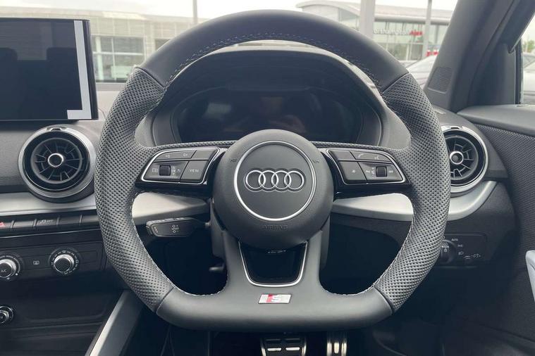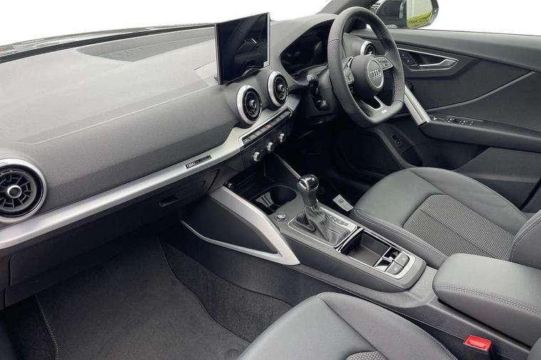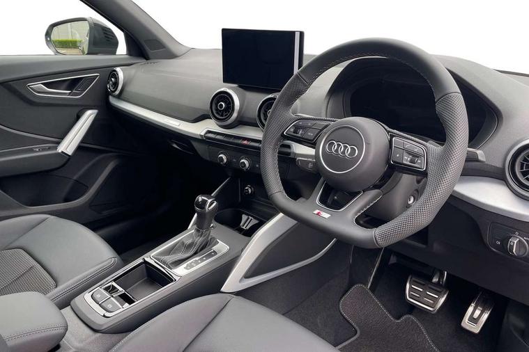 3D map display, Audi connect navigation and infotainment includes innovative services, Audi connect remote and control connects your vehicle to your smartphone, Audi drive select: S tronic - power steering assistance + engine + gearshift (modes: comfort, auto, dynamic, efficiency, individual), Audi smartphone interface - Apple carplay/Android Auto, USB connect, 2xSDXC card readers, voice control for navi, telephone, music and 3rd party apps, Audi virtual cockpit, Automatic start/stop system with recuperation, Bluetooth interface includes bluetooth audio streaming, Camera based traffic sign recognition, Cruise control, Distraction and Fatigue warning, E-call, Jukebox hard drive memory for music (10GB), Lane departure warning, MMI navigation plus with 8.8" touchscreen, Natural voice recognition, Power operated tailgate, Progressive steering, Rear parking sensors, Sport suspension, 6 passive loudspeakers, DAB Digital radio, USB type C port, Audi beam, Auto dimming rear view mirror, Black window trims, Bumper in full body colour paint finish, Electrically adjustable, folding, auto dimming and heated door mirrors with integrated LED side indicators, Front windscreen with grey tinted sunband, LED daytime running lights, LED headlights with dipped beam, high beam, position lights, indicators, LED rear lights, LED third brake light, Privacy glass - dark tinted rear and rear side windows from B-pillar backwards, Rear side wing doors, Rear wiper, Variable front intermittent wipers, Wheel arch trims in manhattan grey, 12V socket in front, 3 seat bench in 2nd row, 3 spoke flat bottomed multi-function leather sport steering wheel with gear shift paddles, 4-way electric lumbar support for front seats including manual seat height adjustment for both front seats, 60/40 split folding rear seat bench, Black carpets, Black cloth headlining, Front and rear head restraints, Front centre armrest, Front sport seats, Front/rear floor mats, Height/reach adjust steering wheel, Illuminated door sill trims with S logo, ISOFIX child seat mounting in front passenger and rear outer seats, Manual air conditioning, Single front passenger seat, Stainless steel pedals, Black styling pack - Q2, 3x3 point rear seatbelts, 6 airbags - Front, curtain and front side airbags, Electromechanical parking brake, Electronic stabilisation control including ABS, ASR and EDL, Front passenger airbag deactivation, Hill hold assist, Pre-sense front with pedestrian recognition, Seatbelt monitoring, Tyre pressure warning light with visual and acoustic warning, Warning triangle and first aid kit, Anti theft wheel bolts, Electronically operated child locks, Remote central door locking, Thatcham category 1 alarm, Aluminium interior element, Black dashboard, Gloss black centre console, Matt brushed aluminium trim inlays, Tool kit,