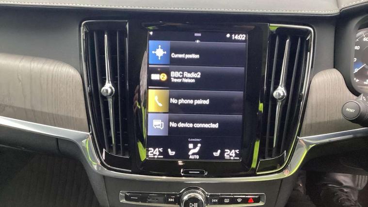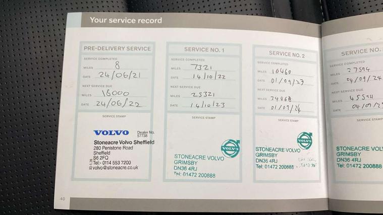 12.3" Progressive Driver Display, 9" centre console touch screen, Adjustable steering wheel force, Bluetooth handsfree system, Drive mode selector, Driver assistance (pilot assist and adaptive cruise control), Driver awareness - Blind spot system + steer assist, cross traffic alert with autobrake, rear collision warning and mitigation, eCall emergency system, Front and rear park assist, Google Automotive Services - Navigation with Voice recoginition and google assistant, Lane keep assist with driver alert control, Oncoming Lane Mitigation, Powered bootlid operation, Service interval indicator, Speed limiter, Speed sensitive steering, Volvo on call app, Wireless apple carplay, 7m 10amp charge cable with 3 pin plug and 7m 1 phase 16amp type 2/mode 3 charge cable, 8 speed automatic transmission with start/stop + manual change functions, Dynamic chassis, Electric rear axle drive, Lithium-Ion Battery 11.6kWh, Recharging port located in nearside front wing, DAB Digital radio, Steering wheel remote infotainment controls, Adaptive brake lights with high level LED brake lights, Auto dimming interior + exterior mirrors, Automatic headlight levelling system, Chrome deco lower front bumper, Chrome door handle deco strips, Chrome lower door mouldings with recharge logo, Chrome window surround, Colour coordinated door mirrors, Dual integrated exhaust pipes, Electric adjustable/heated/auto folding door mirrors, Front and rear power windows, High gloss black grille with chrome inserts, Home safe and approach lighting, Laminated rear and side windows, Puddle lights, Rain sensor with automatic windscreen wiper activation, Rear boot, Rear LED lights with sequential indicators, Rear side wing doors, Roof antenna, Visible VIN plate, 12V socket in boot, 12V socket in front tunnel console, 2 zone electronic climate control with Clean zone air quality system + pollen filter, 3 bench rear seats in 2nd row, A-pillar parking ticket holder, Ambient door and instrument panel lighting, B Pillar ventilation, Boot lid Illumination, Centre armrest storage illumination, Centre console cupholder and storage, Driver's side lower dashboard storage compartment, Extended front seat cushions, Front and rear door pocket and front cupholder illumination, Front and rear footwell and side step illumination, Front head restraints, Front/rear reading lights, Heated front seats, Height/reach adjustable steering column, Illuminated front and rear aluminium tread plates, Illuminated glovebox, Illuminated luggage compartment, Illuminated vanity mirrors + ticket holder, Integrated sun curtains in rear doors, Isofix system on outer rear seats, Luxury floor mats, Multicolour theatre lights, Orrefors Crystal gear lever knob, Power driver seat with multi-directional lumbar support and memory for seat and exterior mirrors, Power Folding Rear Seat Backrests and Headrests, Powered integrated rear window sunblind, Rear armrest with storage + cupholders, Single front passenger seat, Ski hatch in rear seat backrest, Versatile split folding rear seat - 60/40, Seat pack - S90, 3x3 point rear seatbelts, Active bonnet, City safety with steering support with Pedestrian + cyclist + large animal detection + front collision warning with full auto brake, Drivers knee airbag, Dual stage driver/passenger airbags, First aid kit, Front seats SIPS airbags, Hill start assist, IC (Inflatable Curtains) - Full Length, Mechanical child locks on rear doors, Passenger airbag cut-off device, Power parking brake with auto hold function, Road sign information display, Run off Road Mitigation, Run off Road Protection, Seatbelt reminder and pretensioners for all seats, SIPS (Side Impact Protection System), Slippery road and hazard light alert, Stability and Traction Control with Spin control, Engine Drag Control and Corner Traction Control, Tyre pressure monitoring system, Vehicle deceleration control with Anti-lock Brake System, Electronic Brake Distribution and Emergency Brake Assist, Warning triangle, WHIPS whiplash protection system - front, Anti-theft alarm including immobiliser/volume sensor + level sensor, Care key with user defined top speed, Key integrated remote control central locking including fuel flap with deadlocking system and auto open/close power windows, Keyless drive includes keyless entry and keyless start, Locking wheel nuts, Private locking for boot area, Tailored Instrument Panel and Door Tops with Contrast Stitching, Tyre sealant kit and compressor,