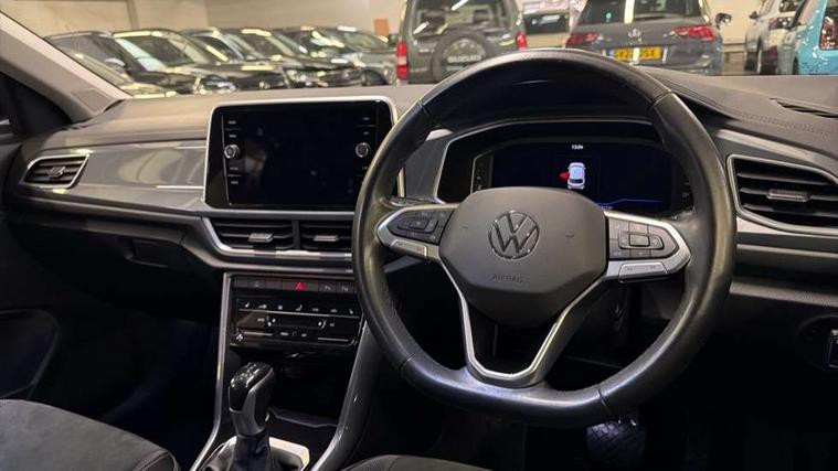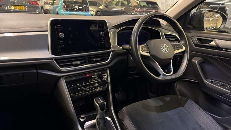 10.25" Digital cockpit pro, Bluetooth mobile phone interface, Driver alert system with fatigue detection, Driver tips and journey analysis, Emergency call service, Lane keeping system Lane Assist, Modified key software - reduce switch off time for key status change to Long no motion, Online services, Park assist including front and rear parking sensors, Service interval indicator, Tailgate/trunk lid release from outside, Think blue trainer driver tips and journey analysis, Warning sound and light for front seatbelts unfastened, Wireless app connect, Battery regeneration during braking, Start/stop function with battery regeneration, Diversity antenna for FM reception, Front and rear 6 speakers, Music playback - MP3, WMA and AAC files, Premium USB cable in choice of either Apple or Android smartphone compatibility, SD card slot, Simultaneous pairing of 2 compatible mobile devices, Title and cover art display, We Connect and We Connect Plus functionality, 3rd brake light, Auto dimming interior rear view mirror, Automatic hazard lights activation under emergency braking, Automatic headlight control with LED separate daytime running lights with coming/leaving home function, Body colour sports bumpers with silver metallic underbody fascia, Dynamic headlight range control with self adjusting whilst driving, Extended roof spoiler, Exterior mirrors aspherical on driver side, convex on front passenger side, External USB type C socket and charging sockets, Front windscreen wiper with intermittent wipe and 4 position delay, Heated rear window, LED Plus headlamps, LED rear combination lamps, LED rear number plate lights, LED tail lamp rear comination lamps, Light mode for poor weather, rain, fog or snow, Power windows with comfort operation and circuit breaker, Rain sensor, Rear exhaust tailpipe, Rear fog light on one side and reversing lights on both sides, Rear side wing doors, Rear wash/wipe with intermittent wipe setting, Remote electrically foldable door mirrors, puddle lights and reverse activated passenger's door mirror, 12V power socket in centre console, 3 rear head restraints, 3 seat bench in 2nd row, 4 load lashing points in luggage compartment, Air care climatronic air conditoning system with active combination filter and 2-zone temperature control, Chrome plated radiator grille inserts, air vent surrounds and light switch surrounds, Door and side trim panel with leatherette insert, Drawer under drivers seat, Front + rear carpet mats, Front centre armrest, Front comfort sports seats, Front cupholders x 2, Front footwell illumination, Instrument lighting, white adjustable panel illumination, Interior ambient lighting and surround lighting, Interior light delay, Isofix child seat preparation, Leather gearshift handle, LED interior light with switch off delay/dimmer and 2 front/rear LED reading lights, Load-through provision with cup holder when folded down ('Unsplit rear seat bench, split folding backrest, with centre armrest), Luggage compartment lighting, Non-folding front passenger seat backrest, Single front passenger seat, Storage compartment in left and right luggage area, Storage compartment in rear doors, Storage compartments in driver and front passenger doors, Sunvisors with illuminated vanity mirrors, Variable boot floor, height adjustable and removable, Driver assistance pack without proactive passenger protection - T-Roc, 3 point height adj front seatbelts + pretensioners, 3 point seatbelts in outer rear with ECE label, ABS, Child locks on rear doors, Driver and front passenger airbag with front passenger airbag deactivation, Driver and front passenger safety-optimised head restraints, Drivers seatbelt reminder, Electronic parking brake, Electronic Stability Control (ESC) inc EDL (Electronic Differential Lock) and ASR (Traction Control), Front and rear passengers curtain airbag system including front side airbags, Front assist with city emergency braking and pedestrian monitoring, Front seat side impact airbags, Predictive pedestrian protection, Rear disc brakes, Single tone horn, Tyre pressure loss indicator, Volkswagen roadside assistance, Alarm with interior protection, Anti-theft alarm system with interior monitoring, backup horn, and towing protection, Remote central locking with SAFELOCK, radio remote control with 2 remote control folding keys, Trims for alloy wheels,