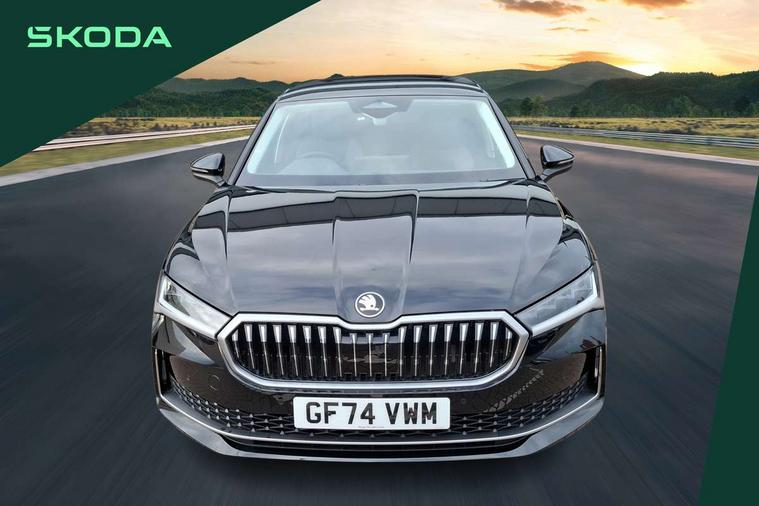 13" touchscreen display with satellite navigation, 4x USB-C ports (2x in front centre console and 2x in rear) (45W), Adaptive cruise control with speed assist, lane assist plus and traffic tram assist, Blind spot detection with door exit warning, Bluetooth system, CareConnect and Emergency Call, ChatGPT functionality, Driver fatigue sensor, Front assist with extended predictive pedestrian protection, Front cross traffic assist, PAS, Quick start all heating software functionality, Rear view camera with washer, Stop/start engine system, Traffic sign recognition, Turn assist with evasive assistance, Virtual Cockpit - 10.25" digital display, Voice control system, Wireless charging for one smartphone (15W) with cooling function, Wireless smartlink apple carplay, SmartLink+ android auto, 8 Speakers, DAB Digital radio, Display cleaner, FM radio connection, Web radio connection, Acoustic side windows and interior noise suppression, Backdrop lighting, Body colour door handles, Body coloured door mirrors, Chrome window surround, Electrically adjustable, heated, folding and driver side auto-dimming door mirrors with integrated indicators and logo projection, Frameless auto-dimming rear view mirror with USB-C, Front windscreen with heat-insulating glass, Ice scraper in fuel tank cap, LED 3rd brake light, Light assist with High beam control, Light assistant (coming/leaving home/tunnel light), Privacy glass, Rear fog light (x1), Rear side wing doors, Tow bar preparation, Unique dark chrome design logo on alloy wheels, Unique dark chrome grille surround with dark chrome rib elements, Windscreen wipers with rain sensor, 12V socket 1x centre console 1x boot, 12V socket and 2x cargo elements in boot, 2 spoke multifunction steering wheel with DSG paddles, 3 seat bench in 2nd row, 60:40 Split folding rear seats, Bottle holders in the front doors 1.5 litre bottle and rear 1.5 litre bottle, Cup holder in front with easy open mat, Front and rear footwell illumination, Front armrest with storage box, Front comfort seats, Heated front seats, Height adjustable driver and front passenger seats with 2-way electric tilt, 4-way pneumatic lumbar support, and extendable thigh support, Height adjustable front and rear head restraints, Height adjustable front passenger seat, Illuminated glovebox, Interior lights with control switches, Isofix child seat fittings in outer rear and front passenger seats, LED front and rear reading lights, Massage function for front seats, Single front passenger seat, Skoda lettering on steering wheel, Storage pockets on back of front seats, Sun visors with illuminated vanity mirrors, Ticket holder on A Pillar, Tri zone climate control, Umbrella in driver's door, 3 rear seatbelts, 8 Airbags - Front driver and passenger, front side driver and passenger, centre, curtain front and rear, drivers knee, Crew protect assist, Driver and passenger seatbelts with warning light, Electronic parking brake, ESC including ABS, EBV, MSR, ASR, EDS, HBA, DSR, RBS, CBC, multi-collision brake (MKB) and Auto hold, Hill hold assist, Power operated child lock in rear doors, Alarm with interior monitoring tilt sensor and back up horn, Backrest remote release from trunk, Electronic engine immobiliser, Keyless start/stop, Remote central locking with SAFE system, Third key, Decorative front door sills,