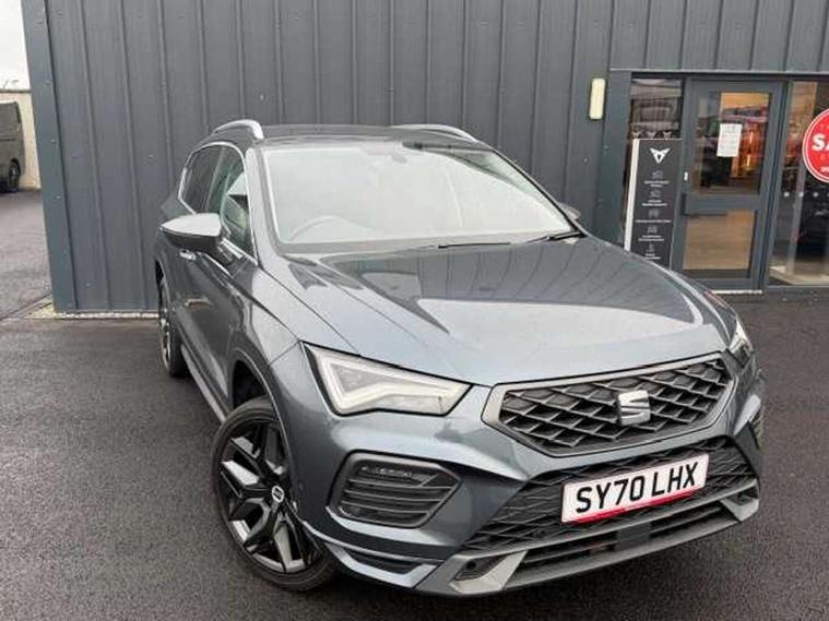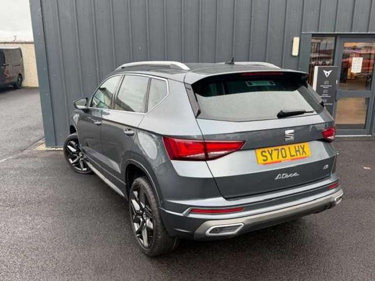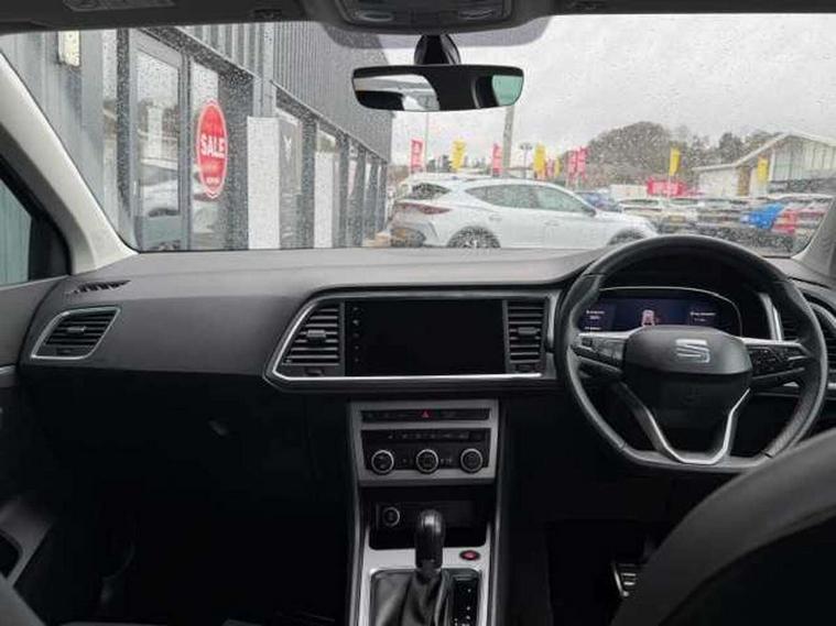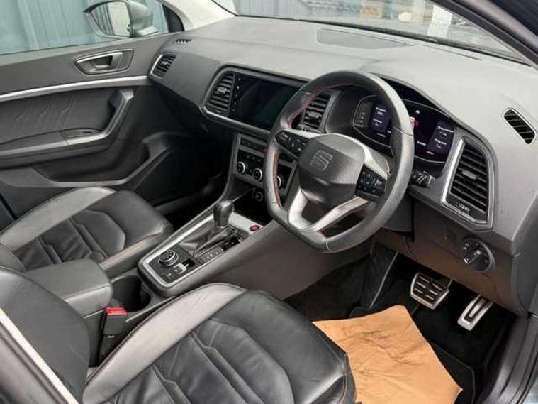 Cruise control system with speed limiter, Digital cockpit, Outside temperature gauge, Progressive power assisted steering, SEAT drive profile with driving experience button - Normal, Sport, Eco and Individual mode, gearshift, steering and throttle response, Self parking functionality (includes front and rear parking sensors), Trip computer, Wireless full link smartphone integration, Wireless phone charger, Steering wheel mounted audio/phone controls, Body colour bumpers, Body coloured wheel arch surrounds, Chrome roof rails, Chrome side window trim, Cosmo grey front grille frame, Dark tinted rear windows, Daytime running lights, Door mirrors with welcome light silhouette, Dynamic headlight range control with self adjusting whilst driving, Electric adjustable/heated/folding door mirrors, Front and rear electric windows, Full LED headlamps with lens and LED front fog lamps with cornering function, Illuminated aluminium front door sill, LED rear tail lights with dynamic indicators, Rear fog lights, Rear spoiler, Rear wash/wipe, Simulated exhaust pipes in chrome frame, 12V socket in front, 60/40 split folding rear seat, Aluminium pedals, Dual zone climate control, Electric adjustable driver seat with lumbar adjustment, Front and rear head restraints, Front centre armrest, Front seat back storage pockets, Heated front seats, Height adjustable passenger seats with lumbar adjustment, ISOFIX points in outer rear seats with top tether anchorage points, Leather steering wheel and gear knob, Leather upholstery with front sports seats, Multicoloured ambient lighting with LED interior illumination, Rear armrest and easy back seat release mechanism from boot, Steering wheel mounted gearshift paddles, Storage compartment in roof console for sunglass, Convenience pack - Ateca, Interior lighting pack - Ateca, Navigation system pack with DAB - Ateca, 3x3 point rear seatbelts, ABS, Traction control system (TCS), Electronic stability control (ESC) and Electronic differential lock system (XDS), Airbags - Driver and front passenger airbag with deactivation, front side, two curtain and driver's knee airbags, Electric parking brake with auto hold function, Front and rear seatbelt reminder, Front assist with autonomous emergency braking, Hill hold control, Tiredness recognition system, Traction control, Tyre pressure monitoring system, Alarm, Keyless entry, Locking wheel bolts, Chrome interior detailing, 19" Exclusive machined alloy wheels with decorative inserts 36/7 in cosmo grey,