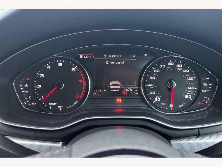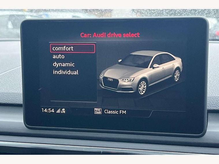 7" Colour driver information system, Audi connect safety and service (e-call), Audi drive select, Audi parking system plus with front and rear sensors, Audi Pre sense collision avoidance, Bluetooth interface, Driver information centre, Electric boot release, Electromechanical power steering, MMI SD card Navigation, Power boot opening and closing, Service interval indicator, Stop/start button, Voice control system, 54 litre fuel tank, 2 USB interfaces and Aux-In jack, DAB digital radio module, Acoustic windscreen, Air inlets in titan black with two horizontal inlays in chrome, Aluminium window trim, Auto dimming rear view mirror, Automatic headlights + automatic windscreen wipers, Blue tinted glass, Body colour bumpers, Body colour door handles, Body colour door mirrors, Chrome diffuser clip, Chrome rolled exhaust, Chrome tailpipe finisher, Electric front windows, Electric rear windows, Headlight range control, High gloss black triangular aperture at rear door, LED indicators in door mirrors, Rain and light sensors, Rear diffuser in Twilight grey matt, Rear wiper, Twilight grey matt radiator grille with chrome inlay, 3 spoke high multi-function leather sports steering wheel, 3 zone climate control, 4 way electric lumbar support for driver and front passenger, 40/20/40 split folding rear seats with rear centre armrest, Aluminium door sill trims, Front centre armrest, Front headrests, Front/rear floor mats, Height and reach adjustable steering wheel with full size airbag, Isofix child seat preparation for front passenger/outer rear seats inc passenger airbag deactivation, Jack and tool kit, Luggage compartment carpet, Rear headrests, Sunvisors with vanity mirrors, Top tether anchor plate for isofix child seat, Non Smokers pack, 3 point seatbelts on all rear seats, Adaptive driver and front passenger airbags, Electromechanical parking brake, Electronic stabilisation control including ABS, ASR and EDL, Front head airbags, Front seatbelt pretensioners + load limiters, Front side airbags, Multi-Collision braking, Pop-up bonnet for pedestrian protection, Seatbelt warning, Traction control, Tyre pressure warning, Variable restraint system, Warning triangle and first aid kit, Anti theft alarm, Keyless Start, Locking wheel bolts, Remote central locking, Thatcham category 1 alarm + immobiliser, MMI radio plus with smartphone interface, Tyre repair kit,