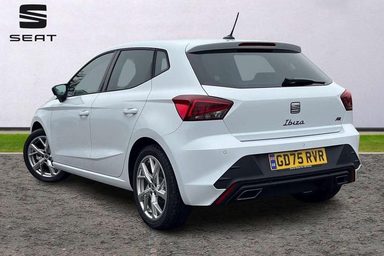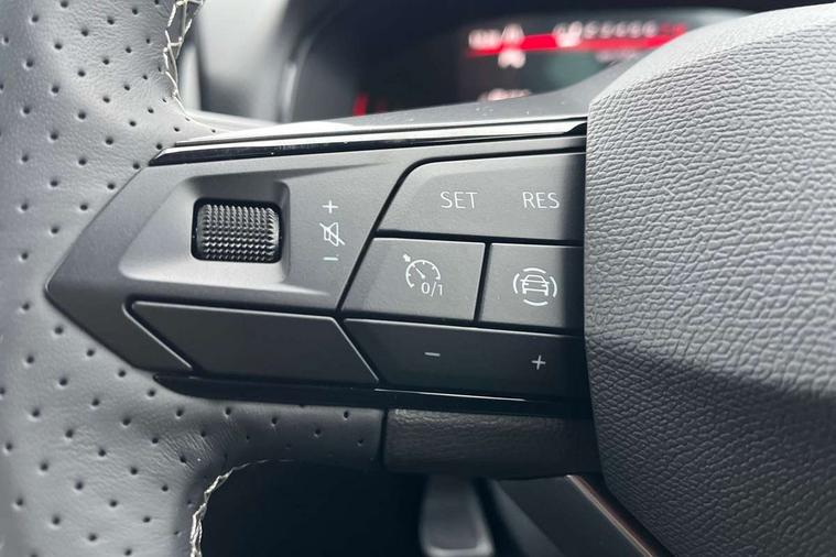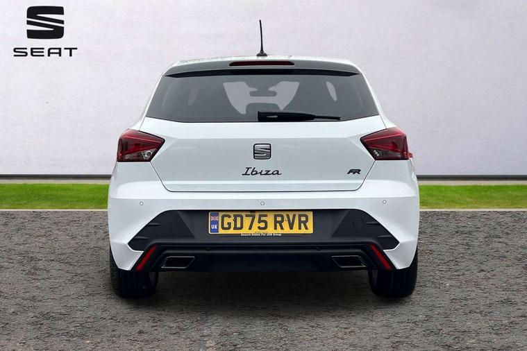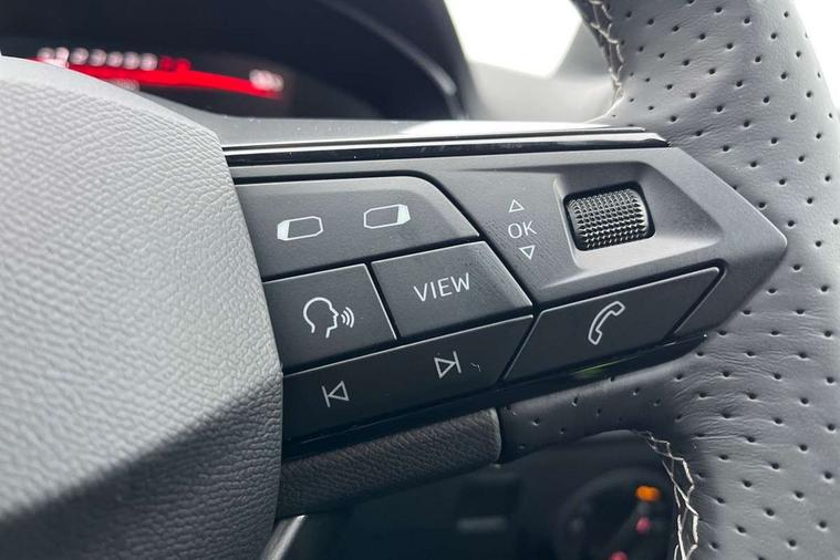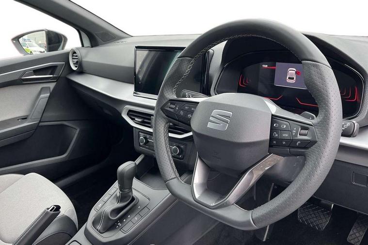 8" Digital cockpit, 9.2" touchscreen navigation system with type C USB socket, Voice control and DAB/AM/FM radio, Bluetooth audio streaming with handsfree system, Cruise control and speed limiter, E-call, Front parking sensors, Full Link Smartphone integration with Mirror Link, Apple Car Play, Google Android Auto with USB Type C cable for Apple and Android devices, PAS, Rear view camera, SEAT Drive profile - Four different models normal-sport-eco-individual, steering response, throttle response and gear shifts mode, Start/stop system, Sport suspension, Body colour mirror caps, Body coloured bumpers, Body coloured door handles, Dark tinted rear windows, Electric front and rear windows, Electrically adjustable, heated, folding exterior mirrors, FR styled rear diffuser, Front foglights with cornering functionality, Interior auto dimming rear view mirror, LED 3rd brake light, LED daytime running lights, LED license plate light, LED taillights, Rear fog lights, Rear side wing doors, Rear wash/wipe, SEAT Design Full LED automatic headlamps with signature dynamic headlight range control and coming and leaving home feature, 3 seat bench in 2nd row, 60/40 split and folding rear seats, Black headlining and chrome detailing, Cloth upholstery, Dual zone climate control with combination filter, Front integrated headrests, Front reading lights, Heated front seats, Height adjustable front seats, Height adjustable rear headrests, Interior ambient lighting in footwell, Isofix, Nappa leather multifunction flat bottomed sports steering wheel, Red coloured interior air vents with ambient lighting, Single front passenger seat, Sports bucket seats, Storage pockets on back of front seats, Sunvisors with mirrors and card holder on drivers side, Safe and Driving pack (S) - Ibiza, ABS, Child locks on rear doors, Driver and passenger airbags, Front driver and passenger side airbags with curtain airbag and front passenger airbag deactivation, Hill hold control, Three point seat belts on all rear seats, Tyre pressure monitoring system, Anti-theft alarm with interior monitoring, backup horn, and towing protection, KESSY Keyless entry and go with Safelock, Locking wheel bolts, 17" Dynamic alloy wheels in Nuclear grey,