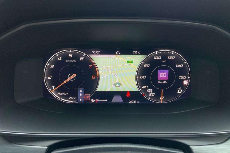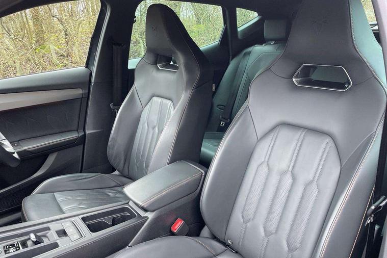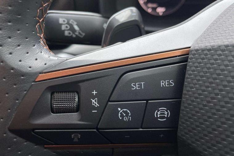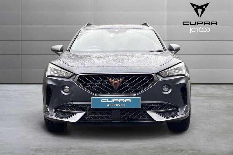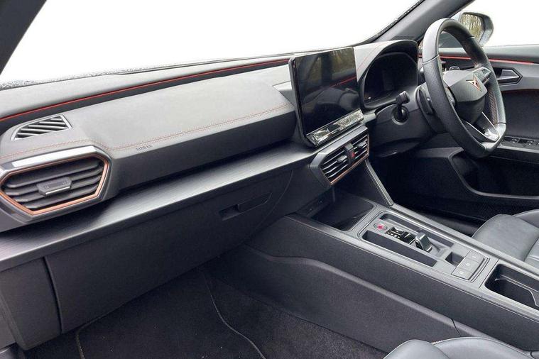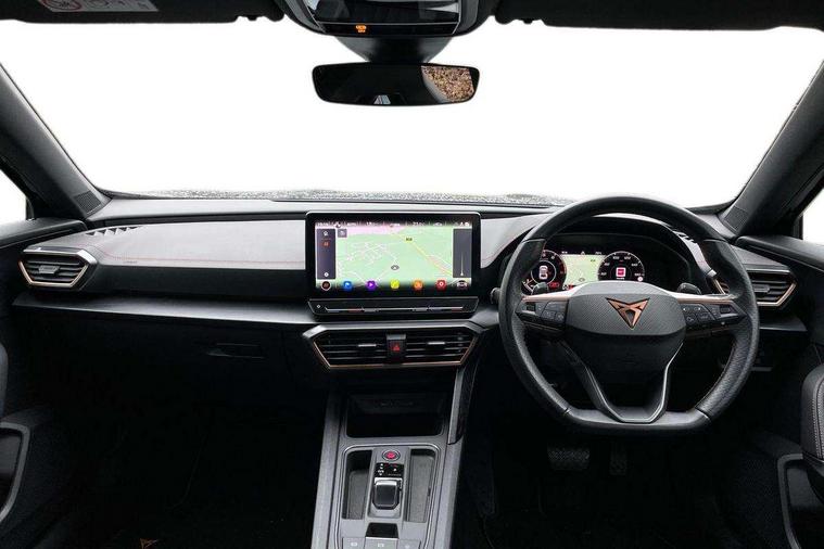 Digital cockpit and configurable dashboard, Driver alert system, Driving profile selection, Forward collision warning with automatic braking, Lane assist, Navigation system with 12'' Touchscreen Display, Park assist (inc front/rear parking sensors), PAS, Predictive adaptive cruise control with speed limiter, Rear view camera, RPM, trip computer, outside temp gauge, instrument light brightness, low fuel warning light, lights on reminder, gearshift indicator, Service interval indicator, Start/stop system with regenerative braking, Voice control system, Wireless apple carplay, Wireless phone charger, Electronic locking differential and dynamic traction support, Standard suspension, 2 front and 2 rear USB type C sockets, Auxiliary input socket, DAB radio, Auto dimming rear view mirror, Body colour door handles, Body coloured bumpers, Dark grey wing mirror, Daytime running light with automatic headlight control and coming home feature, Dynamic headlight range control, Electric front/rear windows, Electrically adjustable heated and folding door mirrors with memory function, Front fog lamps with cornering function, Gloss black roof rails and window surrounds, LED Headlights, LED Taillights with dynamic indicator, Rain sensing wipers, Rear diffuser with black simulated exhaust pipes, Rear side wing doors, Rear wash/wipe, Third brake light, Tinted rear windows, Welcome lights, 12v power supply in centre console, 12V socket, 12v socket in loadspace, 2 front and 2 rear reading lights, 230V socket, 3 seat bench in 2nd row, 60/40 split rear bench seat with armrest and mechanical seat release, Black headlining, Dust/pollen filter, Front and rear head restraints, Front centre armrest, Height/reach adjust steering wheel, Illuminated interior front door sills, Illuminated sunvisor with mirror, Isofix, Leather multi function heated steering wheel with gear shift paddles, Luggage tie-down hooks, Single front passenger seat, Three zone climate control with control panel in rear, Variable luggage/load compartment floor, Wraparound lighting, Genuine Nappa leather Pack - Cupra, 3 point seatbelts on all rear seats, ABS, Brake control system - ESC and brake booster, Child proof door locks, Driver and front passenger airbags with front passenger airbag de-activation, Electronic parking brake, Front and rear disc brakes, Front side curtain airbags, Hill hold control, Public e-call, Seat belt reminder for front and rear seats, Tyre pressure monitoring system, Anti theft alarm system, Keyless entry and start system (KESSY), Locking wheel bolts, Copper and aluminium interior detailing, 19" 'Exclusive' machined sport matte black and silver alloy wheels,