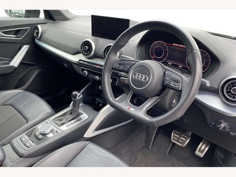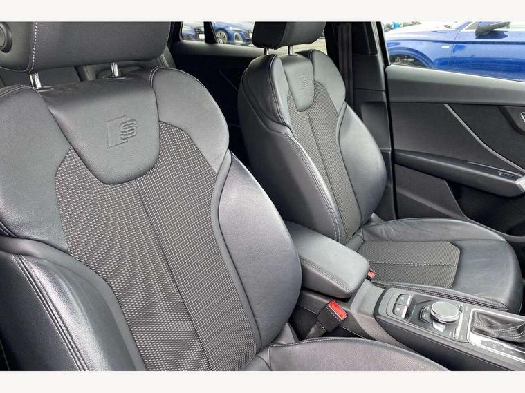 Audi connect navigation and infotainment includes innovative services, Audi connect remote and control connects your vehicle to your smartphone, Audi drive select, Audi drive select - Power steering assistance + engine + gearshift, Audi drive select with efficiency, Audi smartphone interface, Audi virtual cockpit, Automatic start/stop system with recuperation, Bluetooth interface includes bluetooth audio streaming, Cruise control, E-call, MMI navigation plus with MMI touch, Power operated tailgate, Progressive steering, Rear parking sensors, 2 x SDXC card reader, 8 passive loudspeakers, DAB Digital radio, DVD Drive, Auto dimming rear view mirror, Black window trims, Bumper in full body colour paint finish, Electrically adjustable, folding, auto dimming and heated door mirrors with integrated LED side indicators, Front windscreen with grey tinted sunband, LED daytime running lights, LED headlights with LED rear lights, LED third brake light, Privacy glass - dark tinted rear and rear side windows from B-pillar backwards, Rear side wing doors, Rear wiper, Variable front intermittent wipers, Wheel arch trims in manhattan grey, 12V socket in front, 3 seat bench in 2nd row, 3 spoke flat bottomed multi-function leather sport steering wheel with gear shift paddles, 4-way electric lumbar support for front seats including seat height adjustment for both front seat, 60/40 split folding rear seat bench, Black cloth headlining, Front and rear head restraints, Front centre armrest, Front/rear floor mats, Height/reach adjust steering wheel, Illuminated door sill trims with S logo, ISOFIX child seat mounting for front passenger with airbag deactivation and outer rear seat including top tether attachment point for outer rear seats, Single front passenger seat, Stainless steel pedals, Black styling pack - Q2, 3x3 point rear seatbelts, 6 airbags - Front, curtain and front side airbags, Electromechanical parking brake, Electronic stabilisation control including ABS, ASR and EDL, Hill hold assist, Pre-sense front with pedestrian recognition, Seatbelt monitoring, Tyre pressure warning light, Warning triangle and first aid kit, Anti theft alarm, Anti theft wheel bolts, Electronically operated child locks, Remote central door locking, Aluminium interior element, Matt brushed aluminium trim inlays, Tool kit,