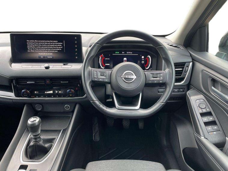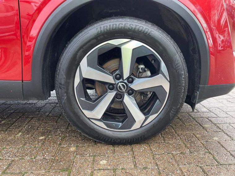 Android auto/Apple CarPlay (Wired), Blind spot warning, Drive modes (sport, normal, eco), Electric speed sensitive power steering, Emergency and breakdown call, Front and rear parking sensors, Full Digital 12.3" TFT Digital Combimeter, Google maps services - search, weather, 3D maps and Google street view, Idle stop/start system, Intelligent around view monitor, Intelligent Cruise control (ICC), Intelligent driver alert system, Intelligent forward collision warning, Intelligent lane intervention, Lane departure prevention, Lane departure warning system, Maximum speed limiter, Moving object detection, Nissan connect 12.3 inch touchscreen infotainment system, Nissan connect navigation, Push button starter, Rear cross traffic alert, Rear view camera, Remote control services - door locks, lights, horn and car locator, Telematics - notifications and connectivity services, TomTom live traffic services, Traffic sign recognition with legal speed adjustment, Trip computer, Virtual personal assistant and firmware over the air capability, Wireless apple carplay, 6 speakers, AM/FM audio system with DAB, Bluetooth audio streaming, Front USB connections (Type-A and Type-C), Rear USB charging only ports (Type-A and Type-C), Auto dimming rear view mirror, Auto rear wiper when reversing, Automatic hazard signal with emergency stop signal, Body colour mirror caps, Body coloured door handles, Bodyside mouldings, Chrome side window finisher, Door handle with button, Electric auto folding door mirrors, Electrically adjustable and heated door mirrors with LED turn indicator, Follow me home headlights, High beam assist, Intelligent auto headlights, LED daytime running lights, LED Headlights, LED rear lights, One touch front and rear electric windows with remote opening and closing, Partially body coloured bumpers, Privacy glass, Rear bumper with graphite insert, Rear reversing light (bulb lighting), Rear roof spoiler, Rear side wing doors, Rear styling plate, Shark fin antenna, Splash free rain sensing wipers, Super UV and infrared cut glass, Three blink turn signal, 12v power socket in dashboard and luggage, 2x Rear coat hooks, 3 bench rear seats in 2nd row, 3 rear headrests, 4 folding assist grip, 6 Luggage hooks - 4 on floor, 2 on side, 6-way manually adjustable driver's seat, 60/40 split folding rear seat bench, Ambient lighting around centre console, Centre console storage tray, Chrome interior door handles, Cloth monoform upholstery, Driver and front passenger sunvisors with illuminated vanity mirrors, Driver seat back pocket, Dual zone automatic climate control with pollen filter, Electrically adjustable lumbar support for driver, Front and rear door storage, Front centre console and armrest, Front cupholders x 2, Front door with bottle holders, Glovebox with light, Hard trunk cover, Height adjustable driver's seat, Height adjustable front headrests, Height adjustable passenger seat, Leather shift knob, Leather steering wheel, Luggage board system, Luggage space lighting, Manually adjustable passenger (slide recline + lifter), Multifunction steering wheel, Passenger seat back pocket, Rear armrest with 2 cupholders, Rear door bottle holders, Single front passenger seat, Soft PVC kneepad, Steering wheel switches, Sunglasses holder, Tilt/telescopic adjustable steering wheel, Two rear isofix child seat anchorage points with top tether, Welcome light and console tray ambient lighting, 3x3 point rear seatbelt pretensioners + load limiters, ABS with EBD and brake assist, Active brake limited slip, Auto hold function, Child locks on rear doors, Curtain and front side, far side airbags, Driver and passenger airbags, Driver, passenger and 2nd row rear seat belt reminder, Electronic parking brake, Front seatbelt pretensioners + load limiters, Height adjustable front seatbelts, Hill start assist, Intelligent blind spot intervention, Intelligent front emergency braking with pedestrian, cyclist recognition and junction assist, Intelligent rear automatic braking, Tyre pressure monitoring system, Vehicle dynamic control, Capless fuel filler, Engine immobiliser, Intelligent Key, Remote central door locking with deadlocking, Thatcham Cat.1 alarm, Interior instrumental panel B finisher, 18" Diamond cut alloy wheels, Tyre puncture repair kit,