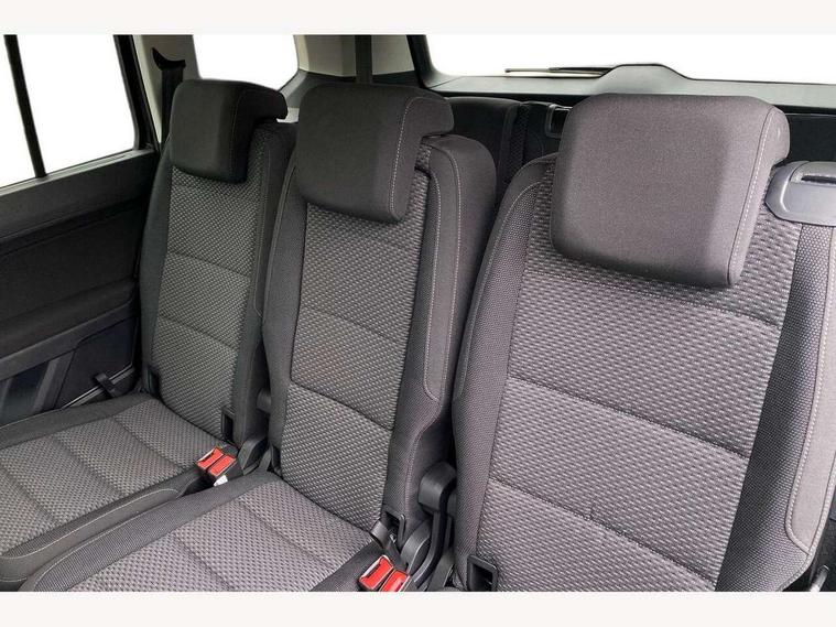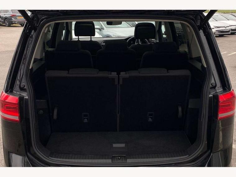 Adaptive cruise control, Audible lights on warning, Discover media navigation touchscreen navigation/radio system with streaming and internet, Driver alert system, Driver profile selection, Dynamic road sign display, Electric tailgate, Electronic odometer, Emergency services call system, Extended, crash-active and proactive Pedestrian and cyclist monitoring, External temperature gauge, Front parking sensors, Lane change system side assist and rear traffic alert, Lane keep assist, Misfuelling protection device, Mobile pairing with SMS function, Mobile phone interface with inductive charging, Rear view camera displayed via vehicles audio system display, Rev counter with fuel gauge, Side scan, Speed limiter, Speed sensitive power steering, Stop/start system, Think blue trainer driver tips and journey analysis, Trip and service interval display, We connect' and 'We connect plus' functionality, Petrol Particulate Filter, Rear stabiliser bar, XDS electronic differential lock, 4x20 watt output, 8 Speakers, Audio Connectivity System, DAB Digital radio, External USB-C data socket with increased charging performance - 2 USB sockets 45W, MP3/WMA compatability, SD card slot, Title and cover art display, USB connection, Aerial integrated into side window, Auto dimming door mirrors, on driver side, surround lighting and front passenger side mirror lowering function, Auto dimming rear view mirror, Automatic coming/leaving home lighting function, Body colour bumpers, Body colour door handles, Body colour door mirrors with integral indicators, Door mirrors with memory function, Dusk sensor + auto driving lights, Electric folding door mirrors, Electric heated + adjustable door mirrors, Electric, glass sliding/tilting panoramic sunroof including integrated roller blind and LED lighting around aperture, Front and rear electric windows, Fully galvanised body, Gloss black finish B pillar, Green tinted heat insulating glass, High level third brake light, Rain sensor, Rear fog lights, Rear side wing doors, Rear tinted glass from B-pillar backwards approx 65% tinted, Rear wash/wipe with intermittent wipe setting, Removable engine badge, Silver roof rails, Tailgate wiper- reverse gear activation, Twin chrome exhaust tailpipes, Volkswagen roundel, Windscreen wipers intermittent wipe, 12V power point for Row 2, 12V socket in luggage compartment, 2 individual fold flat 3rd row seats, 2 three point seatbelts in 3rd row, 2nd row centre armrest, 2nd row centre seat converts into table, 3 single slide/fold/removable 2nd row seats, 3 spoke steering wheel, 3x3 point seatbelts on 2nd row with height adjust on outer seats, 4 boot load lashing points, 4 way adjustable front head restraints, 5 headrests, Activated charcoal canister for intensified evaporation system, Air care climatronic 3 zone air conditioning system with rear air conditioning control panel, Chrome plated radiator grille inserts, air vent surrounds and light switch surrounds, Driver and front passenger under seat drawer, Dust/pollen filters, Foldable front passenger seat backrest with load through function, Front and rear reading lights X 2, Front centre armrest with storage compartment, Front comfort seats with lumbar support, Front cupholders x 2, Front passenger seat height adjust, Front seat storage pockets, Front seatback folding tables, Height adjustable driver's seat, Height/reach adjust steering wheel, Illuminated glovebox, Instrument lighting white adjustable panel illumination with red night time illumination, Interior light with delay, Isofix on 2nd row outer seats, Isofix on 3rd row seats, Large storage compartment in roof console, Lasano cloth upholstery, Leather multifunction steering wheel with gear knob, Leatherette on rear of front seats, Low tunnel 2nd row seat, Luggage compartment lighting, Media box in dashboard on passenger side, Multi storage in passenger/luggage areas, Multi-function centre console with storage facilities, Retractable luggage cover, Split folding rear seat backrests, Storage bins on all doors, Sun visors with illuminated vanity mirrors, Family Pack - Touran, Winter pack without heated washer jet - Touran, 3 point height adjustable front seatbelts, Auto hold function, Automatic post collision braking system, Door open warning reflectors, Driver/Front Passenger airbags, Drivers knee airbag, EDL + ASR, Electronic parking brake, Energy recovery system, ESC with ABS, First aid kit, Front and rear (row 2) curtain airbags, Front assist with autonomous emergency braking, Front seat side impact airbags, Front seatbelt pretensioners, Front/rear disc brakes, Hill hold control, Hydraulic Brake Assist (HBA), Loose wheel warning function, Manual passenger airbag deactivation function, Pre crash preventive occupant protection, Proactive passenger protection system with front and side assist, Rear child proof door locks, Road sign recognition, Seatbelt warning lamp and buzzer, Traction control, Two tone horn, Warning triangle, Alarm with remote central locking and interior protection, Electronic engine immobiliser, Keyless Access Keyless locking and starting system with SAFELOCK, New brushed design decorative inserts in dash and front doors, 17" Salvador alloy wheels with anti-theft wheel bolts, 215/55 R17 self sealing tyres with low rolling resistance,