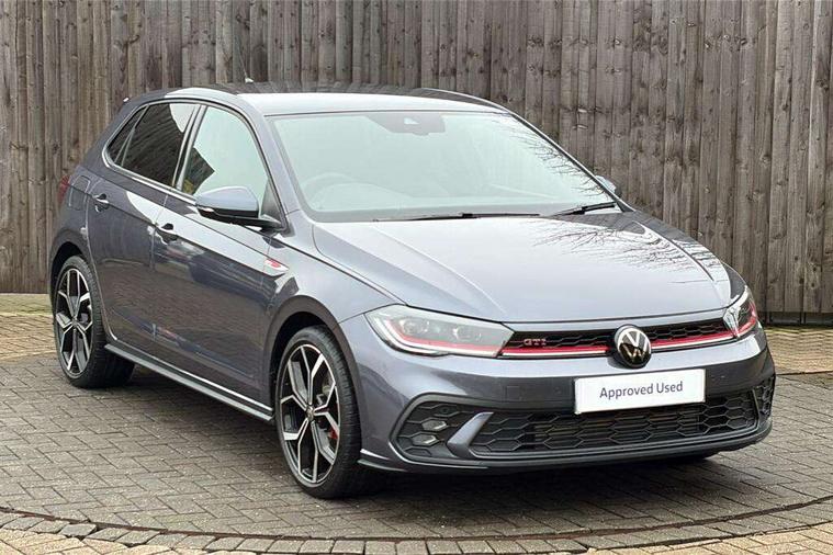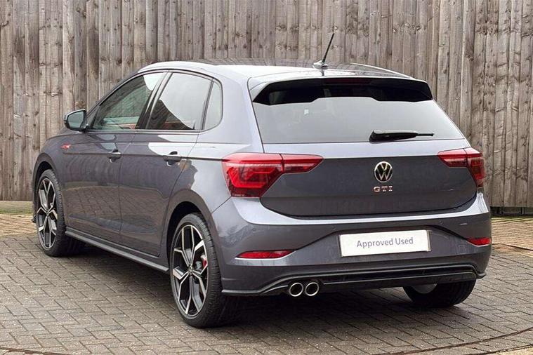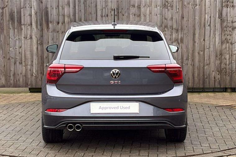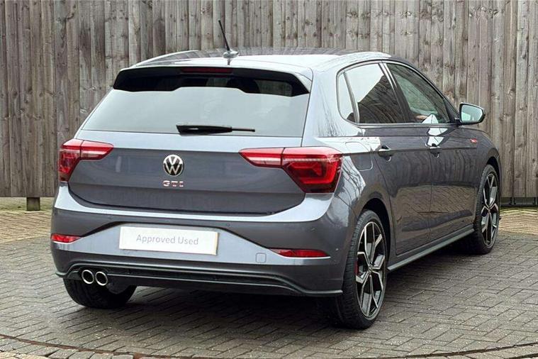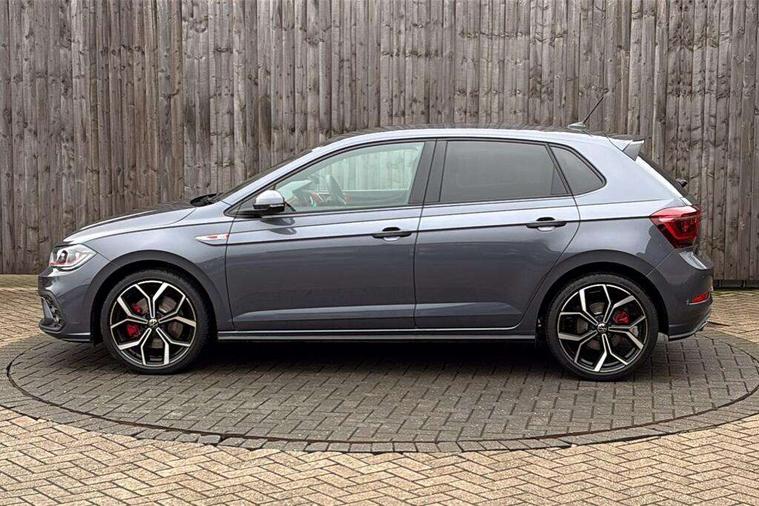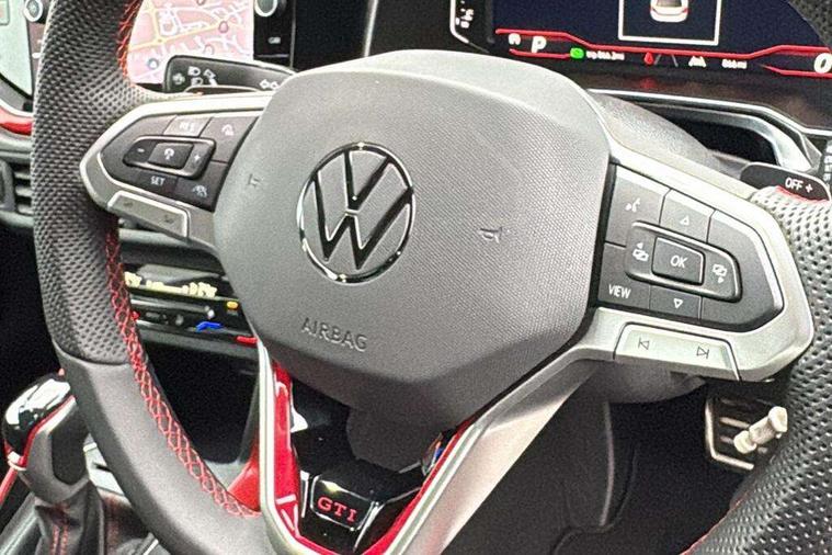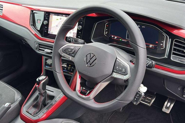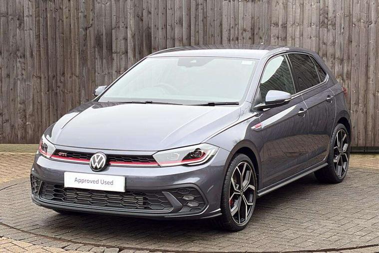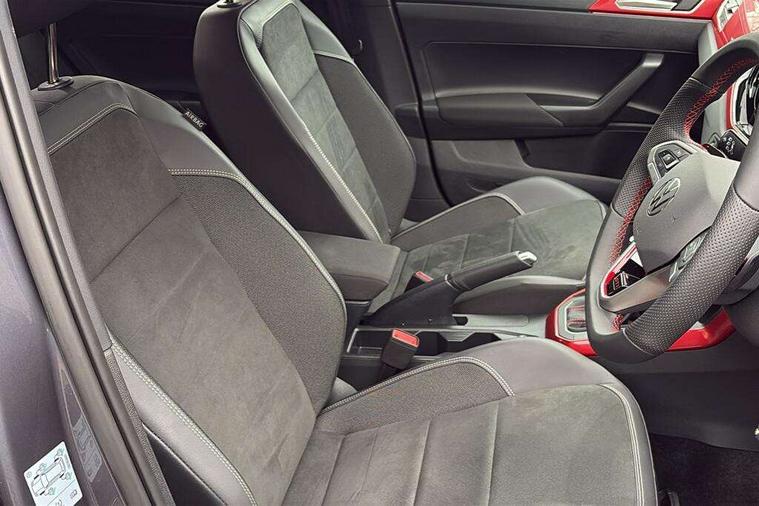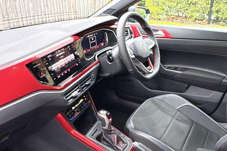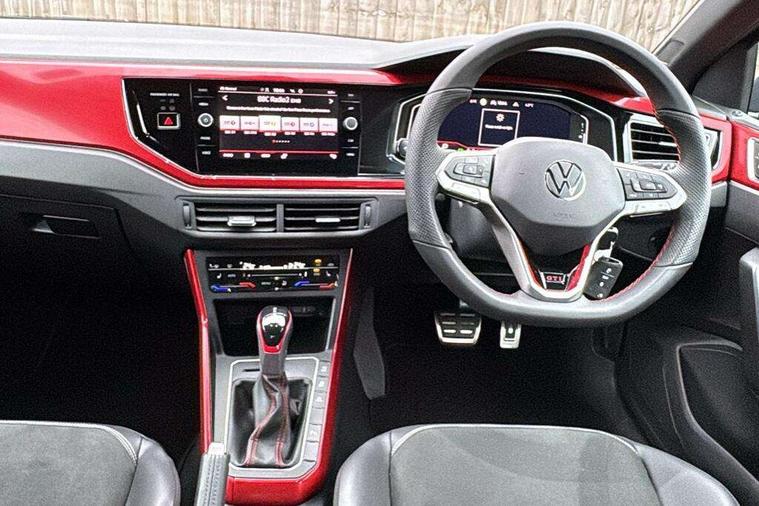 Adaptive cruise control with follow-to-stop and speed limiter, Advanced driver attention and drowsiness monitor, Bluetooth mobile phone interface, Digital Cockpit Pro with 10.25" Display, Dynamic road sign display, Eco mode, Emergency call service, Multifunction camera, Power assisted speed sensitive steering, Preparation for We connect and We connect plus, Speedo and rev counter, electronic odometer, trip, service interval display and fuel gauge, Travel Assist - Lane keeping system and traffic jam assist, Travel assist including emergency assist, Trip computer, Warning signal and warning light for front and rear seatbelts not fastened, Washer fluid level indicator, Wireless app connect, Adaptive chassis control, Front wheel drive, Heavy duty rear axle, Rear shock absorpion sports version, Sports select suspension lowered by 15mm, Start-stop system with battery regeneration (recuperation - energy recovery during braking), DAB Digital radio, Diversity antenna for FM reception, Front and rear 6 speakers, Body colour bumpers, Body colour door handles, Electric front windows, Front scuff plates in aluminium with GTI logo, Heat insulating darkened glass in side and rear windows, Heat insulating glass windscreen, Power folding adjustable/heated exterior mirrors and front passenger exterior mirror lowering function, Rain sensor, Rear electric windows, Rear fog light, Rear side wing doors, Rear windscreen washer and wiper with interval delay, Sport bumpers with air intakes with honeycomb structure, Third brake light, Twin chrome exhaust tailpipes, 12V power socket in centre console, 2 USB-C ports in the front, 2 USB-C charging sockets on the center console in the rear, 3 rear head restraints, 60/40 split folding rear seat and rear seat bench not split, Air care climatronic air conditoning system with active combination filter and 2-zone temperature control, Black roof lining, Carpet mats, front and rear, Chrome plated radiator grille inserts, air vent surrounds and light switch surrounds, Door and side trim panel, Driver and front passenger seat height adjustment, Driver/passenger sunvisors with illuminated vanity mirrors, Front centre armrest, Front footwell illumination, Front seat backrest storage pockets, GTI sports gearshift knob in aluminium leather, Handbrake lever handle in leather, Headliner in recycled material, Isofix child seat preparation easy-fit (for two outer rear seats, and front passenger seat) compatible with I-size, LED interior light with switch off delay and dimmer, 2 reading lights front and rear, Luggage compartment cover, Luggage compartment floor, Luggage compartment lighting, Single front passenger seat, Stainless steel pedals, Standard pedal cluster, Three spoke leather wrapped multifunction sports steering wheel with shifting paddles, IQ LED matrix headlights pack - Polo, Light and sight pack - Polo GTI, 3 point height adj front seatbelts + pretensioners, 3x3 point rear seatbelts, ABS, Driver and front passenger airbag with front passenger airbag deactivation, Drivers and front passengers safety optimised head restraints, ESC (Electronic stability control) + EDL (Electronic Differntial lock) and ASR (Traction control), Extended and predictive pedestrian/ cyclist protection, Front and rear disc brakes with red brake calipers, Front curtain and side airbags with center airbag, Hill hold control, Manual child lock in rear doors, Two tone horn, Tyre pressure loss indicator, Alarm with interior protection, Anti-theft alarm system with interior monitoring, backup horn, and towing protection, Anti-theft wheel bolts, Electronic engine immobiliser, Chrome applications on rotary light, mirror adjustment, window regulator switches, outlet with frame in black, Low rolling resistance tyres,