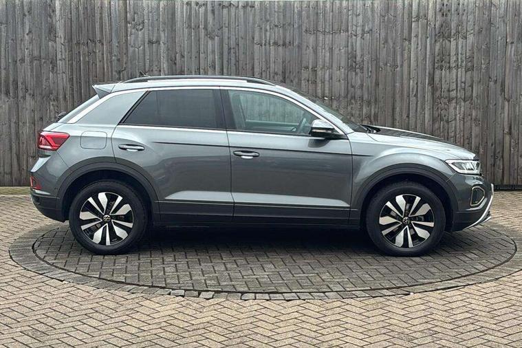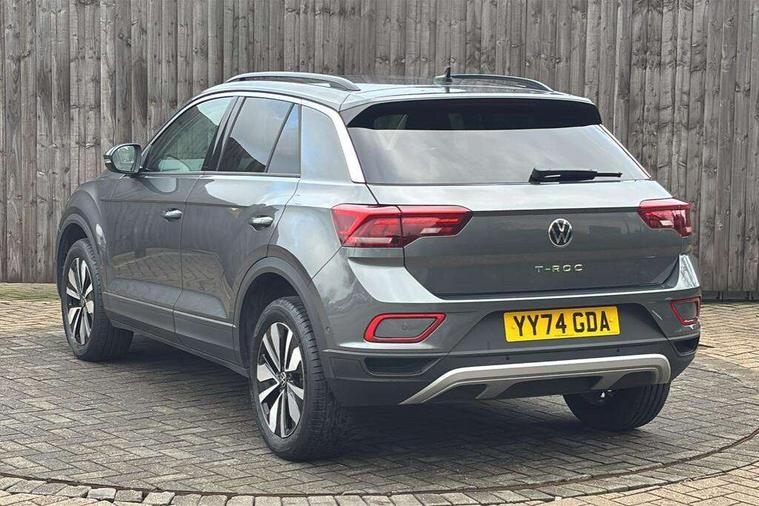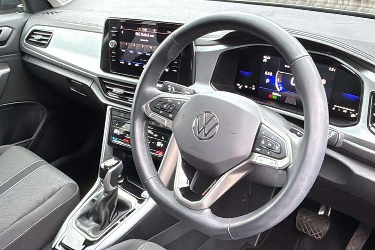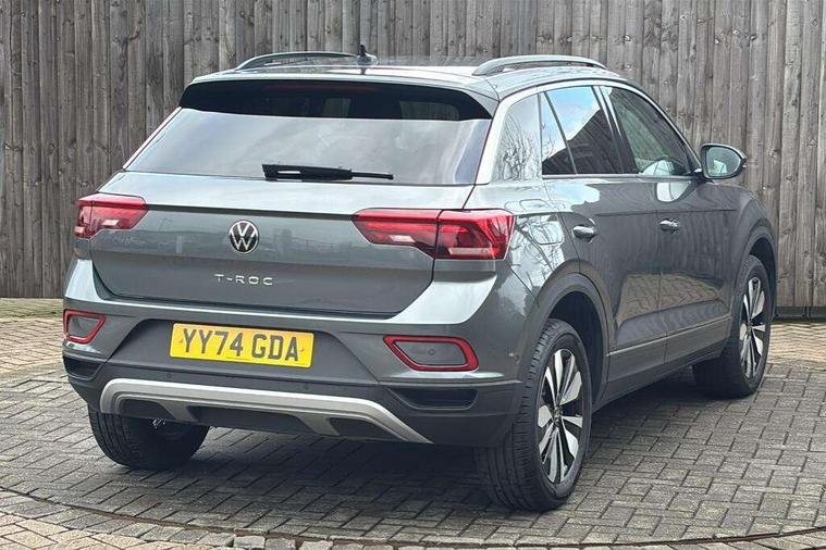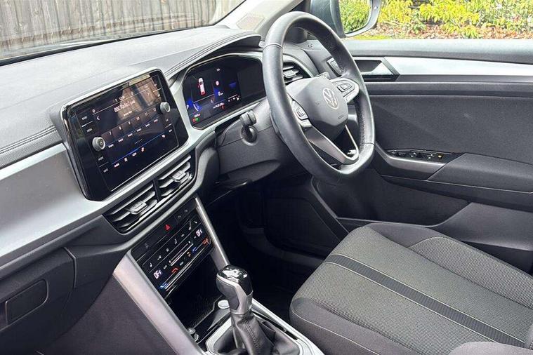 Advanced driver attention and drowsiness monitor, Dynamic road sign display, Emergency call service, Lane keeping system Lane Assist, Mobile phone interface, Modified key software - reduce switch off time for key status change to Long no motion, Online services, Park assist including front and rear parking sensors, Power assisted speed sensitive steering, Rear view camera, Service interval indicator, Tailgate/trunk lid release from outside, Think blue trainer driver tips and journey analysis, Warning sound and light for front seatbelts unfastened, Wireless app connect, Battery regeneration during braking, Front shock absorption, Rear shock absorption chassis with increased ride height, Start/stop function with battery regeneration, DAB Digital radio, Diversity antenna for FM reception, Front and rear 6 speakers, Music playback - MP3, WMA and AAC files, Premium USB cable in choice of either Apple or Android smartphone compatibility, SD card slot, Simultaneous pairing of 2 compatible mobile devices, Title and cover art display, We Connect and We Connect Plus functionality, Auto dimming interior rear view mirror, Automatic hazard lights activation under emergency braking, Automatic headlight control with LED separate daytime running lights with coming/leaving home function, Black roof rails, Body coloured bumpers and radiator grille with chrome trim and front fog lamps with chrome bezel, Body coloured exterior mirror housings and door handles, Electrically adjustable and heated door mirrors, Extended roof spoiler, Exterior mirrors aspherical on driver side, convex on front passenger side, External USB type C socket and charging sockets, Front windscreen wiper with intermittent wipe and 4 position delay, Heated rear window, LED 3rd brake light, LED rear combination lamps, LED rear number plate lights, Power windows with comfort operation and circuit breaker, Privacy glass for rear side windows and rear window, Rain sensor, Rear exhaust tailpipe, Rear fog light on one side and reversing lights on both sides, Rear side wing doors, Rear wash/wipe with intermittent wipe setting, Remote electrically foldable door mirrors, puddle lights and reverse activated passenger's door mirror, 12V power socket in centre console, 3 rear head restraints, 3 seat bench in 2nd row, 4 load lashing points in luggage compartment, Air care climatronic air conditoning system with active combination filter and 2-zone temperature control, Black stitching for floor mats, Ceramique roof liner, Cloth upholstery, Door and side trim panel in cloth, Drawer under drivers seat, Driver/front passenger seat height adjustment, Front centre armrest, Front comfort sports seats, Front cupholders x 2, Front reading light, Front seat back storage pockets, Glove compartment door with light, Instrument lighting, white adjustable panel illumination, Interior ambient lighting and surround lighting, Interior light delay, Isofix child seat preparation, Leather gearshift handle, Load-through provision with cup holder when folded down ('Unsplit rear seat bench, split folding backrest, with centre armrest), Luggage compartment lighting, Lumbar support for driver's and front passengers seat, Non-folding front passenger seat backrest, Single front passenger seat, Storage compartment in left and right luggage area, Storage compartment in rear doors, Storage compartments in driver and front passenger doors, Sunvisors with illuminated vanity mirrors, Variable boot floor, height adjustable and removable, Driver assistance pack without proactive passenger protection - T-Roc Life/Match, 3 point height adj front seatbelts + pretensioners, 3 point seatbelts in outer rear with ECE label, ABS, Child locks on rear doors, City emergency braking and pedestrian monitoring, Driver and front passenger airbag with front passenger airbag deactivation, Driver and front passenger safety-optimised head restraints, Drivers seatbelt reminder, Electronic parking brake, Electronic Stability Control (ESC) inc EDL (Electronic Differential Lock) and ASR (Traction Control), Front and rear passengers curtain airbag system including front side airbags, Front disc brakes, Hill start assist, Predictive pedestrian protection, Rear disc brakes, Two tone horn, Tyre pressure loss indicator, Volkswagen roadside assistance, Alarm with interior protection, Keyless locking and starting system keyless access with safelock, Pewter matt decorative inserts for intrument panel, centre console and door panels at the front, Trims for alloy wheels,