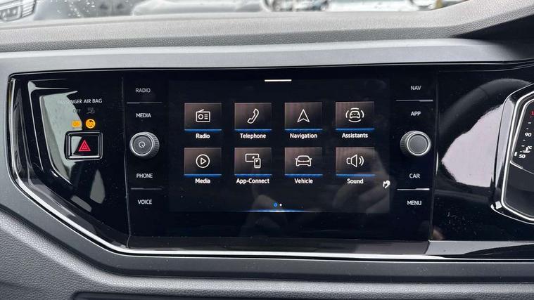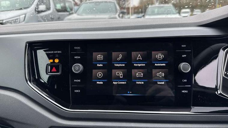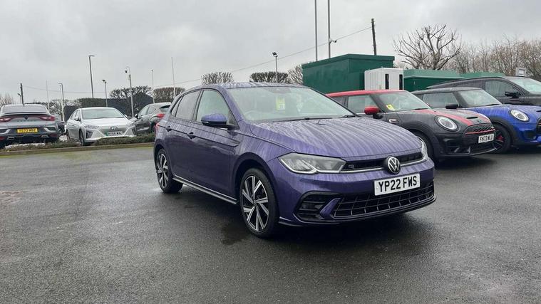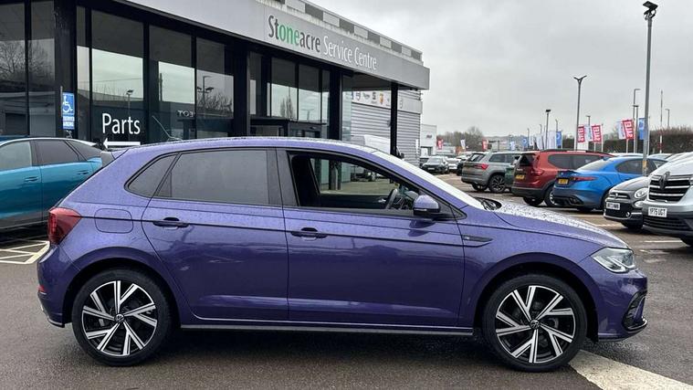 Adaptive cruise control without follow-to-stop and speed limiter, Bluetooth mobile phone interface, Digital Cockpit Pro with 10.25" Display, Driver alert system, Dynamic road sign display, Emergency call service, Power assisted speed sensitive steering, Preparation for We connect and We connect plus, Speedo and rev counter, electronic odometer, trip, service interval display and fuel gauge, Standard rear axle, Travel Assist - Lane keeping system and traffic jam assist, Travel assist including emergency assist, Trip computer, Warning signal and warning light for front and rear seatbelts not fastened, Washer fluid level indicator, Wireless app connect, Front wheel drive, Rear shock absorpion, Start-stop system with battery regeneration (recuperation - energy recovery during braking), DAB Digital radio, Diversity antenna for FM reception, Front and rear 6 speakers, Body colour bumpers, Body colour door handles, Body colour door mirrors, Electric front windows, Front fog lights with static cornering function, Front scuff plates with R-Line logo, Heat insulating darkened glass in side and rear windows, Heat insulating glass windscreen, Power folding adjustable/heated exterior mirrors and front passenger exterior mirror lowering function, Rear electric windows, Rear fog light, Rear side wing doors, Rear tinted glass from B-pillar backwards approx 65% tinted, Rear windscreen washer and wiper with interval delay, Third brake light, 12V power socket in centre console, 2 USB-C ports in the front, 2 USB-C charging sockets on the center console in the rear, 3 rear head restraints, 60/40 split folding rear seat and rear seat bench not split, Air care climatronic air conditoning system with active combination filter and 2-zone temperature control, Black roof lining, Ceramique headliner, Chrome plated radiator grille inserts, air vent surrounds and light switch surrounds, Door and side trim panel, Driver and front passenger seat height adjustment, Driver/passenger sunvisors with illuminated vanity mirrors, Front + rear carpet mats, Front centre armrest, Front footwell illumination, Front seat backrest storage pockets, Front sports comfort seats, Handbrake lever handle in leather, Isofix child seat preparation easy-fit (for two outer rear seats, and front passenger seat) compatible with I-size, Karoso artvelours cloth upholstery, Leather trimmed gear knob, LED interior light with switch off delay and dimmer, 2 reading lights front and rear, Luggage compartment cover, Luggage compartment floor, Luggage compartment lighting, Lumbar adjustment for front seats, Multifunction steering wheel, Single front passenger seat, Stainless steel pedals, Standard pedal cluster, Light and sight pack - Polo R-Line/Black Edition, 3 point height adj front seatbelts + pretensioners, 3x3 point rear seatbelts, ABS, Driver and front passenger airbag with front passenger airbag deactivation, Drivers and front passengers safety optimised head restraints, ESC (Electronic stability control) + EDL (Electronic Differntial lock) and ASR (Traction control), Extended and predictive pedestrian/ cyclist protection, Front curtain and side airbags with center airbag, Hill hold control, Manual child lock in rear doors, Single tone horn, Tyre pressure loss indicator, Alarm with interior protection, Anti-theft alarm system with interior monitoring, backup horn, and towing protection, Anti-theft wheel bolts, Electronic engine immobiliser, Chrome applications on rotary light, mirror adjustment, window regulator switches, outlet with frame in black, Dark grey anodised matt decorative inserts in dash and front door panels, Low rolling resistance tyres,