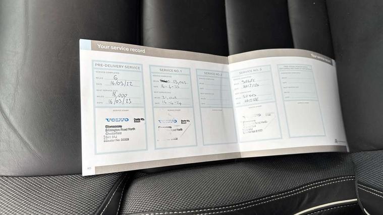 12.3" Active TFT crystal driver's instrument display, 9" centre console touch screen, Adjustable steering wheel force, Bluetooth handsfree system, Drive mode settings, Driver alert control with lane keeping aid, E-call, Front and rear park assist, Information centre, Oncoming Lane Mitigation, Sensus navigation with European mapping and traffic information, Service interval indicator, Speed limiter, Speed sensitive steering, Trip computer, Voice activated control for key functions, Volvo on call app, Lowered sports chassis, DAB Digital radio, Adaptive brake lights with high level LED brake lights, Auto dimming interior mirror, Automatic headlight levelling system, Automatic LED Headlights + Active high beam incorporating daytime running lights, Body colour bumpers, Colour coordinated auto folding and heated power door mirrors, Dark tinted windows for rear side windows and cargo area, Dual integrated exhaust pipes with high gloss black surround, High gloss black door mirrors and window surround, High gloss black mesh front grille with high gloss black surround, Home safe and approach lighting, Integrated roof rails in high gloss black, Power front and rear windows, Rain sensor with automatic windscreen wiper activation, Rear side wing doors, Rear wiper, Roof antenna, Roof spoiler, Visible VIN plate, 12V socket in front + tunnel console and cargo area, 3 seat bench in 2nd row, A-pillar parking ticket holder, B Pillar ventilation, Bright metal luggage compartment threshold, Cargo load hooks, Centre console cupholders, Charcoal headlining, Contour sports seats with nappa leather/textile upholstery, Extended front seat cushions, Floor mats, Front footwell illumination, Front head restraints, Front reading lights + Theatre lighting and centre armrest storage illumination, Front/rear door pockets and front cupholder illumination, Glovebox compartment with illumination, Heated front seats, Height/reach adjustable steering column, High gloss black steering wheel remote infotainment controls, Illuminated vanity mirrors + ticket holder, ISOFIX attachment on outer rear seats, Load cover, Load protection net, Luggage compartment illumination, Multi directional lumbar support, Multicolour theatre lighting and puddle lights, Rear armrest with storage + cupholders, Rear footwell and side step illumination, Single front passenger seat, Sport leather gear knob, Sports pedals, Tailgate illumination and ambient door lighting, Tailored sports steering wheel, Underfloor cargo storage, Versatile split folding rear seat - 60/40, WHIPS - Whiplash Protection System, 5 x 3 point seatbelts, City safety with steering support with Pedestrian + cyclist + large animal detection + front collision warning with full auto brake, Dual stage driver/passenger airbags, First aid kit, Hill start assist, IC (Inflatable Curtains) - Full Length, Passenger airbag cut-off switch, Power parking brake with auto hold function, Road sign information display, Run off Road Mitigation, Run off Road Protection, Seatbelt reminder and pretensioners for all seats, SIPS (Side Impact Protection System), SIPS airbags, Slippery road and hazard light alert, Stability and Traction Control with Spin control, Engine Drag Control and Corner Traction Control, Tyre pressure monitoring system, Vehicle deceleration control with Anti-lock Brake System, Electronic Brake Distribution and Emergency Brake Assist, Warning triangle, Anti-theft alarm including immobiliser/volume sensor + level sensor, Care key with user defined top speed, Key integrated remote control central locking + fuel flap with deadlocking system and auto open/close power windows, Keyless drive (incudes keyless entry and start) with remote tag and handsfree tailgate open/close, Locking wheel nuts, Private locking for tailgate, Metal mesh inlays,