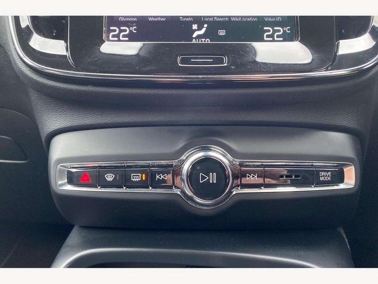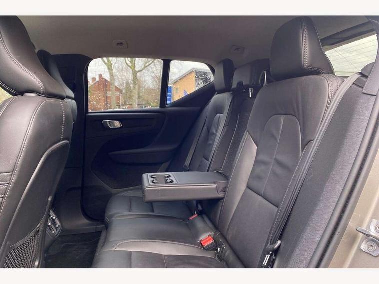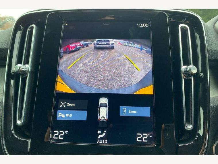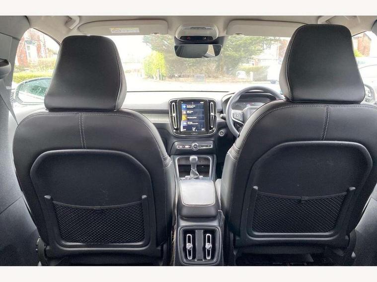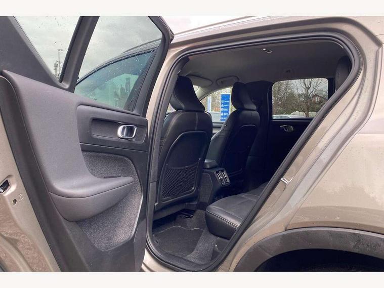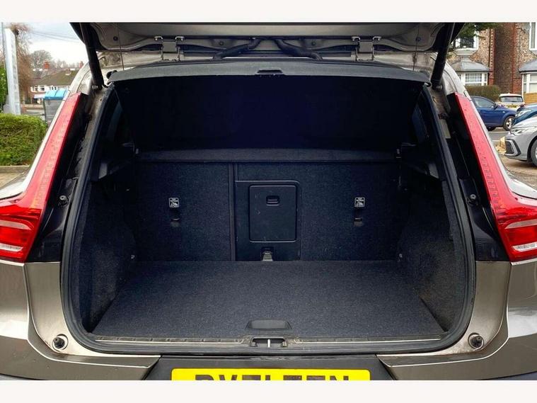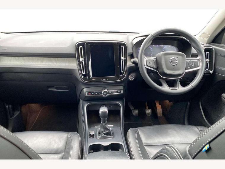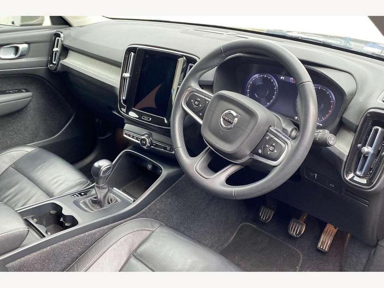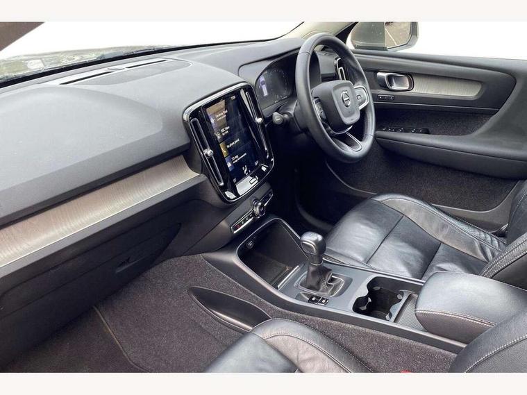 12.3" Active TFT crystal driver's instrument display, 9" centre console portrait touch screen, Adjustable steering wheel force, Bluetooth hands free telephone kit, Drive mode selector, E-call, Lane keep assist with driver alert control, Oncoming Lane Mitigation, Power operated tailgate, Sensus navigation with European mapping and traffic information, Speed limiter, Speed sensitive steering, Voice activated control for key functions, Volvo on call, Dynamic chassis, DAB Digital radio, Steering wheel mounted remote controls, Adaptive brake lights with high level LED brake lights, Auto dimming interior mirror, Automatic headlamp levelling, Chrome window surround, Colour coordinated auto folding and heated power door mirrors, Front aluminium tread plates, Front and rear electric windows, High gloss black front grille with chrome inserts, High gloss black sensus surround deco, High Gloss silver front and rear skid plate, Home safe and approach lighting, Integrated roof rails in silver, LED Headlights + Active high beam incorporating daytime running lights, Rain sensor with automatic windscreen wiper activation, Rear side wing doors, Rear wiper, Roof antenna, Roof spoiler, Visible VIN plate, 12V socket in front tunnel console and luggage compartment, 2 zone electronic climate control and rear air vent, 3 seat bench in 2nd row, 3 Spoke tailored steering wheel with chrome trim, 60/40 versatile split folding rear seat, A-pillar parking ticket holder, Bright metal luggage threshold, Centre console cupholders and storage, Floor mats, Front footwell illumination, Front headrests, Front reading light and theatre lighting, Glovebox bag hook, Height/reach adjustable steering column, Height/tilt adjustable driver's seat, Illuminated glovebox, Illuminated luggage compartment, Illuminated vanity mirrors, Isofix attachments on outer rear seats, Leather faced upholstery, Leather gearknob, Load protection net, Multi directional lumbar support, Power driver seat with memory + exterior mirrors memory, Rear armrest / integral cup holders / storage tray, Rear coat hook, Single front passenger seat, Underfloor cargo storage, Vanity mirror with ticket holder, Park assist pack - XC40, 3x3 point rear seatbelts, City safety includes pedestrian, cyclist and large animal detection and front collision warning with full auto brake, Drivers knee airbag, Dual stage driver/passenger airbags, Electronic parking brake with auto hold, First aid kit, Front and outer rear seatbelt reminder and pretensioners, Front seats SIPS airbags, Hill descent control, Hill start assist, Inflatable curtain, Passenger airbag cut-off device, Road sign information display, Run off Road Mitigation, Run off Road Protection, SIPS (Side Impact Protection System), Slippery road and hazard light alert, Stability and Traction Control with Spin control, Engine Drag Control and Corner Traction Control, Tyre pressure monitoring system, Vehicle deceleration control with Anti-lock Brake System, Electronic Brake Distribution and Emergency Brake Assist, Warning triangle, WHIPS whiplash protection system - front, Anti-theft alarm including immobiliser/volume sensor + level sensor, Care key with user defined top speed, Key integrated remote control central locking + fuel flap with deadlocking system and auto open/close power windows, Locking wheel nuts, Private locking for tailgate, Driftwood inlays,