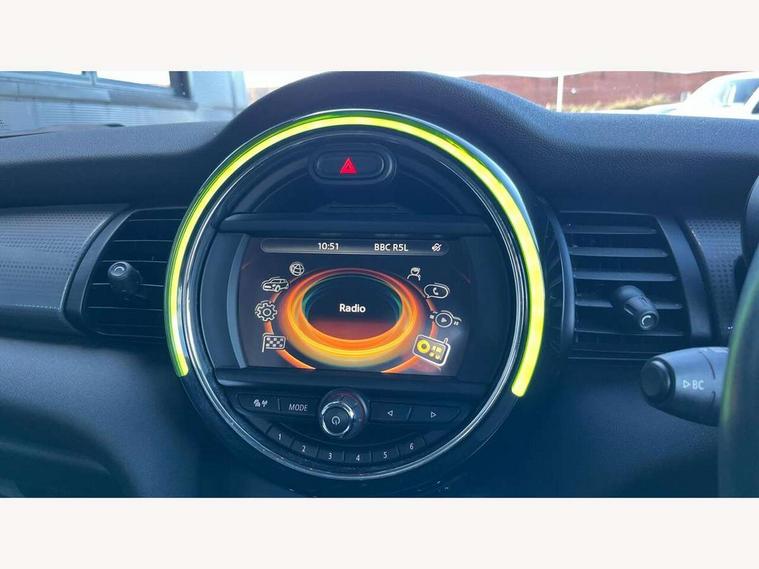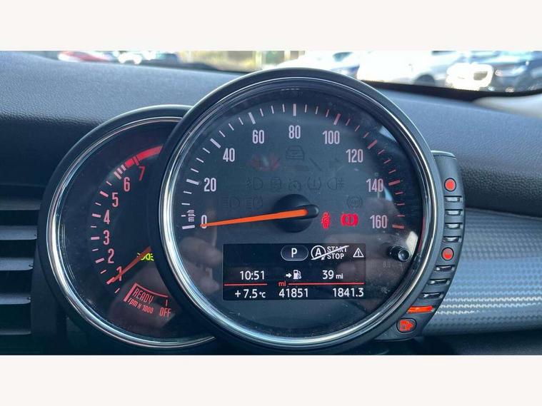 Acoustic seat-belt warning, Brake fluid level warning light, Brake pad wear indicator warning light, DTC - Dynamic traction control, Exterior temperature gauge, Intelligent emergency call, MINI TeleServices, Oil level indicator, On board computer, Push button starter, Service interval indicator, Servotronic PAS, Electronic differential lock, Auxiliary input socket, DAB digital radio module, 2 speed wipers+intermittent wipe, Aluminium tailgate, Anti dazzle mirror, Anti trapping/one touch open close front windows, Body coloured bumpers, Chrome bezels around rear lights and headlights, Chrome door handles, Chrome exhaust tailpipe, Chrome plated radiator grille, Chrome plated trim on bottom edge of window, Chrome strip on lower grille, Electric front windows, Electrically adjustable door mirrors, Flared wheel arches, Follow me home headlights, Green tinted heat insulating glass, Heated door mirrors/heated windscreen washers, Heated rear window with auto timer, Metal look door sill finishers, Rear wiper, Roof spoiler in roof colour, 2 rear head restraints, 4 boot load lashing points, 4 way manually adjustable passenger seat with height, reach, tilt, backrest and headrest, 6-way manually adjustable driver's seat, Active carbon filter, Air recirculation system, Auxiliary socket in centre console storage compartment, Centre console storage, Driver's seat height adjuster, Driver/passenger sunvisors, Easy entry seats, Front and rear cupholders, Front head restraints, Front interior light, Front passenger grab handle, Gear/selector and handbrake in artificial leather, Internal chrome door handles, Isofix child seat preparation, Luggage compartment lighting, Reach + rake adjustable steering column, Rear grab handles, Rear storage trays, Split folding rear seats, Storage compartments in doors, Toolkit in luggage compartment, Vanity mirrors, 3 point seatbelts, ABS/EBD, ASC+T, Cornering brake control (CBC), Crash Sensor - activates hazard/interior lighting + unlocks doors, Driver and passenger airbags, Driver/front passenger side airbags, DSC - Dynamic Stability Control, Fuel cut off safety device, Head airbags, Hill start assist, Manual passenger airbag deactivation function, Seatbelt pretensioners, Tyre pressure warning, Ventilated front disc brakes, Drive away door locking, Locking wheel bolts, Remote central locking/doors+fuel cap+tailgate, Second remote key, Thatcham category 1 alarm + immobiliser,