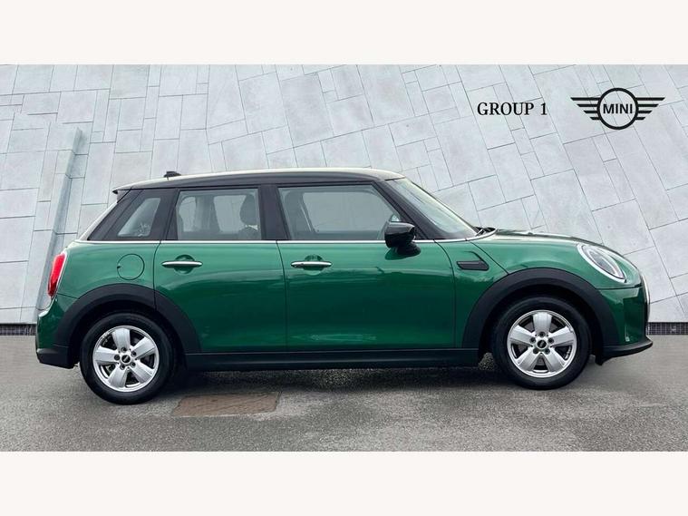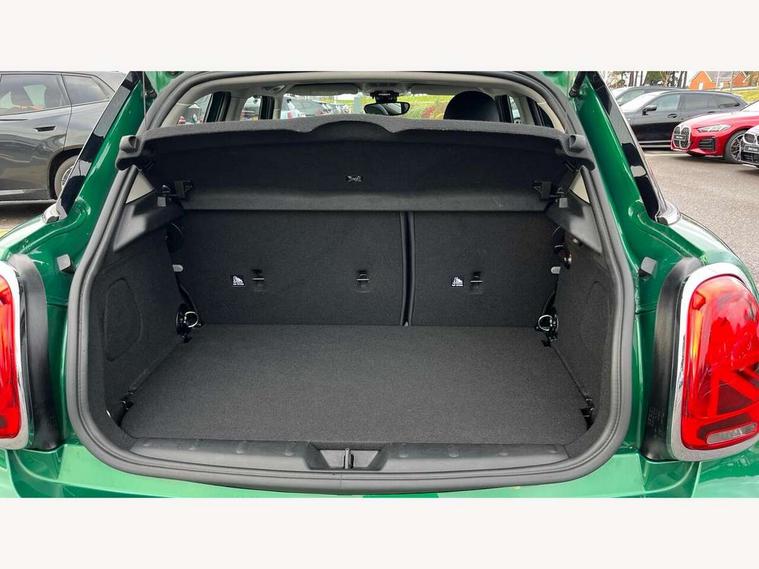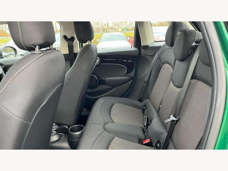 Apple CarPlay, Automatic start/stop function with brake energy recuperation, Compatible mobile phone bluetooth with audio streaming, Cruise control with brake assist, Electro-mechanical speed dependant steering assistance, Flexible car sharing preparation, Instrument cluster, Mini E-call, MINI TeleServices, On board computer, Service interval indicator, Double Vanos system, Fully variable valve control, Gear change indicator display, High precision injection, Performance Control, Steptronic transmission with double clutch, 8.8" touchscreen with LED ring, FM tuner and DAB digital radio, 3rd brake light, Automatic headlight activation switch, Body colour fuel filler cap, Chrome border high gloss black slats radiator grille, Dynamic brake lights, Electric front+rear windows, Exhaust tailpipe on left with chrome finisher, Heated rear window, Heated windscreen washer jets, LED headlight with closed ring and daytime driving lights, Metal door sill strips with MINI imprint, Model logo Cooper on right of tailgate, Rain sensor window wipers, Rear fog lights, Rear LED lights with union jack design, Rear side wing doors, Rear window wiper, Side scuttle panel with integrated indicator, Sun/heat protection glass, White indicator lenses, 12V Accessory socket in centre console, 3 seat bench in 2nd row, 4 lashing eyes in luggage compartment, 60/40 split folding rear seat, Ambient lighting, Carbon black colour line - Knee roll and door armrest, Chrome interior highlights, Cupholders, Front and rear head restraints, Front and rear isofix with front passenger airbag deactivation, Front and rear velour floor mats, Glove compartment, Height and length steering column adjustment, Interior lighting with 12 different colours across the dashboard, underneath door bezel with illuminated laser-engraved design on central display, Leatherette gearshift lever and handbrake gaiters, LED reading lights, vanity mirror lights, front foot well light and spotlight on front seats, Manual air conditioning, Mechanical seat adjustment - forward/back & backrest for front seats and driver seat height adjust, Multifunction steering wheel, Satellite grey headlining including grab handles and clothes hooks, Single front passenger seat, Sport leather steering wheel with speed limiter and audio/communication controls, Storage compartments in doors, Sunvisors with vanity mirrors, 3 point seatbelts on all five seats, 6 Airbags - front, side, head and seat belt tensioners, Anti-lock braking system (ABS), Child locks on rear doors, DSC - Dynamic Stability Control, Front and rear disc brakes, Hill start assist, Single tone fanfare horn, Tyre pressure monitoring system, Alarm system with tilt sensor, monitoring doors, bonnet interior and tailgate, Electronic vehicle immobiliser, Start/stop toggle with keyless go, Piano black interior trim, Tool kit, Tyre repair kit,