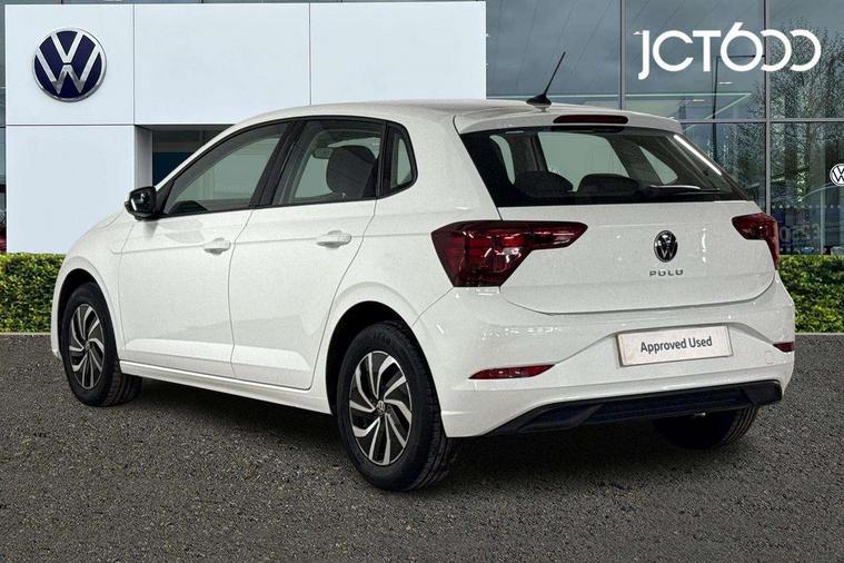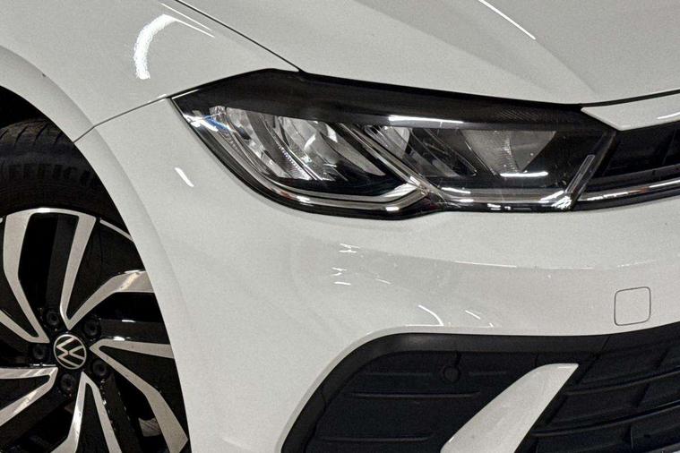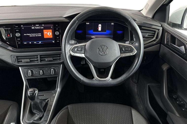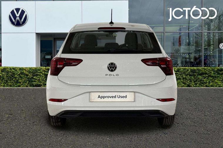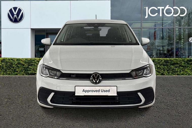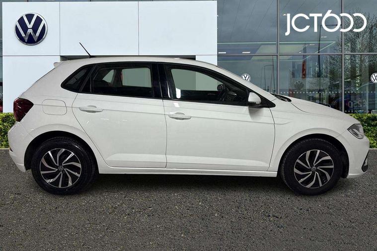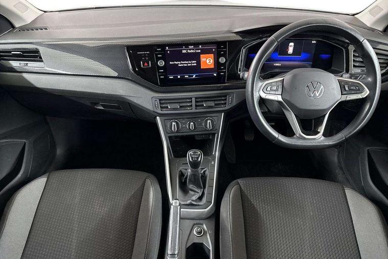 Adaptive cruise control without follow-to-stop and speed limiter, Bluetooth mobile phone interface, Driver alert system, Emergency call service, Front assist system, Power assisted speed sensitive steering, Preparation for We connect and We connect plus, Speedo and rev counter, electronic odometer, trip, service interval display and fuel gauge, Standard rear axle, Travel Assist - Lane keeping system and traffic jam assist, Travel assist including emergency assist, Trip computer, Warning signal and warning light for front and rear seatbelts not fastened, Washer fluid level indicator, Wireless app connect, Front wheel drive, Rear shock absorpion, Start-stop system with battery regeneration (recuperation - energy recovery during braking), DAB Digital radio, Diversity antenna for FM reception, Front and rear 6 speakers, Automatic dimming interior rear view mirror, Body colour bumpers, Body colour door handles, Body colour door mirrors, Electric front windows, Heat insulating darkened glass in side and rear windows, Heat insulating glass windscreen, Power folding adjustable/heated exterior mirrors and front passenger exterior mirror lowering function, Rain sensor, Rear electric windows, Rear fog light, Rear side wing doors, Rear windscreen washer and wiper with interval delay, Third brake light, 12V power socket in centre console, 2 front and 2 rear reading lights, 2 USB-C ports in the front, 2 USB-C charging sockets on the center console in the rear, 3 rear head restraints, 60/40 split folding rear seat and rear seat bench not split, Ceramique headliner, Chrome plated radiator grille inserts, air vent surrounds and light switch surrounds, Door and side trim panel, Driver and front passenger seat height adjustment, Driver/passenger sunvisors with illuminated vanity mirrors, Front centre armrest, Front seat backrest storage pockets, Front standard seats, Handbrake lever handle in leather, Hartley/Thomas cloth upholstery, Isofix child seat preparation easy-fit (for two outer rear seats, and front passenger seat) compatible with I-size, Leather trimmed gear knob, Luggage compartment cover, Luggage compartment floor, Luggage compartment lighting, Multifunction steering wheel, Single front passenger seat, Standard pedal cluster, Light and vision pack - Polo, 3 point height adj front seatbelts + pretensioners, 3x3 point rear seatbelts, ABS, Driver and front passenger airbag with front passenger airbag deactivation, Drivers and front passengers safety optimised head restraints, ESC (Electronic stability control) + EDL (Electronic Differntial lock) and ASR (Traction control), Extended and predictive pedestrian/ cyclist protection, Front curtain and side airbags with center airbag, Front disc brakes, Hill hold control, Manual child lock in rear doors, Rear drum brakes, Single tone horn, Tyre pressure loss indicator, Alarm with interior protection, Anti-theft alarm system with interior monitoring, backup horn, and towing protection, Anti-theft wheel bolts, Electronic engine immobiliser, Lava stone black gloss/matt decorative inserts in dash and front door panels, Low rolling resistance tyres,