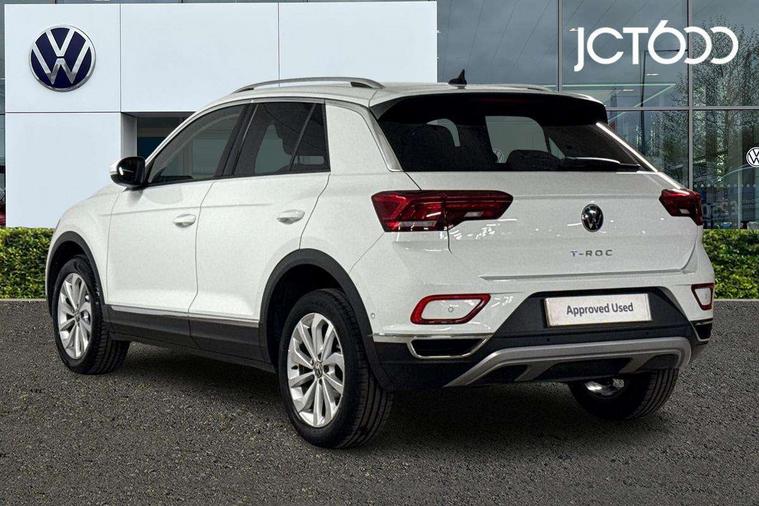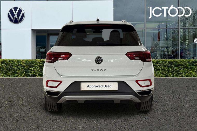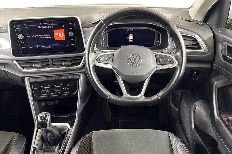 10.25" Digital cockpit pro, Bluetooth mobile phone interface, Driver alert system with fatigue detection, Driver tips and journey analysis, Dynamic road sign display, Emergency call service, Lane keeping system Lane Assist, Modified key software - reduce switch off time for key status change to Long no motion, Online services, Park assist including front and rear parking sensors, Power assisted speed sensitive steering, Service interval indicator, Tailgate/trunk lid release from outside, Think blue trainer driver tips and journey analysis, Warning sound and light for front seatbelts unfastened, Wireless app connect, Battery regeneration during braking, Front shock absorption, Rear shock absorption chassis with increased ride height, Start/stop function with battery regeneration, Diversity antenna for FM reception, Front and rear 6 speakers, Music playback - MP3, WMA and AAC files, Premium USB cable in choice of either Apple or Android smartphone compatibility, SD card slot, Simultaneous pairing of 2 compatible mobile devices, Title and cover art display, We Connect and We Connect Plus functionality, 3rd brake light, Auto dimming interior rear view mirror, Automatic hazard lights activation under emergency braking, Automatic headlight control with LED separate daytime running lights with coming/leaving home function, Body colour sports bumpers with silver metallic underbody fascia, Dynamic headlight range control with self adjusting whilst driving, Extended roof spoiler, Exterior mirrors aspherical on driver side, convex on front passenger side, External USB type C socket and charging sockets, Front windscreen wiper with intermittent wipe and 4 position delay, Heated rear window, LED Plus headlamps, LED rear combination lamps, LED rear number plate lights, LED tail lamp rear comination lamps, Light mode for poor weather, rain, fog or snow, Power windows with comfort operation and circuit breaker, Rain sensor, Rear exhaust tailpipe, Rear fog light on one side and reversing lights on both sides, Rear side wing doors, Rear wash/wipe with intermittent wipe setting, Remote electrically foldable door mirrors, puddle lights and reverse activated passenger's door mirror, 12V power socket in centre console, 3 rear head restraints, 3 seat bench in 2nd row, 4 load lashing points in luggage compartment, Air care climatronic air conditoning system with active combination filter and 2-zone temperature control, Chrome plated radiator grille inserts, air vent surrounds and light switch surrounds, Door and side trim panel with leatherette insert, Drawer under drivers seat, Front + rear carpet mats, Front centre armrest, Front comfort sports seats, Front cupholders x 2, Front footwell illumination, Instrument lighting, white adjustable panel illumination, Interior ambient lighting and surround lighting, Interior light delay, Isofix child seat preparation, Leather gearshift handle, LED interior light with switch off delay/dimmer and 2 front/rear LED reading lights, Load-through provision with cup holder when folded down ('Unsplit rear seat bench, split folding backrest, with centre armrest), Luggage compartment lighting, Non-folding front passenger seat backrest, Single front passenger seat, Storage compartment in left and right luggage area, Storage compartment in rear doors, Storage compartments in driver and front passenger doors, Sunvisors with illuminated vanity mirrors, Variable boot floor, height adjustable and removable, Driver assistance pack without proactive passenger protection - T-Roc, 3 point height adj front seatbelts + pretensioners, 3 point seatbelts in outer rear with ECE label, ABS, Child locks on rear doors, Driver and front passenger airbag with front passenger airbag deactivation, Driver and front passenger safety-optimised head restraints, Drivers seatbelt reminder, Electronic parking brake, Electronic Stability Control (ESC) inc EDL (Electronic Differential Lock) and ASR (Traction Control), Front and rear passengers curtain airbag system including front side airbags, Front assist with city emergency braking and pedestrian monitoring, Front disc brakes, Front seat side impact airbags, Predictive pedestrian protection, Rear disc brakes, Single tone horn, Tyre pressure loss indicator, Volkswagen roadside assistance, Alarm with interior protection, Anti-theft alarm system with interior monitoring, backup horn, and towing protection, Remote central locking with SAFELOCK, radio remote control with 2 remote control folding keys, Trims for alloy wheels,
