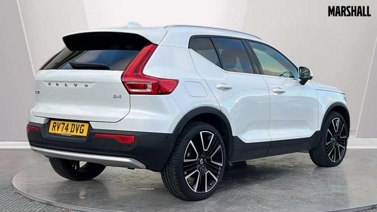 12.3" Progressive Driver Display, 360 degree surround view parking camera with side proximity sensors, 9" centre console portrait touch screen, Adjustable steering wheel force, Android auto (Wired), Apple carplay (wired), Bluetooth handsfree system, Driver alert control, Driver assistance (pilot assist and adaptive cruise control), Driver awareness - Blind spot information system with steer assist, cross traffic alert with autobrake and rear collision warning and mitigation, E-call, Front park assist, Google automotive services - Enabled entertainment apps, navigation with google maps, voice recognition with google assistant, Hands free power tailgate, Intelligent speed assistance, Lane keeping aid, Oncoming Lane Mitigation, Rear park assist, Speed sensitive steering, Volvo cars services with app - Driving journal, emergency and breakdown call, engine remote start, remote door locking/unlocking and vehicle dashboard, Wireless/Inductive Mobile Phone Charging, Automatic transmission with start/stop and manual change functions, Dynamic chassis, DAB Digital radio, Premium Sound by Harman Kardon, Dolby Pro Logic II Surround Sound, Dirac Unison, 12 speakers/600W and subwoofer, Steering wheel mounted remote controls, Active bending pixel LED headlights with adaptive shadow technology, Active high beam incorporating daytime running lights, Adaptive brake lights with high level LED brake lights, Auto dimming feature for exterior door mirrors, Auto dimming interior mirror, Automatic headlamp levelling, Dark tinted windows - rear side windows and rear screen, Front aluminium tread plates, Front and rear electric windows, Headlight cleaning system, High gloss black front and rear skid plate, High gloss black front bumper deco, High gloss black mesh front grille with high gloss black surround, High gloss black window trim, Home safe and approach lighting, Integrated roof rails in high gloss black, LED front fog lights with cornering function, Power glass tilt and slide panoramic sunroof with sun curtain, Puddle lights, Rain sensor with automatic windscreen wiper activation, Rear side wing doors, Rear wiper, Roof antenna, Roof spoiler, Visible VIN plate, 12V socket in front tunnel console and luggage compartment, 2-Zone electronic climate control with CleanZone air quality system and pollen filter, 3 seat bench in 2nd row, 3 Spoke tailored steering wheel with chrome trim, 60/40 versatile split folding rear seat, Centre console cupholders and storage, Flexible load floor and grocery bag holder, Floor mats, Front cabin courtesy lights, Front door pocket, front cupholder, ambient front door, rear reading, rear courtesy, instrument panel and tailgate lighting, Front footwell illumination, Front headrests, Front reading lights, Front seat cushion extensions, Front side step illumination (under door), Glovebox bag hook, Heated front seats, Height/reach adjustable steering column, High gloss centre tunnel deco, Illuminated glovebox, Illuminated luggage compartment, Illuminated vanity mirrors + ticket holder, Integrated waste bin, Isofix attachments on outer rear seats, Load cover, Load protection net, Multi directional lumbar support for driver and passenger seat, Power driver seat with memory + exterior mirrors memory, Power folding rear headrests, Power passenger seat, Rear armrest with cupholders, Single front passenger seat, Underfloor cargo storage, Climate pack without heated front seats - XC40, 3x3 point rear seatbelts, City safety with steering support with Pedestrian + cyclist + front collision warning with full auto brake and rear auto brake, Driver and passenger airbags, Drivers knee airbag, Electronic parking brake with auto hold, First aid kit, Front and outer rear seatbelt reminder and pretensioners, Front seats SIPS airbags, Hill descent control, Hill start assist, Inflatable curtain, Passenger airbag cut-off device, Power child locks on rear doors, Road sign information display, Run off Road Protection, SIPS (Side Impact Protection System), Slippery road and hazard light alert, Stability and Traction Control with Spin control, Engine Drag Control and Corner Traction Control, Tyre pressure monitoring system, Vehicle deceleration control with Anti-lock Brake System, Electronic Brake Distribution and Emergency Brake Assist, Warning triangle, WHIPS whiplash protection system - front, 2 x Key integrated remote control central locking including with deadlocking system and auto open/close windows and sunroof, Anti-theft alarm including immobiliser/volume sensor + level sensor, Keyless drive includes keyless entry and keyless start, Locking wheel nuts,
