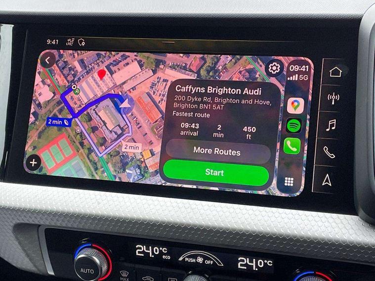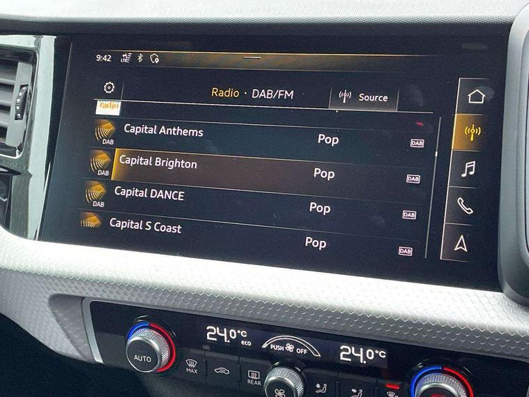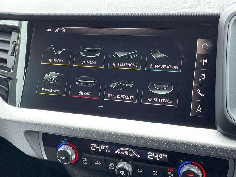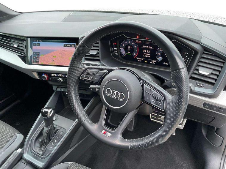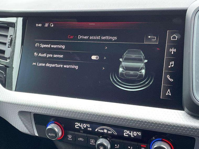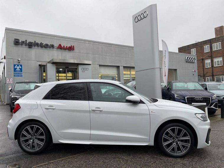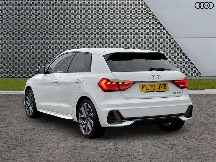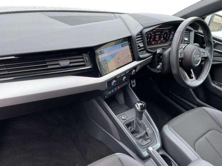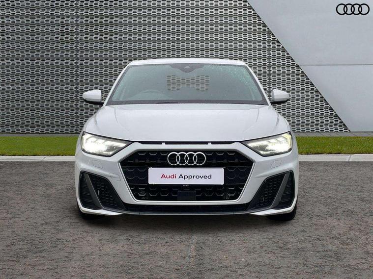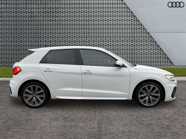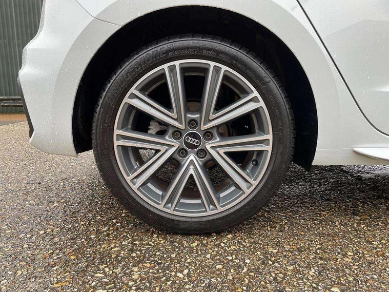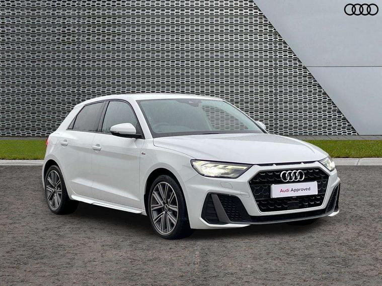 10.25" Digital instrument cluster display classis style instrument dials + speed, odometer, time, outside temperature, telephone menu + fuel level warning, Audi connect safety emergency and service including E-call, Audi drive select - power steering assistance + engine + gear shift 3 preset modes (auto, dynamic, efficiency and an Individual mode), Audi smartphone interface with connect compatible smartphone via USB directly MMI display + Nav, music, third party apps controlled via MMI controller, Automatic start/stop system, Bluetooth interface, Cruise control, Driver's information system, Electromechanical power steering, Lane departure warning system, Rear parking sensor, Service interval indicator, Speed limiter, Voice control system, Washer fluid level indicator, Sports suspension, 1 x SDXC card reader, 1 x USB type C and 1 USB type A charging points, DAB Digital radio, MMI radio plus with 8.8" colour MMI display screen and MMI touch, Auto dimming rear view mirror, Body coloured door mirrors, Door sills with aluminium inlays and S Line logo, Electric front and rear windows, Electrically adjustable, heated, folding door mirrors with integrated LED side indicator, Front side air inlets in grained matt black and C frame in titanium black, Heat insulating glass windscreen and side windows, Heated rear windscreen, LED headlights with LED rear lights + dynamic rear indicators + headlight adjustment and high beam, turning light + LED daytime running lights, Radiator grille and rear diffuser in matt titanium black, Radiator protective grille frame in matt aluminium silver, Rain and light sensors, Rear fog lights, Rear wiper, S line badges on front wings, Side front spoiler lips in grained matt black, 12V socket in centre console with two cup holders, 3 rear seats with headrests, 40:60 Split folding rear seat or folded fully, Black cloth headlining, Driver and passenger seat with manual height adjust with forward and backwards adjustment, Front and rear black floor mats with contrast stitching in fine silver, Front head restraints, Height and reach adjustable steering wheel, ISOFIX child seat mounting for front passenger and outer rear seats including top tether attachment point of outer rear seats, Leather gear knob with aluminium trim, Luggage compartment light with front and rear reading lights, Manually adjustable lumbar support in front seats, Stainless steel pedals, LED interior lighting pack - A1, Luggage compartment pack - A1, S line exterior styling pack - A1 Sportback, 3x3 point rear seatbelts, Audi pre-sense front with pedestrain and cyclist recognition, Brake assist function, Driver and front passenger airbag with front side and head airbags, Electronic Stability Control including ABS, EBD, ASR and EDL, Front and rear seatbelt reminder, Front passenger airbag deactivation switch, Hill hold assist, Seatbelt height adjustment for front seats, Seatbelt monitoring, Tyre pressure warning light, Warning triangle and first aid kit, Anti theft alarm, Anti theft wheel bolts and loose wheel warning, Immobiliser, Remote central locking with 2 foldaway keys, Aluminium trim for control switches, air vents and digital instrument cluster, Silver grey inlays polygon structure in diamond paint finish, Structured grey accent areas including air vents, door handle recesses and centre console in quartz paint finish,