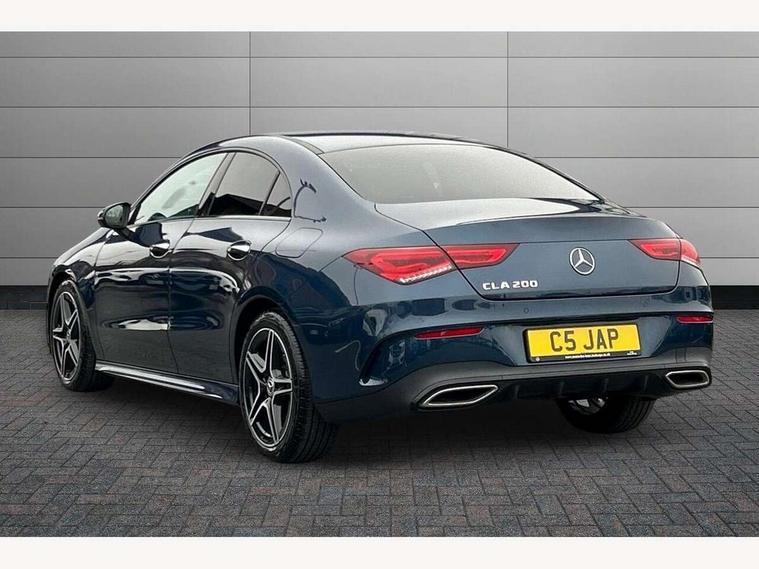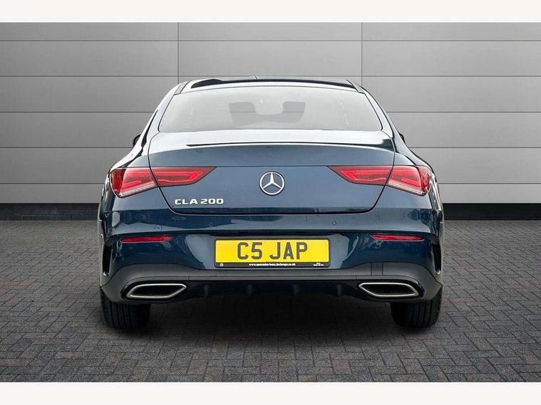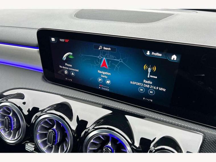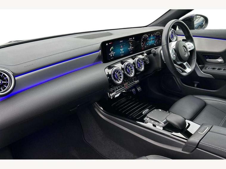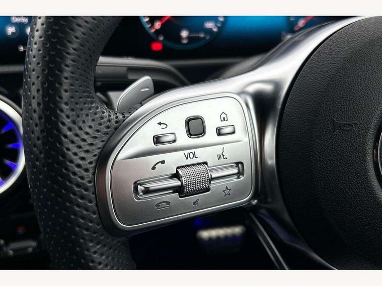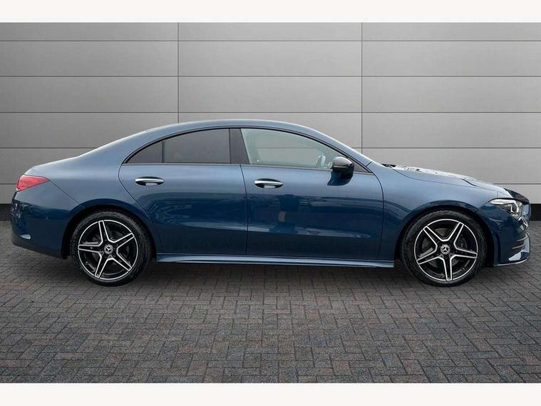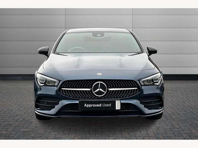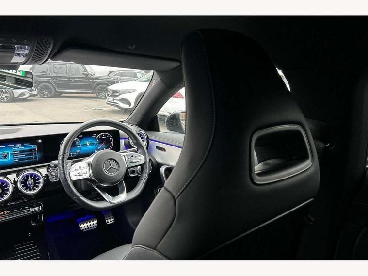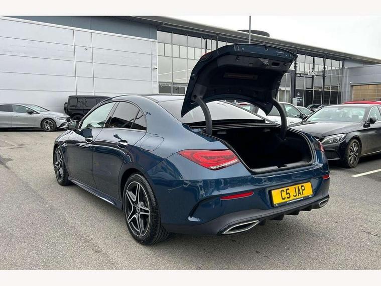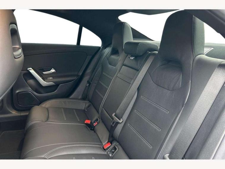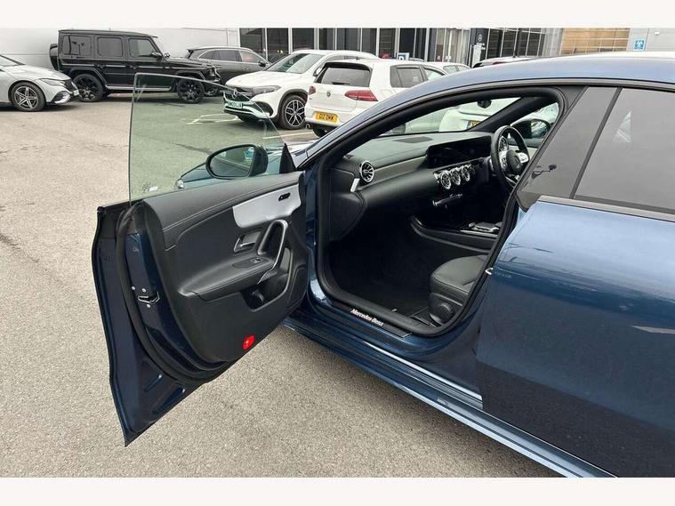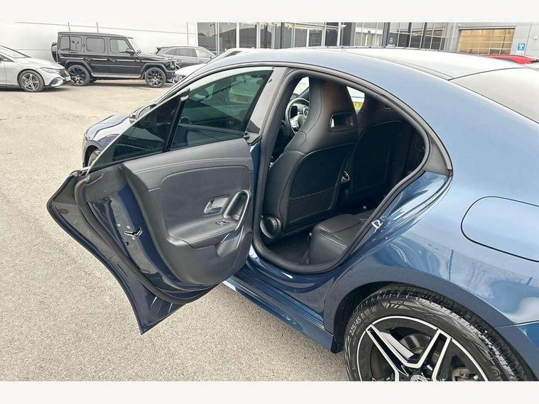 10.25 inch Instrument display with digital cockpit, 10.25 inch touchscreen central media display, Active lane keeping assist, Attention assist - Monitors steering behaviour and long journey fatigue, Bluetooth connection, Car wash mode, Cruise control with limiter, Direct steer system with speed sensitive power steering, DYNAMIC SELECT with a choice of driving modes (ECO, Comfort, Sport and Individual), ECO start/stop function, Fluid level warning indicator for fuel, oil, coolant and washer fluid, Hard-disk navigation, Hey Mercedes Voice activation, Lamp failure indicator, Mercedes me connect including emergency call system, accident recovery, breakdown and maintenance management, Mercedes me remote services, Outside temperature gauge, Owners manual and service booklet in English, Pre-installation of private car share, Preinstallation for Mercedes Benz link, Radio aerial integrated into front and rear windshields, Service indicator (ASSYST), Smartphone integration with Apple CarPlay and Android auto, Speed limit assist, Trip computer in multifunction display with current consumption indicator, Lowered comfort suspension, Rear axle multi-link, DAB digital radio tuner, MBUX multimedia system, Mid-range sound system, USB (type C) ports (2) in stowage compartment and 1 in front of centre console, Adaptive brake lights, AMG body styling with AMG front apron and rear apron and visible exhaust tailpipe in chrome trim elements, AMG bodystyling side skirts, Body colour bumpers, Body colour door handles, Chrome beltline strips, Diamond radiator grille pins in chrome, Electric windows, Electrically adjustable and heated door mirrors with integrated LED indicators, Exhaust system with 2 Visible tailpipe trim elements and rear apron with trim in chrome, Headlamp assist automatic headlamp activation, Heated glass rear windscreen + timer control, High level LED third brake light, Interior mirror with black reading lamps and frameless, LED high performance headlamps with integrated LED daytime running lights, LED tail lamp, Privacy glass with dark tinting on rear side windows and rear window, Rain sensing windscreen wipers with two sensitivity settings, Rear boot, Rear fog lamp, Rear side wing doors, Variable front intermittent wipers, Window line trim strip in chrome, 3 seat bench in 2nd row, 3 spoke flattened bottom nappa leather multifunction steering wheel with perforated leather in grip area, 40:20:40 split folding rear seat backrests, Air conditioning - Two zone thermotronic luxury automatic climate control with display, Air vents with surround in silver chrome, Artico man-made leather upholstery, Automatic child seat recognition sensor, Black roof lining, Brushed stainless steel sports pedals with rubber studs, Floor mats with stitched AMG lettering, Front centre armrest with stowage, Galvanished gear shift paddles on steering wheel, Heated front seats, Illuminated front door sills with changeable cover, Illuminated glove compartment stowage, Interior lighting - 64 colour Ambient lighting, Luggage net on driver/front passenger seat backrest, Manually adjustable front seats, Manually height and reach adjustable steering column, Rear armrest with two integral cup holders for drinks, Rear head restraints, Single front passenger seat, Sport seats with fixed head restraints, Stowage compartment in centre console with retractable cover, Sunvisors with illuminated vanity mirrors, Touchpad on center console, Twin front cupholders, Two outer rear seat isofix and top tether child seat fixing points, Keyless go comfort pack - CLA, Light and sight pack - CLA, Mirror pack - CLA, Night package - CLA, Parking package - CLA, Seat comfort pack - CLA, Active bonnet pedestrain safety measure which detects an impact and raises bonnet by 65mm, Active brake assist includes forward collision warning system with autonomous braking, Adaptive brake assist with hold function and hill start assist, Anti lock braking system (ABS) with brake assist, Black seat belts, Bonnet with power domes, Brake pad wear warning indicator, Childproof locks manually operated for rear doors and electrically operated for rear power windows, Crash responsive emergency lighting, Driver and front passenger head and sidebags, Driver and front passenger windowbags, Drivers knee airbag, Dual stage driver and front passenger airbags, Electric parking brake, Electronic stability programme with acceleration skid control, ESP curve dynamic assist, Front and rear seatbelt reminder, Front passenger seat occupancy sensor, Three point rear seat belts, Tyre pressure monitoring system, Warning triangle and first aid kit, Guard 360 degree guard vehicle protection system with immobiliser and interior protection, Remote central locking and crash sensor with emergency opening function, Light aluminium with longitudinal grain interior trim, 18" AMG 5 twin spoke light alloy wheels painted in black with high sheen finish, Summer tyres, Tirefit tyre sealant kit,