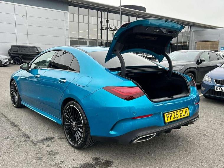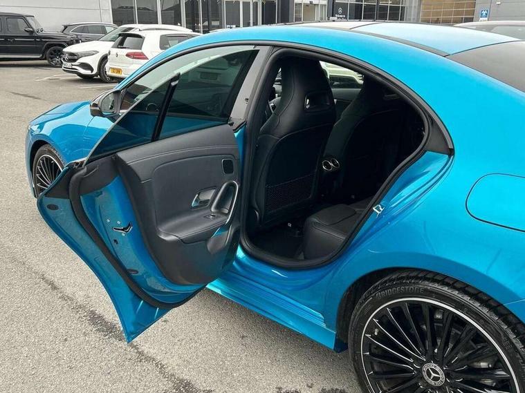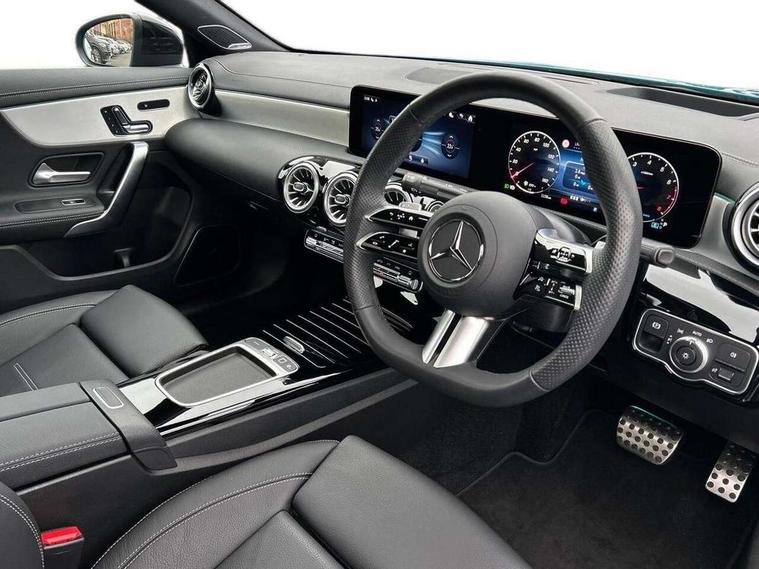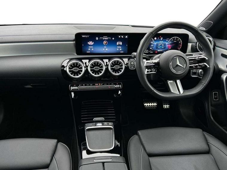 10.25 inch Instrument display with digital cockpit, 10.25 inch touchscreen central media display, Active lane keeping assist, Attention assist - Monitors steering behaviour and long journey fatigue, Bluetooth connection, Car wash mode, Cruise control with limiter, Direct steer system, DYNAMIC SELECT with a choice of driving modes (ECO, Comfort, Sport and Individual), ECO start/stop function, Fingerprint sensor, Fluid level warning indicator for fuel, oil, coolant and washer fluid, Hard-disk navigation, Head up Display, Hey Mercedes Voice activation, Lamp failure indicator, Mercedes me connect including emergency call system, accident recovery, breakdown and maintenance management, Mercedes me remote services, Outside temperature gauge, Owners manual in English, Pre-installation of private car share, Radio aerial integrated into front and rear windshields, Service indicator (ASSYST), Smartphone integration with Apple CarPlay and Android auto, Traffic sign assist, Trip computer in multifunction display with current consumption indicator, Wireless charging in the front centre console, Comfort suspension with ride height lowering, Rear axle multi-link, Burmester lettering on the speakers, Burmester surround sound system (710W) with dolby atmos, speakers - 1 central, 1 woofer, 1 tweeter, 1 subwoofer with 60W, 2 in C pillar, DAB digital radio tuner, MBUX multimedia system, Pre installation for Mercedes Benz Link, Adaptive brake lights, AMG body styling with AMG front apron and rear apron and visible exhaust tailpipe in chrome trim elements, Body colour door handles, Electric panoramic sunroof with automatic tilt and convenience closing fuinctions, rain sensor auto closing and electronic roller sunblind, Electric windows, Electrically adjustable and heated door mirrors with integrated LED indicators, Exhaust system with 2 Visible tailpipe trim elements and rear apron with trim in chrome, Hand free access, Headlamp assist automatic headlamp activation, Heated glass rear windscreen + timer control, High level LED third brake light, Integrated LED daytime running lights, Interior mirror with black reading lamps and frameless, LED tail lamp, Multibeam LED headlamps with adaptive highbeam assist plus, Privacy glass with dark tinting on rear side windows and rear window, Radiator grille with Mercedes-Benz pattern in chrome and central Mercedes star, single louvre in high-gloss black with chrome inserts, Rain sensing windscreen wipers with two sensitivity settings, Rear boot, Rear fog lamp, Rear side wing doors, Variable front intermittent wipers, 3 seat bench in 2nd row, 3 twin spoke flattened multifunction steering wheel in nappa leather - horizontal twin spoke in high gloss black, vertical twin spoke in silver chrome, 40:20:40 split folding rear seat backrests, Air conditioning - Two zone thermotronic luxury automatic climate control with display, Air vents with surround in silver chrome, Automatic child seat recognition sensor, Black roof lining, Brushed stainless steel sports pedals with rubber studs, Electrically adjustable front memory seats including 4 way lumbar support, Floor mats with stitched AMG lettering, Fluorescent jacket, Front centre armrest with stowage, Galvanished gear shift paddles in silver chrome, Interior lighting - 64 colour Ambient lighting, Luggage net on driver/front passenger seat backrest, Manually height and reach adjustable steering column, Rear armrest with two integral cup holders for drinks, Rear head restraints, Single front passenger seat, Sport seats with fixed head restraints, Stowage compartment in centre console with retractable cover, Sunvisors with illuminated vanity mirrors, Twin front cupholders, Two outer rear seat isofix and top tether child seat fixing points, Keyless go comfort pack - CLA, Light and sight pack - CLA, Mirror pack - CLA, Night package - CLA, Parking pack with 360 degree camera - CLA, Seat comfort pack - CLA, USB package plus - CLA, Winter pack - CLA, Active bonnet pedestrain safety measure which detects an impact and raises bonnet by 65mm, Adaptive brake assist with hold function and hill start assist, Anti lock braking system (ABS) with brake assist, Black seat belts, Bonnet with power domes, Brake calipers with Mercedes-Benz lettering, Brake pad wear warning indicator, Childproof locks manually operated for rear doors and electrically operated for rear power windows, Crash responsive emergency lighting, Driver and front passenger head and sidebags, Driver and front passenger windowbags, Drivers knee airbag, Dual stage driver and front passenger airbags, Electric parking brake, Electronic stability programme with acceleration skid control, ESP curve dynamic assist, Exit warning, Front and rear seatbelt reminder, Front passenger seat occupancy sensor, Perforated front brake discs, Sports braking system, Three point rear seat belts, Tyre pressure monitoring system, Warning triangle and first aid kit, Alarm system with immobiliser and interior protection -Thatcham category 1, Guard 360 deg vehicle protection - tow away protection with visual, acoustic warning, interior monitoring, preinstallation for parking damage, Remote central locking and crash sensor with emergency opening function, Light aluminium with longitudinal grain interior trim, 19" AMG multi-spoke black painted light alloy wheels with high sheen rim flange, Summer tyres, Tirefit tyre sealant kit,