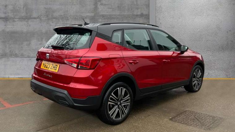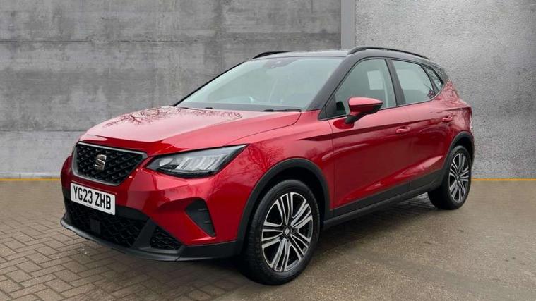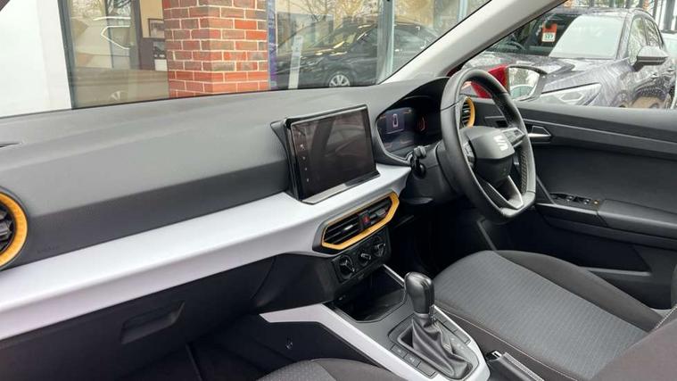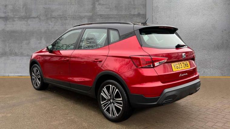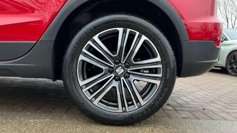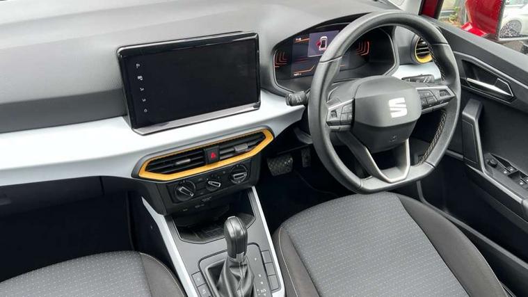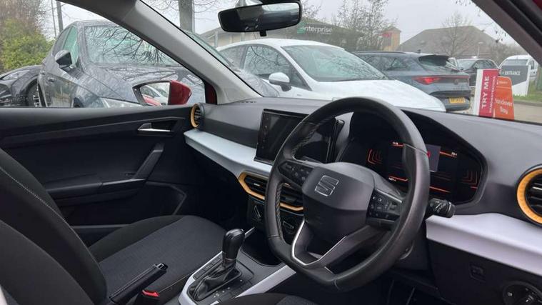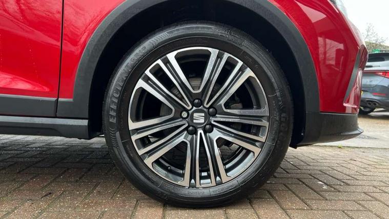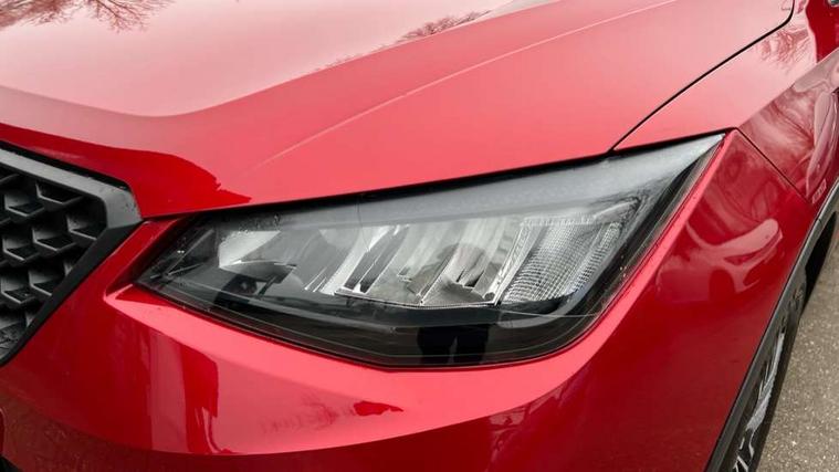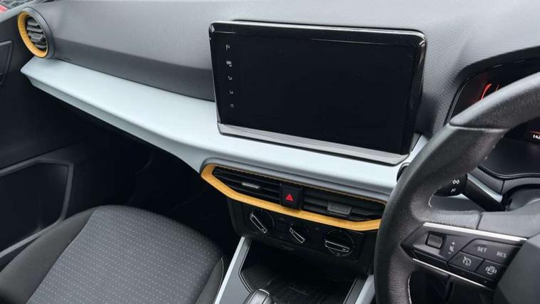'Lights On' Reminder warning buzzer, 8" Digital cockpit, Cruise control and speed limiter, Digital clock, E-call, Electric speed sensitive power steering, Full Link Smartphone Integration with Mirror Link, Apple Car Play, Google Android Auto with USB Type C cable for Apple and Android compatibility, Lane keeping system, Low fuel warning light, Outside temperature display, Rear parking sensor, RPM counter, Seat connect with safety, service, remote and online, Trip computer, Wireless phone charger, 9.2" colour touchscreen with navigation system, voice control and USB port (type c), Bluetooth interface for hands free and audio streaming, DAB digital radio and AM/FM radio, Steering wheel mounted audio controls, Anti theft roof antenna, Automatic activation of hazard warning lights, Black roof rails and window surrounds, Body coloured bumpers, Body coloured door handle inserts, Body coloured door mirrors, Dimming rear view mirror, ECO LED automatic headlights and LED daytime running lights, Electric adjustable door mirrors, Electric front/rear windows, Hidden exhaust pipe, Licence plate lights, Protective side mouldings, Rain sensing wipers, Rear fog lights, Rear side wing doors, Rear spoiler, Rear window wash/wipe, Third brake light, Visible VIN plate, Windshield wiper with intermittent control and potentiometer, 2 cupholders, 3 seat bench in 2nd row, 60/40 split folding rear seat, Air conditioning, Cloth upholstery, Double boot floor, Driver sunvisor with covered mirror + card holder, Dust/pollen filter, Front courtesy light with front reading lights, Gear shift indicator, Grey interior roof, Height adjustable front seats, Height/reach adjustable steering column, Illuminated boot, Instrument lighting with brightness control, ISOFIX points in outer rear seats with top tether anchorage points, Leather steering wheel/gear knob/handbrake, Passenger sunvisor with vanity mirror, Single front passenger seat, Two front and three rear height adjustable headrests, Interior chrome pack - Arona, 3 point seatbelts on all rear seats, ABS, Active front headrests, Child locks on rear doors, Driver and front passenger airbags with front passenger airbag de activation, front side and curtain airbags, Electronic stability control, Emergency Brake Assist (EBA) and front assist, Front and rear seatbelt reminder, Hill hold control, Multi-Collision braking, Tiredness recognition system, Traction control, Tyre pressure monitoring system, Electronic engine immobiliser, Locking wheel bolts, Remote central locking + deadlocks, Titan black dashboard, 17" Dynamic machined alloy wheels,
