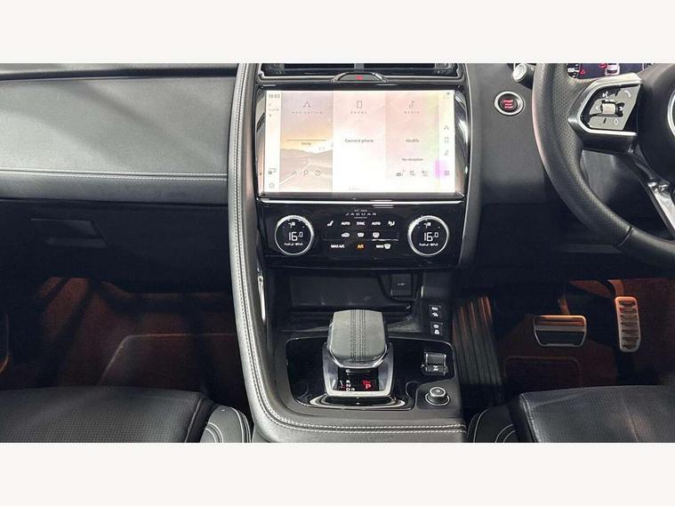 11.4" touchscreen with central ICP, 12.3" full digital instrument panel, Adaptive cruise control, Android Auto, Apple car play, Blind spot assist, Driver condition monitor, Eco driving style assistant, Electric power assisted steering, Emergency services call system, Front and rear parking aid, InControl remote, Jaguar drive control with adaptive surface response, Jaguar Toggle sport shift selector, Lane keep assist, Outside temperature gauge, Pivi pro connected infotainment system with smart settings and navigation pro, Push button start, Rear collision monitor, Rear traffic monitor, Speed proportional steering, Traffic sign recognition with adaptive speed limiter, Trip computer, Voice control system, 7 kW onboard charger, Configurable dynamics, Electric rear axle drive, Home charging cable Mode 2, Large fuel tank, Passive suspension, Public charging cable Mode 3, AM/FM DVD MP3 radio, Bluetooth connectivity including audio streaming, DAB digital audio broadcast, Dynamic volume control, 3 flash lane change indicators, Approach Illumination, Auto high beam assist, Automatic headlights, Body colour door handles, Body colour door mirrors, Body colour front and rear lower bumper main moulding and lower side cladding, Body colour upper spoiler, Body coloured side sills, Centre high-mounted stop light, Dark satin grille tips, Electric front/rear windows with one touch/auto up/down, Electric heated/power fold memory door mirrors with approach lights and auto dimming driver side, Embossed leaper for grained and windsor leather, Heated washer jets, Heated windscreen, Jaguar script and leaper, LED tail lights, LED third brake light, Narvik black antenna pod and side pillar finisher, R Dynamic badge, R Dynamic body colour bumpers, Rain sensor windscreen wipers, Rear fog lights, Rear side wing doors, Rear wash wiper, Satin black grained front outer grille, low grill mesh and low bumper valence, side fender vent mesh and finisher, rear tow eye cover and grille mesh, Twin exhaust tailpipe, Variable front intermittent wipers, 3 rear head restraints, 3 seat bench in 2nd row, 40:20:40 rear seat fold, Bright metal pedals, Carpet mats, Centre console with armrest, Enhanced ambient lighting, Hooks loadspace, ISOFIX on outer rear seats, Loadspace cover, Loadspace light, Loadspace storage net, Luggage tie-downs in loadspace, Manual height/reach adjust steering wheel, Multifunction steering wheel, Overhead lighting console, Passive front head restraints, Power sockets, R-Dynamic branded leather steering wheel, Rear air vents, Rear bench seats, Satin chrome gearshift paddles, Single front passenger seat, Sunvisors with illuminated vanity mirrors, Twin front cupholders, Two zone climate control, 3x3 point rear seatbelts, ABS, All surface progress control (ASPC), Child locks on rear doors, Customer configurable autolock, DSC - Dynamic Stability Control, Electronic brake force distribution, Electronic parking brake, Emergency brake assist, Emergency braking, Front airbags with passenger seat occupant detector, Front and rear curtain airbags, Front and rear seatbelt reminder, Front passenger airbag deactivation, Front seatbelt pretensioners, Front side airbags, Height adjustable front seatbelts, Hill start assist, Low friction launch, Power child locks, Torque vectoring brake, Tyre pressure monitoring system, Intrusion sensor and alarm, Locking wheel nuts, Remote central locking,