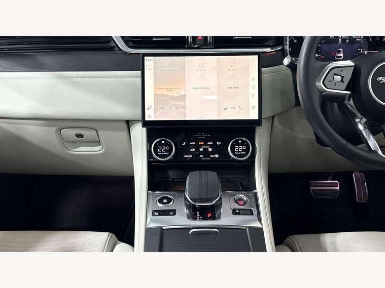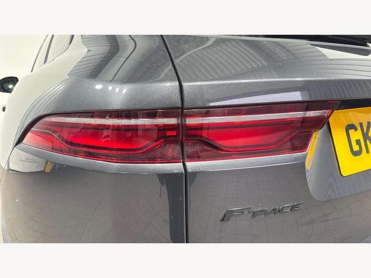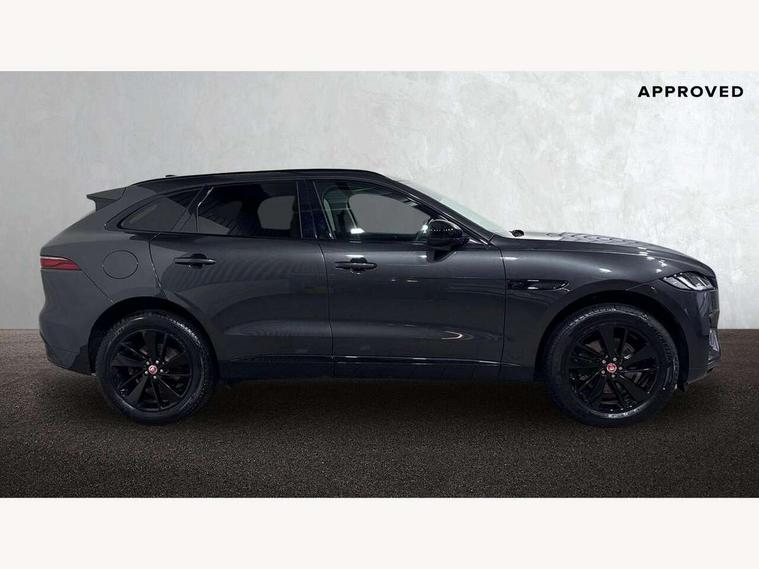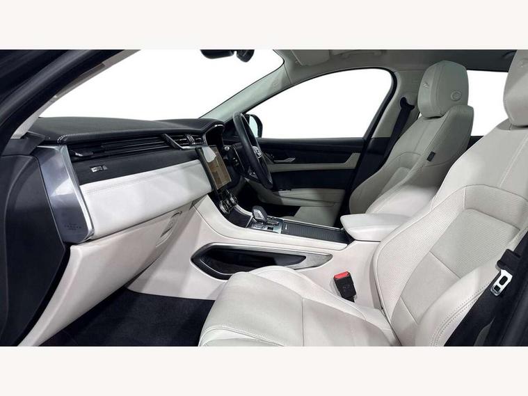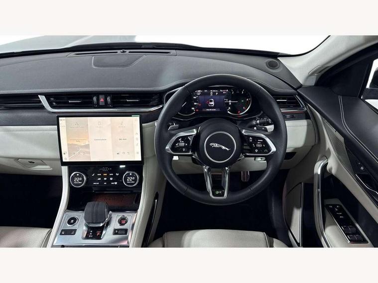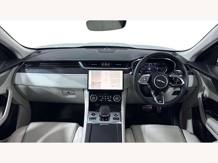 11.4" touchscreen, Android Auto, Apple car play, Bluetooth connectivity, Driver alert system, Driver condition monitor, eCall emergency call system, Eco driving style assistant, Electric power assisted steering, InControl remote, Jaguar Toggle shift selector, Lane departure warning system, Lane keep assist, Outside temperature gauge, Personalisation profile management, Pivi pro connected navigation system with app interface and media storage, Pro services and wifi hotspot, Push button starter, Service interval indicator, Speed proportional steering, Start up sequence with movement in dials and lighting, Traffic sign recognition with adaptive speed limiter, Trip computer, Voice control system, 8 speed automatic transmission, All terrain progress control, All Wheel Drive (AWD), Open differential with torque vectoring by braking, AM/FM radio, Bluetooth streaming, DAB Radio (Digital Audio Broadcasting), Dynamic volume control, InControl apps, InControl protect, iPod integration, 3 flash lane change indicators, Animated directional indicators, Approach Illumination, Auto dimming rear view mirror, Automatic headlights, Electric windows with one touch open/close and anti trap, F-Pace and R Dynamic badge, Gloss black door mirrors, Gloss black roof rails, Green tinted glass, Heated front windscreen + heated washer jets, Heated rear window with timer, Jaguar script and leaper, LED High level third brake light, LED tail lights, Non acoustic front windscreen, Privacy glass, R Dynamic badge on side door, Rain sensor windscreen wipers, Rear fog lights, Rear metal tread plates, Rear side wing doors, Rear wiper, Trailer stability assist, Variable front intermittent wipers, 12V power point front, 3 rear headrests, 3 seat bench in 2nd row, Air distribution speed, Bright metal foot pedals, Centre armrest console, Centre console with side storage, Deletion loadspace storage rails, Door sill tread plates, Fold flat front seats, Front centre armrest with storage compartment, Front door storage space, Glovebox finisher with jaguar script, Heated steering wheel, Hooks in loadspace, Illuminated glovebox, Interior front door handles with separate locking switches, ISOFIX on outer rear seats, Jaguar sense, Luggage tie downs in loadspace, Mist sensing, Multifunction steering wheel, Overhead lighting console, Overhead stowage for sunglasses, Passive front head restraints, Premium cabin lighting, Premium carpet mats, R-Dynamic branded leather steering wheel, Rear air vents, Rear armrest with twin cupholders, Rear centre headrest, Rear door storage space, Reversible boot floor, Satin chrome gearshift paddles, Shopping bag hook, Single front passenger seat, Sunvisors with illuminated vanity mirrors, Twin front cupholders with cover, Black Exterior pack - F Pace R-Dynamic/Sport, Exterior pack - F Pace R-Dynamic, Online Pack with data plan - F-Pace, 355mm front brakes and 325mm rear brakes, 3x3 point rear seatbelts, ABS, All surface progress control (ASPC), Brake pad warning light, DSC - Dynamic Stability Control, Electric parking brake (EPB), Emergency brake assist, Front airbags with passenger seat occupant detector, Front and rear seatbelt reminder, Front side airbags, Full length side window curtain airbag, Hill launch assist, Power operated child locks, Torque vectoring brake, Traction control, Tyre pressure monitoring system, Immobiliser, Keyless start, Locking wheel nuts, Perimeter alarm, Remote central locking, Valet mode,