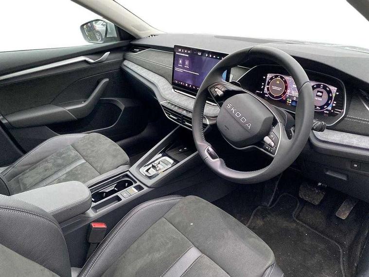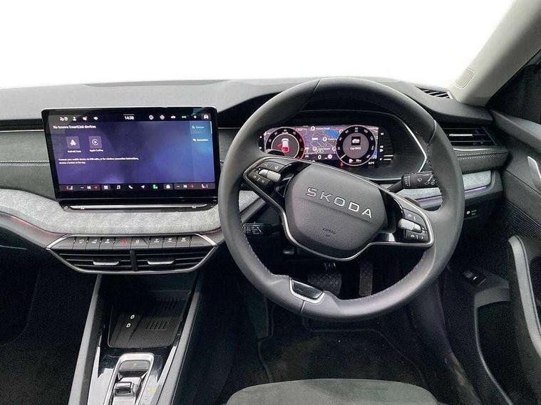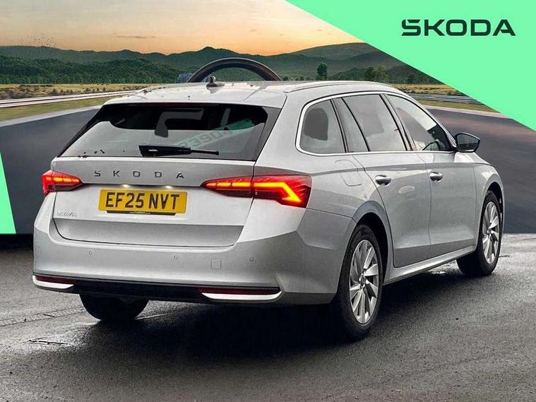 1x USB Typc C port in rear view mirror, 4x USB Type C ports - 2x in front centre console and 2x in rear (45W), Drive mode selection, Driver fatigue sensor, eCall emergency system, Electro-mechanical power steering, Front assist system, Traffic jam assist, Traffic sign recognition, Turn Assist, Virtual Cockpit - 10.25" digital display, Voice control system, Wireless charging (15W) with cooling function, Wireless SmartLink for Apple CarPlay and Android Auto, 13" touchscreen display with navigation, DAB Digital radio, Aero front windscreen wipers with intermittent function, Auto dimming rear view mirror, Body colour bumpers, Body colour door mirrors and handles, Chrome grille surround, Chrome roof rails, Chrome strip in lower front bumper, Chrome window surrounds, Electric front and rear windows, Heated rear windscreen, High level third brake light, Ice scraper in fuel cap, LED daytime running lights, LED Headlights, Logo projection in front doors, Rain and light sensors, Rear fog light on one side, Rear privacy glass, Rear side wing doors, Rear spoiler, Rear window wiper, 12 volt socket in boot, 3 rear headrests, 3 seat bench in 2nd row, 4 foldable roof handles, Electric auxiliary air heater, Front head restraints, Heated front seats, Illuminated glovebox, Interior door handles in dark chrome, Jumbo Box storage, Luggage compartment lighting x2 lights, Mechanical rear seat release from boot, Single front passenger seat, Steering wheel in black leather with black stitching, Storage compartments in left and right of boot, Sun visors with mirrors, Sunglasses storage, Ticket holder, Umbrella in door panel, Unsplit rear bench seat, split folding backrest with centre armrest with cupholder, Comfort package - Octavia Estate, Simply clever package premium with Storage compartment under passenger seat - Octavia, 3x3 point rear seat belts, Alarm with interior monitoring, tilt sensor and back up horn, Curtain airbags and front side airbags, Driver and front passenger airbags, Drivers knee airbag, Electronic parking brake, ESC including ABS, EBV, MSR, ASR, EDS, HBA, DSR, Front central airbag, Hill hold assist, ISOFIX on front passenger seat and outer rear seats, Passenger airbag deactivate switch, Three point seat belts in front and rear, Two tone horn, Tyre pressure monitor, Visual and acoustic seat belt reminder, Warning reflectors in front door, Anti-theft wheel bolts, Keyless start/stop, Remote central locking, Chrome air vent surrounds,