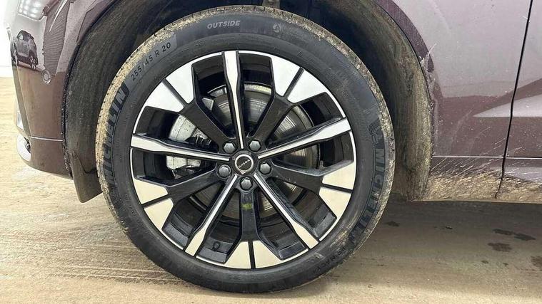 11.2" centre console touch screen, 12.3" Progressive Driver Display, 360 degree surround view parking camera with side proximity sensors, Adaptive cruise control, Adjustable steering wheel force, Android auto (Wired), Apple carplay (wired), Bluetooth handsfree system, Driver alert control with lane keeping aid, Emergency services call system, Front and rear park assist, Google Automotive Services, Intelligent speed assistance, Oncoming Lane Mitigation, PAS, Power operated tailgate with handsfree opening and closing, Service interval indicator, Speed limiter, Speed sensitive steering, Trip computer, Volvo cars services with app, Volvo on call with App, Wireless/Inductive Mobile Phone Charging, 8 speed automatic transmission with start/stop + manual change functions, DAB Digital radio, Premium Sound by Harman Kardon, dirac unison, dolby pro logic II surround sound, 13 speakers/600W output and fresh air subwoofer, Steering wheel remote infotainment controls, Adaptive brake lights with high level LED brake lights, Auto dimming interior + exterior mirrors, Automatic headlight levelling system, Automatic LED Headlights + Active high beam incorporating daytime running lights, Electric adjustable/heated/auto power folding door mirrors, Electric front+rear windows, Front aluminium tread plates, Heated front windscreen, High gloss black door mirrors and window surround, High gloss black front and rear bumper decoratives, High gloss black mesh front grille with high gloss black surround, Home safe and approach lighting, Integrated roof rails in high gloss black, Puddle lights, Rain sensor with automatic windscreen wiper activation, Rear side wing doors, Rear wiper, Roof antenna, Roof spoiler, Tinted windscreen, Visible VIN plate, 12V socket in front tunnel console and luggage compartment, 3 seat bench in 2nd row, 3 Spoke tailored steering wheel with chrome trim, 4 Zone electronic climate control, A-pillar parking ticket holder, Air purifier particulate matter (PM) 2.5 filter, B Pillar ventilation, Bright metal luggage scuff plate, Centre console cupholders and storage, Charcoal floor mats, Front and rear courtesy lights, Front and rear door pocket illumination, Front cupholder illumination, Front footwell illumination, Front reading lights, Front seat cushion extensions, Glovebox compartment with illumination, Head restraints for all seats, Heated front seats, Heated steering wheel, Height/reach adjustable steering column, Illuminated luggage compartment, Illuminated vanity mirrors + ticket holder, Inner door release handle illumination, ISOFIX attachment on outer rear seats, Load cover, Load protection net, Multi directional lumbar support, Power driver seat with memory + exterior mirrors memory, Power height adjustable passenger seat, Power passenger seat with memory, Quilted nordico leather upholstery, Rear armrest with cupholder, Rear footwell and front and rear side step illumination, Rear reading lights, Rear seat concealed storage, Single front passenger seat, Tailgate illumination and ambient door lighting, Underfloor stowage compartment, Versatile split folding rear seat - 60/40, Driver assist pack without Adaptive cruise control - XC60, 5 three point seatbelts, City safety with steering support with Pedestrian + cyclist + front collision warning with full auto brake and rear auto brake, Drivers knee airbag, Dual stage driver/passenger airbags, Electronic parking brake with auto hold, First aid kit, Front seats SIPS airbags, Hill descent control - Off-road drive mode, Hill start assist, IC (Inflatable Curtains) - Full Length, Passenger airbag cut-off device, Power child locks on rear doors, Road sign information display, Run off Road Mitigation, Run off Road Protection, Seatbelt reminder and pretensioners, SIPS (Side Impact Protection System), Slippery road and hazard light alert, Stability and Traction Control with Spin control, Engine Drag Control and Corner Traction Control, Tyre pressure monitoring system, Vehicle deceleration control with Anti-lock Brake System, Electronic Brake Distribution and Emergency Brake Assist, Warning triangle, WHIPS whiplash protection system - front, Anti-theft alarm including immobiliser/volume sensor + level sensor, Key integrated remote control central locking + fuel flap with deadlocking system and auto open/close power windows, Keyless Drive (includes Keyless Entry and Keyless Start), Locking wheel nuts, Private locking for tailgate, Summer tyres,