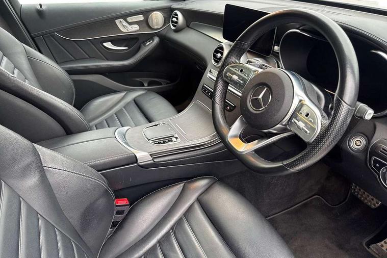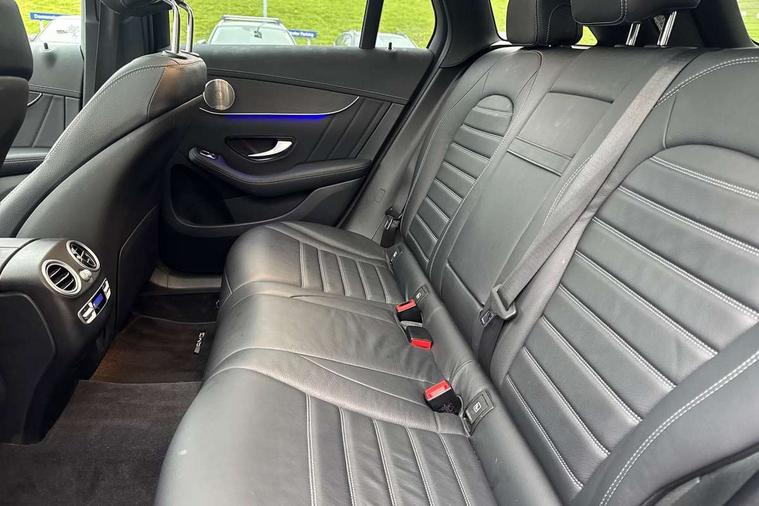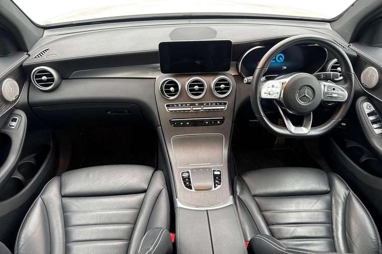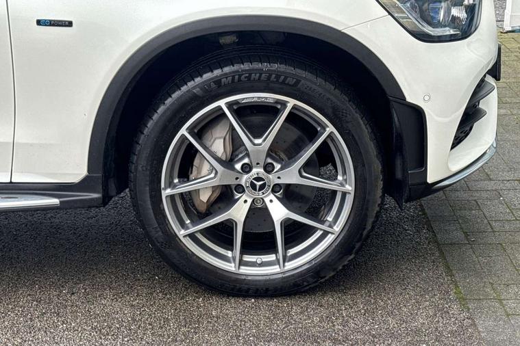 360 degree view camera, Active parking assist with parktronic system, Attention assist, Bluetooth interface for hands free telephone, Collision prevention assist plus, DYNAMIC SELECT with a choice of driving modes (ECO, Comfort, Sport, Sport+ and Individual), Easy pack automatic powered tailgate, ECO start/stop function, Hard disk navigation, Hey Mercedes Voice activation, Instrument cluster with12.3-inch digital instrument cluster display. High resolution instrument cluster screen with choice of three display styles, MBUX Interior assistant, Mercedes connect me with remote online services, Multi function trip computer, Outside temperature display, rear seatbelt status indicator, Remote and charging services plus, Remote boot release, Service indicator (ASSYST), Smartphone integration with Apple CarPlay and Android auto, Traffic sign assist, 1 x 3 pin domestic 8m straight charging cable, 1 x type 2 and 3 phase 4m straight wallbox cable, 4MATIC permanent four wheel drive, 50 litre fuel tank, 7.4 kW onboard charger, 9G TRONIC plus automatic transmission with steering column gear selector, DIRECT SELECT steering wheel gearshift paddles, Petrol Particulate Filter (PPF), Sports suspension tuned for improved handling and driving dynamics, 5 speakers, Frontbass loudspeakers, MBUX multimedia system with DAB digital radio and touchpad, Media display 10.25-inch touchscreen display, Pre installation for Mercedes Benz Link, USB ports x 2 in centre console, Adaptive brake lights, Aluminium roof rails, AMG bodystyling - AMG front apron with sporty air intakes and chrome trim element, AMG diffuser-look rear apron with insert in black, Body colour door mirrors, Body coloured bumpers, Electric panoramic glass sunroof, Electric windows one touch open/close, Electrically adjustable and heated door mirrors, Front, side and rear exterior chrome trim, Headlamp assist automatic headlamp activation, LED high performance headlamps with integrated LED daytime running lights, LED tail lamp, Motor way mode function and locator lighting, Privacy glass with dark glass from B pillar backwards, Radiator diamond grille, Rain sensor windscreen wipers, Range adjustable headlights, Rear wiper, Running boards, Tinted glass all round with single layer safety glass, Two chrome plated tailpipe trim elements, 2 way rear head restraints, 3-spoke multifunction sport AMG steering wheel in black nappa leather with flattened bottom section, chrome insert and perforated leather in grip area, 40:20:40 split folding rear seats, Ambient lighting, AMG floor mats with edging and embroidered AMG lettering, AMG sports seats, Artico man-made leather upper dashboard with contrast topstitching, Automatic child seat recognition sensor, Black roof lining, Dividing net - rear, Double cup holder in centre console, Easy-pack removable load compartment cover, Front armrest with storage box, Front door sills with Mercedes Benz lettering, Front head restraints, Heated front seats, Illuminated and lockable glove compartment, Leather upholstery, Pre-entry climate control, Rear top tether child seat ISOFIX attachment, Sports pedals with stainless steel surfaces and rubber studs, Steering wheel with touch control buttons, THERMOTRONIC 3 zone automatic climate control, Interior lighting pack - GLC, Memory pack - GLC, Mirror pack - GLC, Storage pack - GLC, 3 rear 3 point seatbelts, Active bonnet, Adaptive brake system with HOLD function and brake drying in the wet, ASR, Black seat belts, Brake calipers with Mercedes-Benz lettering + perforated brake discs, Child proof door locks, Dual-stage airbags - driver and front passenger, driver knee bag and window bags for driver, front passenger and rear passengers, Electronic parking brake, Electronic stability programme (ESP) with curve dynamic assist and cross wind assist, Front and rear seatbelt reminder, Front passenger seat occupancy sensor, Hill hold function, Radar-based recuperation, Tyre pressure monitoring system, Warning triangle and first aid kit, Alarm system/interior protection/immobiliser, Automatic door locking, Keyless Go entry and starting function, Remote central locking, Anthracite open pore oak wood trim, 20" AMG 5 twin spoke alloy wheels painted in titanium grey with high sheen finish, Run flat tyres, Summer tyres,