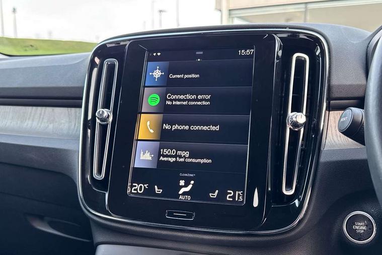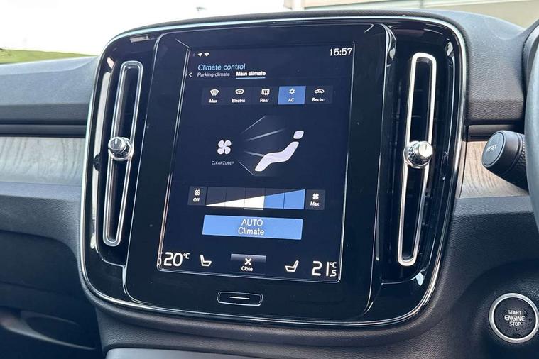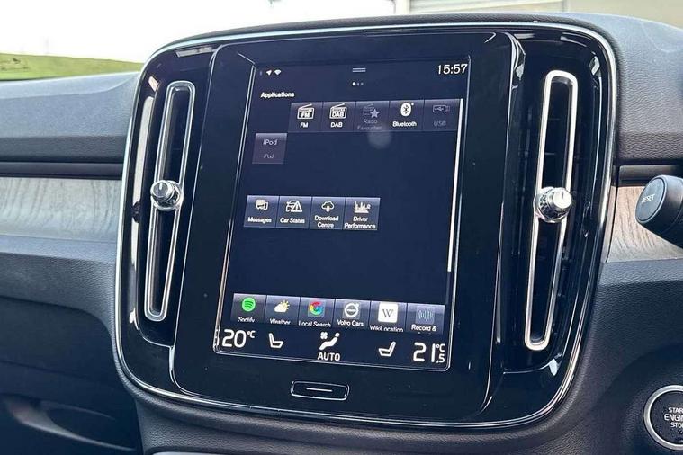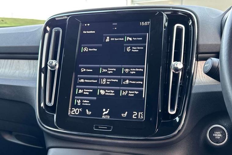12.3" Active TFT crystal driver's instrument display, 9" centre console portrait touch screen, Adjustable steering wheel force, Bluetooth hands free telephone kit, Drive mode selector, Lane keep assist with driver alert control, Oncoming Lane Mitigation, Sensus navigation with European mapping and traffic information, Speed limiter, Speed sensitive steering, Voice activated control for key functions, Volvo on call, Dynamic chassis, DAB Digital radio, Steering wheel mounted remote controls, Active bending headlights, Adaptive brake lights with high level LED brake lights, Auto dimming interior mirror, Automatic headlamp levelling, Chrome window surround, Colour coordinated auto folding and heated power door mirrors, Dual exhaust pipes, Front aluminium tread plates, Front and rear electric windows, High gloss black front grille with chrome inserts, High gloss black sensus surround deco, High Gloss silver front and rear skid plate, Home safe and approach lighting, LED front fog lights with static cornering light function, LED Headlights + Active high beam incorporating daytime running lights, Rain sensor with automatic windscreen wiper activation, Rear side wing doors, Rear wiper, Roof antenna, Roof spoiler, Silver roof rails, Visible VIN plate, 12V socket in front tunnel console and cargo compartment, 2 zone electronic climate control and rear air vent, 3 seat bench in 2nd row, 3 spoke leather steering wheel with chrome trim, 60/40 split folding rear seat, Ambient front door and instrumental panel lighting, Bright metal luggage threshold, Centre console cupholders and storage, Driver's side lower dashboard credit card storage compartment, Front door pocket and front cupholder illumination, Front footwell illumination, Front headrests, Front reading light and theatre lighting, Front tunnel net pocket and integrated waste bin, Glovebox bag hook, Height/reach adjustable steering column, High gloss centre tunnel deco, Illuminated glovebox, Illuminated luggage compartment, Illuminated tailgate, Illuminated vanity mirrors, Isofix attachments on rear seats, Key integrated remote, Leather faced upholstery, Load protection net, Luxury floor mats, Multi directional lumbar support, Multicolour theatre lights, Orrefors Crystal Gear Lever Knob, Rear armrest / integral cup holders / storage tray, Rear coat hook, Rear reading and courtesy lights, Single front passenger seat, Underfloor cargo storage, Power seat pack - XC40, 3x3 point rear seatbelts, City safety includes pedestrian, cyclist and large animal detection and front collision warning with full auto brake, Drivers knee airbag, Dual stage driver/passenger airbags, Electronic parking brake with auto hold, First aid kit, Front and outer rear seatbelt reminder and pretensioners, Front seats SIPS airbags, Hill descent control, Hill start assist, Inflatable curtain, Passenger airbag cut-off device, Road sign information display, Run off Road Mitigation, Run off Road Protection, SIPS (Side Impact Protection System), Slippery road and hazard light alert, Stability and Traction Control with Spin control, Engine Drag Control and Corner Traction Control, Tyre pressure monitoring system, Vehicle deceleration control with Anti-lock Brake System, Electronic Brake Distribution and Emergency Brake Assist, Warning triangle, WHIPS whiplash protection system - front, Anti-theft alarm including immobiliser/volume sensor + level sensor, Care key with user defined top speed, Key integrated remote control central locking + fuel flap with deadlocking system and auto open/close power windows, Locking wheel nuts, Private locking for tailgate, Driftwood inlays,