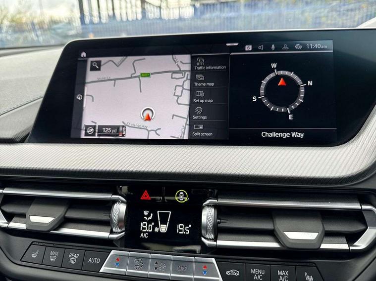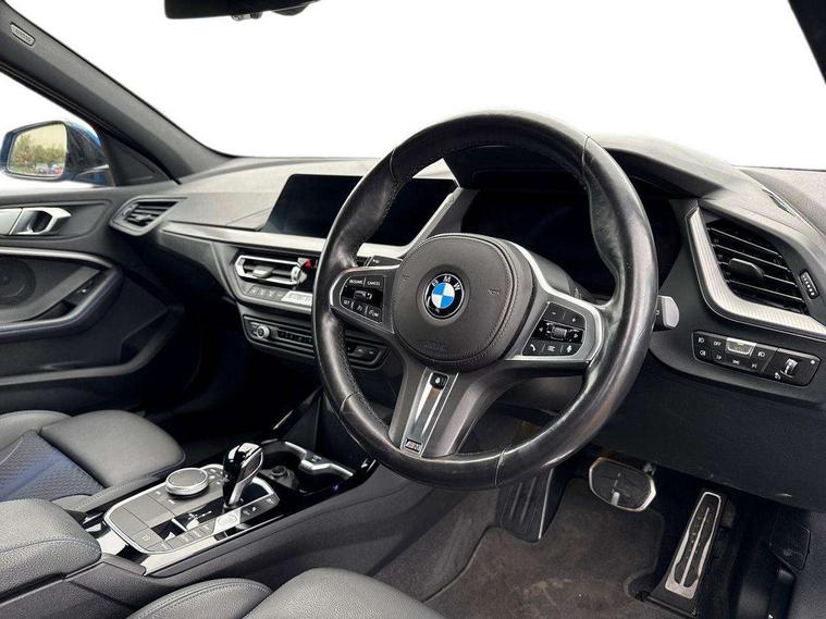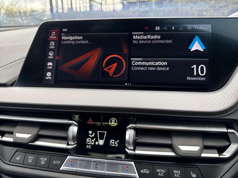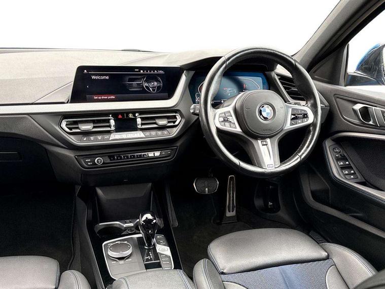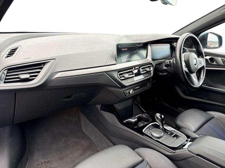 Active guard plus, Attentiveness assist, BMW ConnectedDrive online services, BMW Teleservices, Check Control warning system for monitoring of lights and door/luggage compartment open warning, Cruise control with brake assist, Eco pro mode, Front axle single joint with specific axle kinematics to minimise drive influences on steering + provide increased rigidity agile driving behaviour, Integrated owners handbook, Lane departure warning system, Oil sensor for level and grade, On board computer, Optimum shift indicator, Personal Profile, Pull away assistant, Rigidly mounted rear subframe - Multi link construction with separate spring / damper configuration and excellent driving characteristics, Speed limit Info including no-overtaking indicator, Speed limiter, Aluminium lightweight construction, Anti roll bar front and rear, Balancer shaft, Double VANOS twin scroll turbocharging system, Drive Performance Control, Electronic differential lock, High precision injection, M sport suspension, Petrol Particulate Filter, Twin tube gas filled shock absorbers with degressive characteristic curve, VALVETRONIC engine management, DAB Digital radio, Auto dimming rear view mirror, Automatic headlight beam throw control, Automatic windscreen wipers and automatic headlight, Body colour door handles, Body colour mirror caps, Body colour roof trims, Chrome 'M' logo side designation, Chrome exhaust twin tailpipes round 90mm in left, Chrome kidney grille frame with Satin Aluminium struts, Direction indicator side lights in exterior mirrors, Fading support, Folding side mirrors with auto dimming/folding wing mirrors with auto dimming, Follow me home headlights, Front and rear bumper system with replaceable deformation elements, Front and rear electric windows with open and close fingertip control, anti trap facility and comfort closing, Front door sill finishers in black plastic with M designation in metallic look, Green tinted heat protection glazing, Heated, electrically adjustable exterior mirror aspheric on driver side, convex on passenger side, High gloss shadowline window frame, Recess cover mirror frames and B/C pillar embelisher trim, High level third brake light, Integrated front windscreen with washer jets, LED daytime running lights, LED eyebrow turn indicators, LED front fog lights, LED Headlights, Lightweight engineering, Matt black air guide grilles, Matt black wheel arch trim, Model designation on electric bootlid, Nearside reverse light in rear light cluster, Preparation for high beam assistant, Rear fog lights, Rear side wing doors, Rear window wiper, Shark fin antenna, Trailer stabilisation logic, Visible VIN plate, Welcome lighting, 12V power socket in front centre console with blanking plug, 3 rear seat head restraints, 3 seat bench in 2nd row, 3 spoke sports leather steering wheel with black leather and stitching, pearl chrome decorative finish, specific M Badge, Anthracite headlining, Black boot net with lashing eyes, Cargo function on 2nd seat row, Child seat ISOFIX attachment for two outer rear seats and front passenger seat with anchorage points, Conditioned based service, Driver and front passenger seat heating, Folding rear clothes hook, Four grab handles integrated in roof lining, Front and rear door pockets with bottle holders, Front and rear side armrest integrated into door trim, Front armrest, Front sports seats, Glove compartment, Height adjustable front head restraints, Luggage compartment for bag hooks on left and right, foldable luggage compartment liner and four lashing eyelets, Manual adjust steering wheel, Multi-function controls for steering wheel, Single front passenger seat, Storage compartment in centre console, Sun visors with vanity mirrors and insert tab, Two front centre console cupholders, Two zone automatic air conditioning, Velour floor mats, Additional interior lighting pack - 1 Series, BMW live cockpit professional pack- 1 Series, Connected pack professional - 1 Series, Interior lights pack - 1 Series, M Sport exterior styling aerodynamics pack - 1 Series, 2 tone horn, 3 point seatbelts on all seats, front pyrotechnic belt tensioners, stopper and belt force limiters, rear coded belt buckles, Airbags - Front driver/passenger, front and rear curtain head protection, front side, manual deactivation of front passenger airbag, Anti lock braking system (ABS) with brake assist, BMW emergency call, Brake drying, Braking readiness, Child proof locking system in rear door, City braking function, Comfort modes, Cornering brake control, Crash sensor activating central locking release, hazard warning lights, fuel cut off, interior lighting + activation of safety battery terminal clamp, Driver and front passenger seat belt security check, Dynamic stability control + (DSC+), Dynamic Traction Control - DTC, Electrically operated hand brake including automatic hold function, Front and rear disc brakes, Seatbelt warning, Side impact protection, Tyre pressure monitoring system, Warning triangle and first aid kit, Central locking switch for all doors, fuel filler cap and luggage compartment, Deadlocking function system to all doors, Drive away locking system on all doors and luggage compartment with de-activated in iDrive settings, Locking wheel bolts, Remote control with integrated key with High-gloss Black inlay and M designation and 1 button for open/ close lock, window, open luggage compartment, Start/stop button illuminated in centre console with keyless engine start and auto start stop deactivation button, Thatcham Cat.1 alarm and immobiliser, Wheel slip limitation close to the actuator (ARB), Contrast stitching on instrument panel, Electrically powered 12V compressor, Reduced rolling resistance tyres,