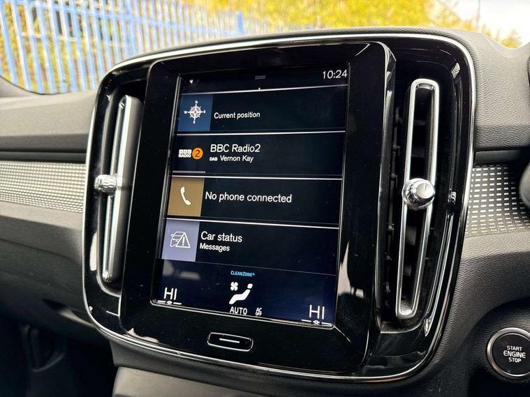 12.3" Active TFT crystal driver's instrument display, 9" Touch screen, Adjustable steering wheel force, Bluetooth hands free telephone kit, Drive mode selector, Lane keep assist with driver alert control, Oncoming Lane Mitigation, Sensus navigation system, Speed limiter, Speed sensitive steering, Voice control system, Volvo on call, DAB Digital radio, Steering wheel mounted remote controls, Adaptive brake lights, Auto dimming interior mirror, Automatic headlamp levelling, Black stone door mirrors, Black stone roof, Dark tinted glass for rear windows + rear screen + side luggage area window, Dual integrated exhaust pipes with high gloss black surround, Electrically adjustable and heated door mirrors, Embossed rear side roof pillar, Front and rear electric windows, Front tread plates, High gloss black front and rear skid plate, High gloss black lower front bumper, High gloss black mesh grille, High gloss black roof rails, High gloss black window trim, Home safe and approach lighting, LED front fog lights, LED Headlights + Active high beam incorporating daytime running lights, Rain sensor windscreen wipers, Rear wiper, Roof antenna, Roof spoiler, Visible VIN plate, 12V socket in front tunnel console, 2 zone electronic climate control with air quality system, 3 spoke leather steering wheel with chrome trim, 60/40 split folding rear seat, A-pillar parking ticket holder, Ambient lighting in door panels, Black headlining, Bright metal luggage threshold, Centre console cupholders, Centre console storage box, Contour sports seats with leather/nubuck upholstery, Cooled glovebox, Courtesy lights, Driver's lower storage shelf, Extended front seat cushions, Front and rear headrests, Front door pockets, Front footwell illumination, Front tunnel storage net, Front/rear reading lights, Glovebox bag hook, Glovebox illumination, Height adjustable drivers seat with lumbar support, Height/reach adjustable steering column, High gloss centre tunnel deco, Illuminated driver/passenger vanity mirrors, Illuminated front cupholder, Illuminated luggage compartment, Illuminated tailgate, Isofix attachments on outer rear seats, Multicolour theatre lights, Passenger seat adjustable for lumbar support, Perforated leather gearknob, Perforated Leather Key Integrated Remote, Perforated leather steering wheel, Pollen filter, Rear armrest / integral cup holders / storage tray, Sports pedals, Underfloor stowage compartment, ABS/EBD, City safety, Drivers knee airbag, DSTC-Dynamic Stability and Traction Control, Dual stage driver/passenger airbags, EBA, Electronic parking brake with auto hold, Fasten seatbelt reminder, First aid kit, Front seat side impact airbags, Hill descent control, Hill start assist, Inflatable curtain, Passenger airbag cut-off device, Road sign information display, Run off Road Mitigation, Run off Road Protection, Seatbelt pre-tensioners, Side impact protection, Tyre pressure monitoring system, Warning triangle, WHIPS whiplash protection system - front, Anti-theft alarm including immobiliser/volume sensor + level sensor, Fuel flap with deadlocking system, Key integrated remote control central locking, Locking wheel nuts, Private locking, Cutting edge aluminium inlay,