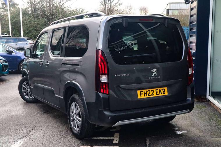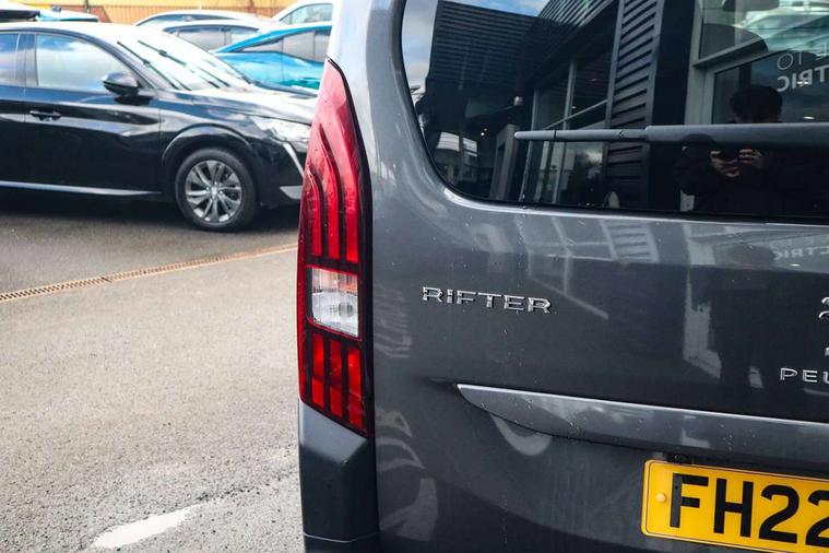 8" capacitive colour touch screen with mirror screen (Apple CarPlay and Android Auto), Analogic cluster, Bluetooth telephone facility, e-Call (emergency call), Multi function trip computer, PEUGEOT i-Cockpit with compact steering wheel, PEUGEOT i-Cockpit with head-up instrument panel, Rotary switch driving selector, Stop/start system, Voice control system, Voice recognition for radio and telephone, 6 speakers, DAB radio with buttons, MP3 connection, Steering wheel mounted controls, USB socket, USB socket at the back, Aluminium roof bars, Automatic hazard light activation upon heavy brake application, Black bumpers, Body colour door handles, Contrasting wheel arch trim, Dark tinted rear side windows + tailgate window, Electric front windows, Electric heated door mirrors, Electric rear windows, Front and rear scuff plates, Front fog lights, Front windscreen wiper with multispeed setting, Gloss black door mirrors, Halogen headlights, Headlights left on audible warning, LED daytime running lights, LED rear signature claw effect lights, Opening rear tailgate window, Power folding door mirrors, Radiator grille in 3D stamped effect and chrome surround, Rear windscreen wiper triggered automatically in reverse gear, Tailgate with heated rear windscreen and wiper blade, Two glazed sliding side doors, 12V socket, 2 independent and removable sliding 3 row seat, Air vents in 2nd row with fan strength command and USB socket, Door sill protectors, Driver and passenger dashboard mounted cup holders, Electric power steering with reach and rake adjustable steering column, Fixing rings x 4 in load area, Foldable passenger seat with under-seat storage and elbow rest, Front interior light with 2 reading spotlights and rear interior light with timer, Full width overhead storage shelf, Gear shift indicator, Height adjustable drivers seat with lumbar support, High console between front seats with storage compartment, Isofix child seat fittings x 3 in the second row, Leather steering wheel with integrated controls, Parcel shelf - retractable, Puma cloth upholstery, Tray tables at the back of the front seats, Under-seat storage and elbow rest for driver seat, Upper glove compartment, Visibility pack - Rifter, 3 X 2nd row and 2 x 3rd row 3 point seatbelts, ABS (Anti-lock Braking System) with EBD (Electronic Brakeforce Distribution) and EBA (Emergency Braking Assistance), Adaptive driver and front passenger airbags with passenger airbag deactivation function, Child locking functionality on rear doors, Driver/front passenger side airbags, Electronic parking brake, ESP (Electronic Stability Program) + Hill Start Assist, Front and rear curtain airbags, Front and rear disc brakes, Front and rear seats seatbelt unfastened on the move audible and visual alert, Front optimised safety headrests and 3 x rear retractable headrests with height adjustable, Front three point retractable seatbelts with force limiters, Tyre pressure sensor, Auto door lock when driving, Deadlocks, Electronic immobiliser, Remote central locking, Picasso blue interior ambiance, 16" Taranaki anthra grey alloy wheels, Tyre puncture repair kit,