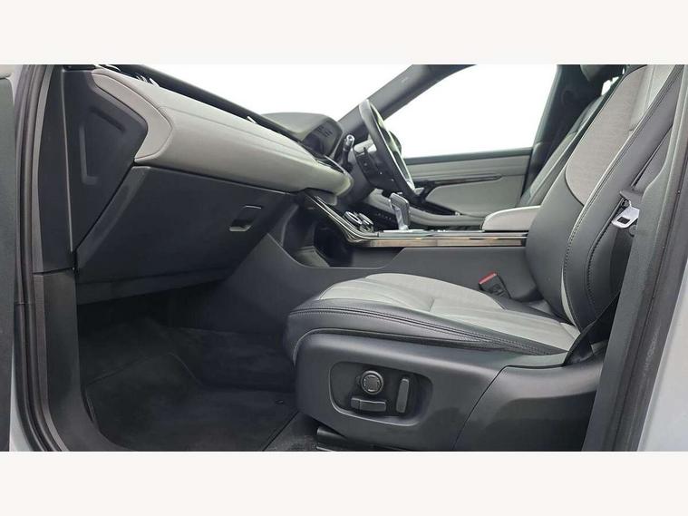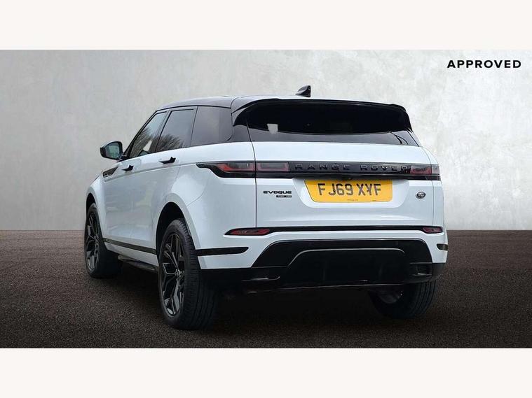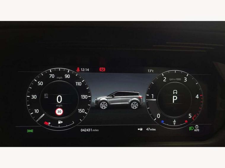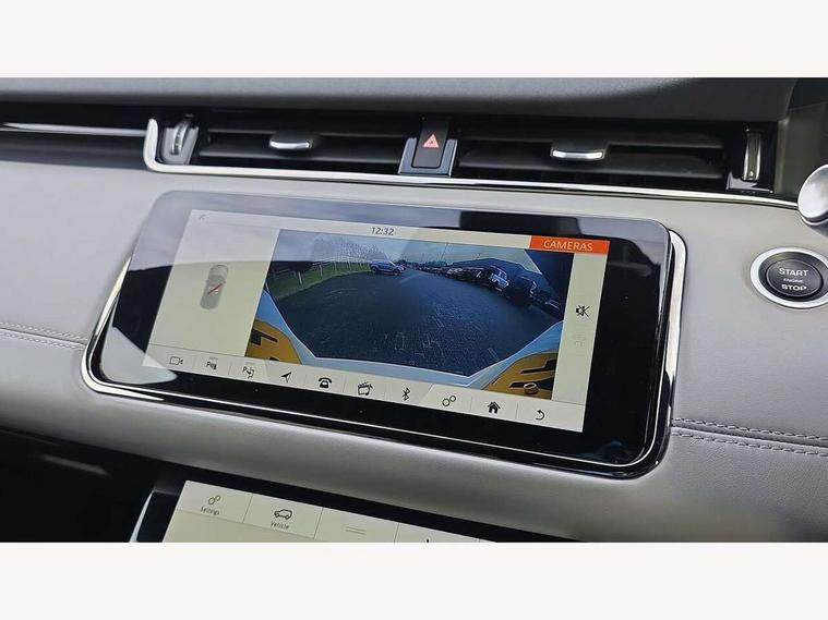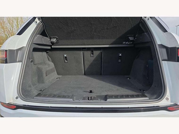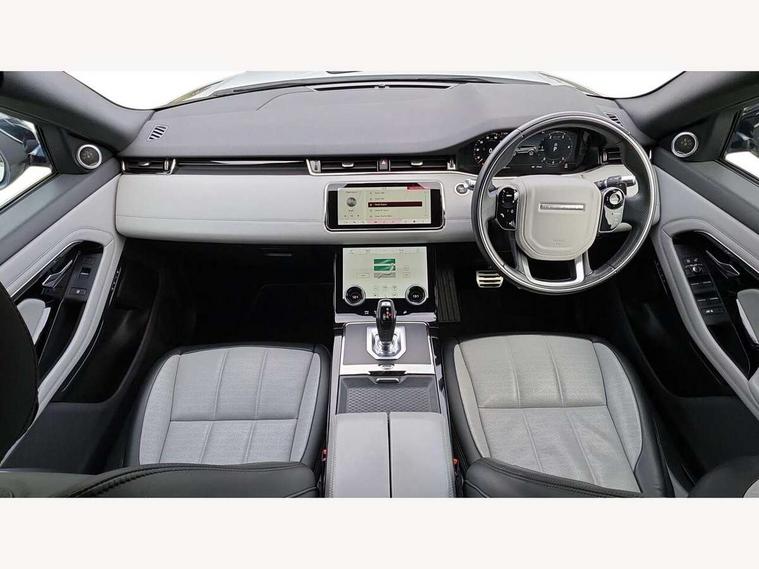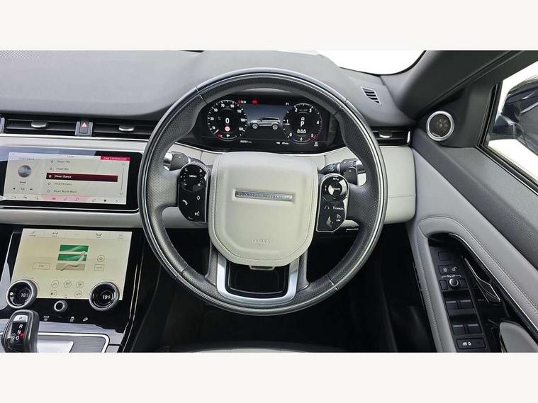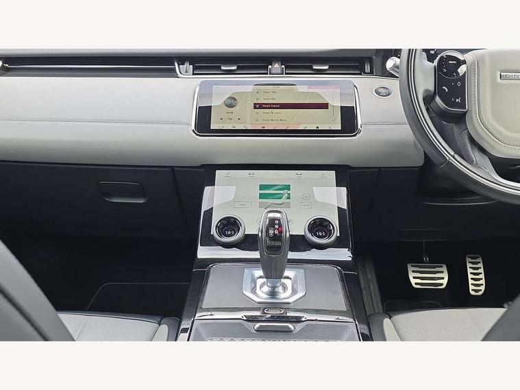 360 degree parking aid, Android Auto, Apple car play, Blind spot assist, Bluetooth connectivity, Brake pad wear indicator warning light, Clear exit monitor, Driver condition monitor, Duo touch pro, Electronic power assisted steering (EPAS), InControl remote, Interactive Driver display instrument cluster, Land Rover InControl apps, Lane keep assist, Navigation pro system, Park assist - Parallel, perpendicular and parking exit, Powered gesture tailgate/boot lid, Pro services and wifi hotspot, Push button starter, Rear traffic monitor, Smart settings, Traffic sign recognition with adaptive speed limiter, Voice control system, All terrain progress control, Efficient Driveline, Passive suspension, Terrain Response 2 Auto, Digital Audio Broadcast radio-DAB, Steering wheel mounted controls, Automatic headlight levelling, ClearSight interior rear view mirror, Electric windows with one touch open/close and anti trap, Evoque and R-Dynamic badge, Flush deployable exterior door handles, Heated rear window with timer, Heated washer jets, Heated windscreen, Power fold, auto-dimming, heated door mirrors with memory and approach lights, Rain sensing windscreen wipers, Rear fog lights, Shadow atlas bonnet and tailgate script, Tailgate spoiler, 40:20:40 split folding rear seats, Black gearshift paddles, Bright metal pedals, Isofix system on outer rear seats, Overhead lighting console, Overhead stowage for sunglasses, Passive front head restraints, Rear air vents, Rear centre headrest, Sunvisors with illuminated vanity mirrors, Twin front cupholders with cover, Twin sliding front centre armrest, 3 rear 3 point seatbelts, Anti-lock braking system (ABS), Customer configurable autolock, DSC - Dynamic Stability Control, Electronic brake force distribution, Electronic parking brake, Electronic traction control, Front and rear seatbelt reminder, High speed emergency braking, Hill descent control, Hill launch assist, Low traction launch, Power operated child locks, Roll stability control, Six airbags - Driver and passenger airbags/driver knee airbag/front side airbag and curtain airbags, Torque vectoring brake, Tyre pressure monitoring system, Alarm, Immobiliser, Intrusion sensor, Keyless entry, Locking wheel nuts,