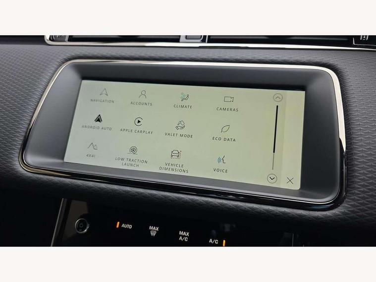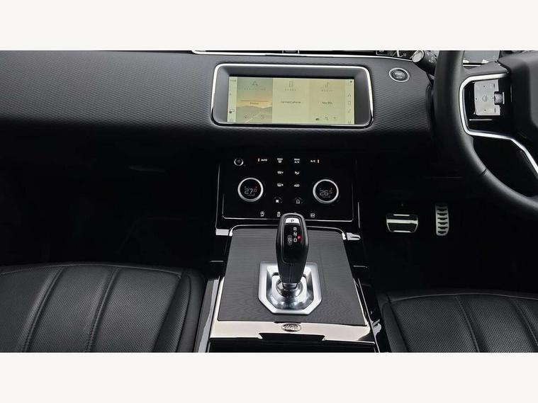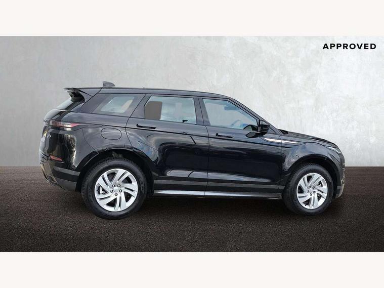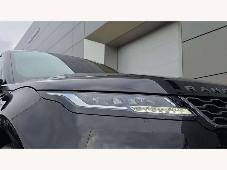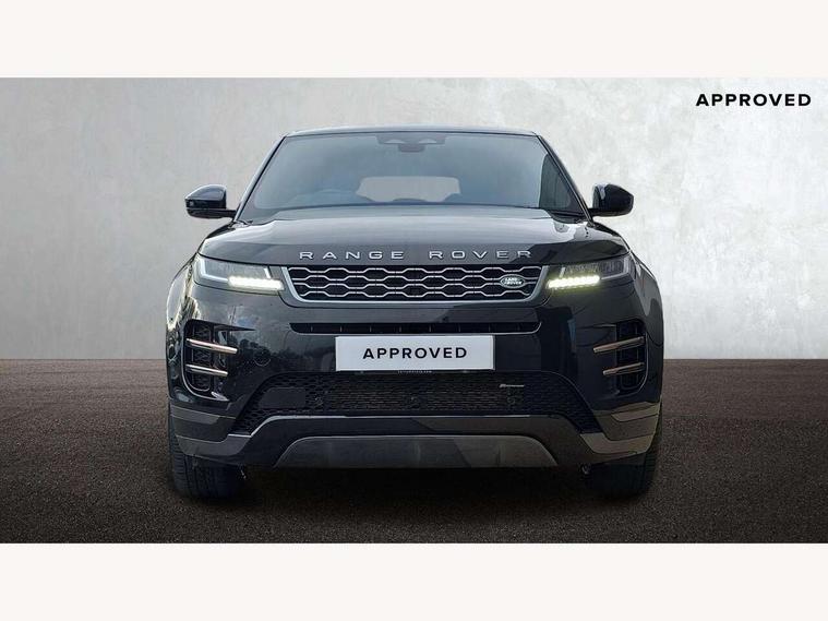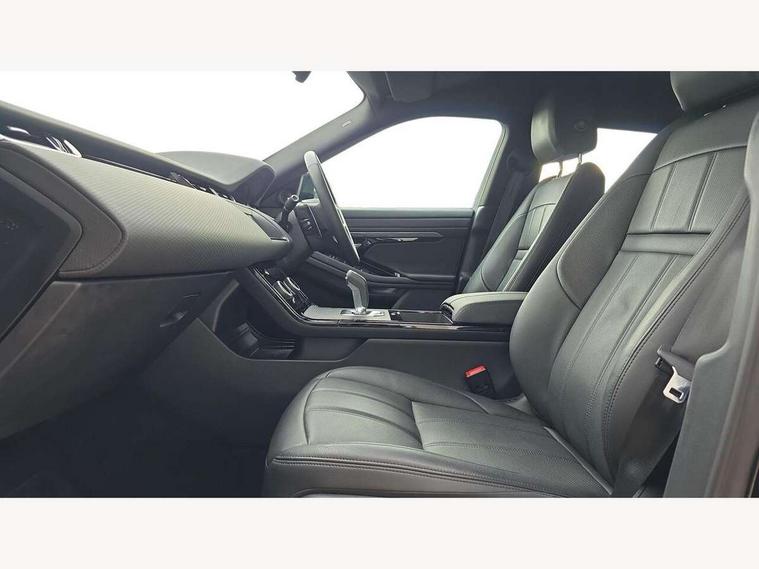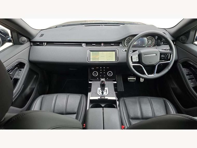 Adaptive cruise control, Android Auto, Apple car play, Bluetooth connectivity, Brake pad wear indicator warning light, Driver condition monitor, eCall emergency system, Electronic power assisted steering (EPAS), Front and rear parking aid, InControl remote, Land Rover InControl apps, Lane keep assist, Pivi pro connected includes upgraded infotainment, connected navigation pro, Nuance speech licence, Push button starter, Traffic sign recognition with adaptive speed limiter, Voice control system, 7 kW onboard charger, All terrain progress control, Electric rear axle drive, Home charging cable, Large fuel tank, Passive suspension, Public charging cable, Terrain Response 2 Auto, Digital Audio Broadcast radio-DAB, Steering wheel mounted controls, Auto headlights, Daytime running lights, Electric windows with one touch open/close and anti trap, Evoque and R-Dynamic badge, Flush deployable exterior door handles, Heated rear window with timer, Heated washer jets, Heated windscreen, P300e badge, Power fold, auto-dimming, heated door mirrors with approach lights and auto dimming driver side, Rain sensing windscreen wipers, Rear fog lights, Rear side wing doors, Rear wiper, Tailgate spoiler, Third brake light, 40:20:40 split folding rear seats with centre headrest and armrest, Ambient interior lighting, Bright metal pedals, Isofix system on outer rear seats, Overhead lighting console, Overhead stowage for sunglasses, Passive front head restraints, Rear air vents, Rear centre headrest, Rear head restraints, Satin chrome gearshift paddles, Single passenger seat, Sunvisors with illuminated vanity mirrors, Twin sliding front centre armrest, 3 rear 3 point seatbelts, Anti-lock braking system (ABS), Customer configurable autolock, DSC - Dynamic Stability Control, Electronic brake force distribution, Electronic parking brake, Electronic traction control, Emergency braking, Front and rear seatbelt reminder, Hill descent control, Hill launch assist, Low traction launch, Power operated child locks, Roll stability control, Six airbags - Driver and passenger airbags/driver knee airbag/front side airbag and curtain airbags, Torque vectoring brake, Tyre pressure monitoring system, Alarm, Immobiliser, Intrusion sensor, Locking wheel nuts,