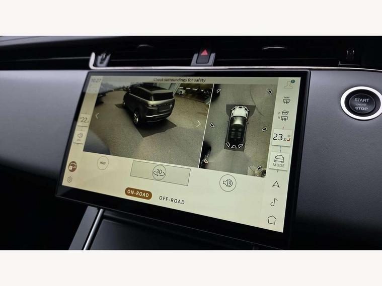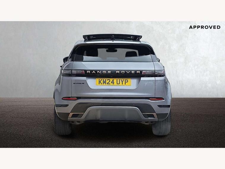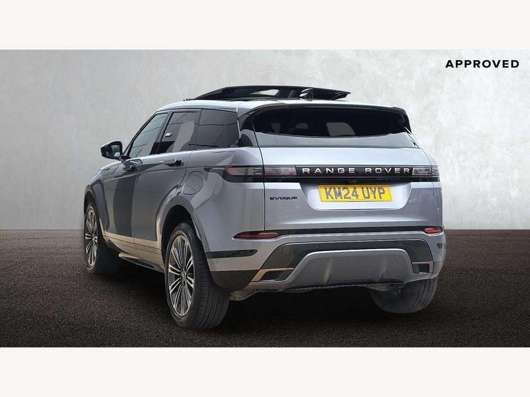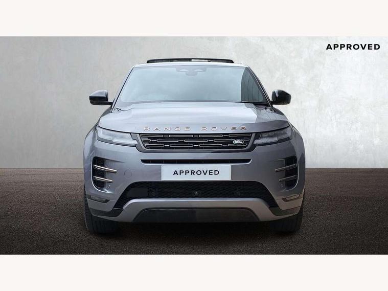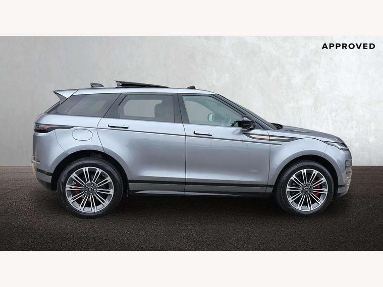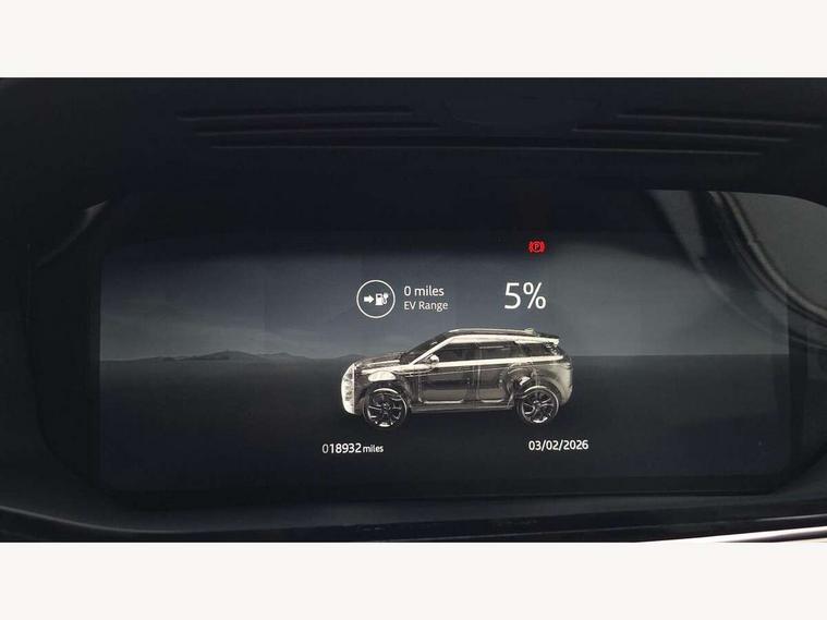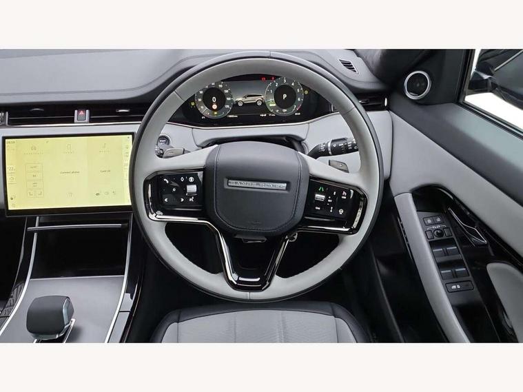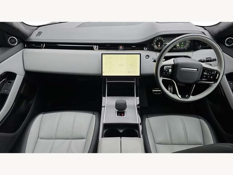 11.4" touch screen, 3D 360 degree surround camera with wade sensing, Adaptive cruise control, Android Auto, Apple car play, Blind spot assist, Bluetooth connectivity, Brake pad wear indicator warning light, Driver condition monitor, eCall emergency system, Eco mode, Electronic power assisted steering (EPAS), Front and rear parking aid, Head up Display, InControl remote, Interactive driver display, Land Rover InControl apps, Lane keep assist, Pivi pro connected includes diamond pivi variant, smart settings, connected navigation pro, nuance speech licence, Powered tailgate/boot lid, Rear collision monitor, Rear traffic monitor, Traffic sign recognition with adaptive speed limiter, Voice control system, Wireless device charging, All terrain progress control, Configurable dynamics, Electric rear axle drive, Home charging cable, Large fuel tank, Passive suspension, Public charging cable, Terrain Response 2, Digital Audio Broadcast radio-DAB, Steering wheel mounted controls, Acoustic laminated windscreen, Auto headlights, Automatic headlight levelling, ClearSight interior rear view mirror, Electric windows with one touch open/close and anti trap, Flush deployable exterior door handles, Front and rear recovery eyes, Front fog lights, Heated rear window with timer, Heated washer jets, Heated windscreen, Pixel LED headlights with signature DRL and LED tail Lights, Power fold, auto-dimming, heated door mirrors with approach lights and auto dimming driver side, Rain sensing windscreen wipers, Range rover branding illuminated metal tread plates in loadspace and row 1 with brand name script and metal in row 2, Rear animated directional indicators, Rear fog lights, Rear side wing doors, Rear wiper, Side repeater indicators in mirror, Sliding panoramic roof with powered sunblind, Tailgate spoiler, Third brake light, Winter wiper park position, 14 way driver memory electric front seats with 2 way manual headrests + 4 way lumbar support, bolsters, 40:20:40 split folding rear seats with centre headrest and armrest, Ambient interior lighting, Bright metal pedals, Cabin Air Purification plus, Configurable cabin lighting, Customer configurable single point entry, Electrically adjustable steering column with memory function and easy entry/exit, Front and rear cupholders, Heated and cooled front seats, Heated rear seats, Heated steering wheel, Isofix system on outer rear seats, Overhead lighting console, Overhead stowage for sunglasses, Passive front head restraints, Premium carpet mats, Rear air vents, Rear head restraints, Satin chrome gearshift paddles, Single passenger seat, Sunvisors with illuminated vanity mirrors, Twin sliding front centre armrest, Online pack with data plan - Evoque, Power socket pack 2 - Evoque, 3 rear 3 point seatbelts, Anti-lock braking system (ABS), Brake hold function, Customer configurable autolock, DSC - Dynamic Stability Control, Electronic brake force distribution, Electronic parking brake, Electronic traction control, Emergency braking, Front and rear seatbelt reminder, Hill descent control, Hill launch assist, Low traction launch, Occupant protection assist, Passenger seat occupant detector, Power operated child locks, Roll stability control, Six airbags - Driver and passenger airbags/driver knee airbag/front side airbag and curtain airbags, Torque vectoring brake, Tyre pressure monitoring system, Alarm, Immobiliser, Intrusion sensor, Keyless entry, Locking wheel nuts, All season tyres,