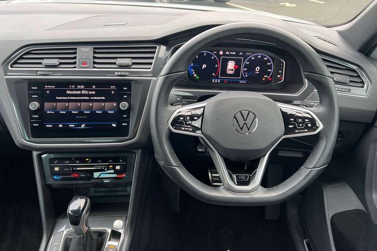 Adaptive cruise control ACC stop and go including speed limiter, App-Connect incl. App-Connect Wireless for Apple CarPlay and Android Auto, Bluetooth phone integration system, Distance control assist, Driver alert system, Driver profile selection, Dynamic road sign display, eCall emergency call system, Electromechanical speed sensitive power steering, Engine start/stop button, Lane keeping system Lane Assist, Lights on warning, Multifunction front facing camera, Outside temperature display, Premium multifunction display with multi colour display, Remote control boot opening, Rev counter, Revision / skills operating concept travel assistant, Service interval indicator, Speed limit display, Start/stop system with regenerative braking, Trip computer, Warning sound and light for doors and tailgate open, Battery regeneration during braking, Diesel particulate filter, Misfuel prevention device for diesel engine, Selective Catalytic Reduction, XDS electronic differential lock for improved traction and handling, 4 X 20 watt output, 8 Speakers, Diversity antenna for FM reception, Radio, SD card slot, Simultaneous pairing of 2 compatible mobile devices, SMS functionality - read, compose and send SMS messages using touch-screen display, Title and cover art display, USB C ports, Auto dimming interior rear view mirror, Automatic headlight control system, Body colour door handles, Chrome moldings on the side windows, Coming/leaving home lighting function, Dynamic headlight range control, Front and rear electric windows, Heated rear window, High level 3rd brake light, Laminated safety glass windshield, heat and sound insulating, LED headlamps with LED separate daytime running light and dynamic cornering light, LED rear combination lamps, LED rear number plate lights, License plate carrier in front and rear, Poor weather light and cornering light, R Line body kit, R Line side sills, Rain sensor windscreen wipers, Rear exhaust tailpipe, Rear fog lamp, Rear side wing doors, Rear spoiler in R style, Rear windscreen washer and wiper with interval delay, Side and rear windows in heat insulating glass, Trailer Stability Programme, Unique R Line badging, Windscreen wipers/ intermittent wipe + 4 position delay, 12V outlet in center console rear and in luggage compartment, 12V outlet in front and tray, 2 cup holders in front, 2 LED front reading lights, 2 LED rear reading lights, 3 bench rear seats in 2nd row, 3 rear headrests, 4 load lashing points, 40:20:40 split folding rear seats, Air Care Climatronic 3 zone automatic climate control with enhanced air filter and controls in the rear, Backrest release for left front seat, Black headlining, Brushed stainless steel pedals and footrest, Carpet mats in front and rear with decorative stitching in Gray, Climate control unit rear with touch function, Door and side trim panel in foam film, insert in leatherette, Front centre armrest, Front footwell illumination, Front seats head restraints (x-adjustment), Height adjustable front seats, Height/reach adjust steering wheel, Instrument lighting white adjustable panel illumination, Interior light with delay, Isofix Preparation 2 Rear child seats, Leather gear knob, Lockable cooled glovebox, Luggage compartment lighting, Luggage net, Rear bench seat asymetrically split folding, longitudinally movable and folding with load-through hatch and center armrest, Remote unlocking for rear seat backrest, Removable luggage cover, Removable rear headrests, Safety optimised front head restraints, Single front passenger seat, Sliding/reclining rear seats, Standard rear seat release, Storage compartment in driver's door, Storage compartment in passenger's door, Storage compartment in rear doors, Storage compartments in luggage area left and right, Storage tray on dashboard, Sun visors with illuminated vanity mirrors, Top front comfort seats, Variable boot floor, height adjustable and removable, Driver assistance pack plus - Tiguan DSG, 3 point seat belt for centre rear seats, 3 point seat belts with seat belt pretensioners for the outer rear seats, Active bonnet, Curtain airbags for front and rear passengers, Driver/Front Passenger airbags, Drivers knee airbag, Electronic parking brake with auto hold, Electronic Stability Control with driver steering recommendation, ABS, ASR, EDL, EDTC and trailer stabilization, Front assist with autonomous emergency braking (for Adaptive Cruise Control ACC up to 130 mph), Front disc brakes, Front passenger airbag deactivation, Front side airbags, Height adjustable front 3 point seatbelts + pretensioners, Hill hold control, Manual child proof rear door locks, Pedestrian monitoring system, Power assisted brakes, Proactive passenger protection system in combination with front assist, Rear disc brakes, Rigid safety cell with front and rear crumple zones, Two tone horn, Warning sound and light for front seat belts if unfastened, Anti theft alarm system with interior monitoring, backup horn and towing protection, Anti theft wheel bolts, Electronic engine immobiliser, Tool kit,