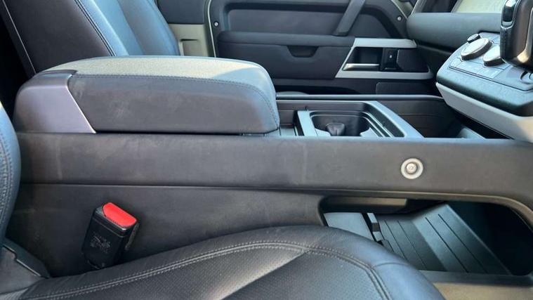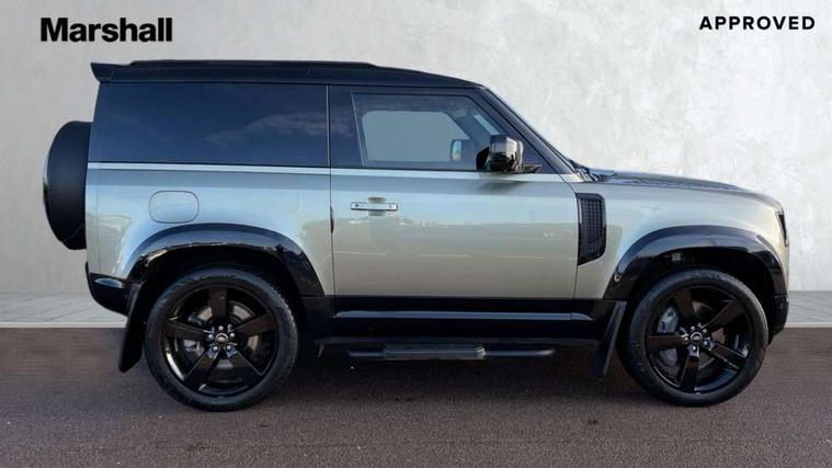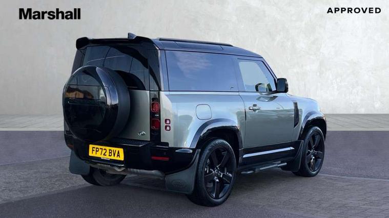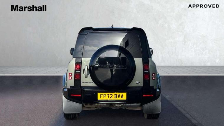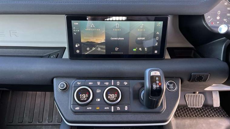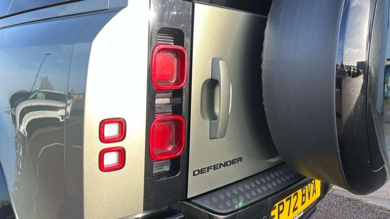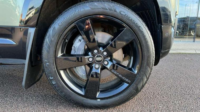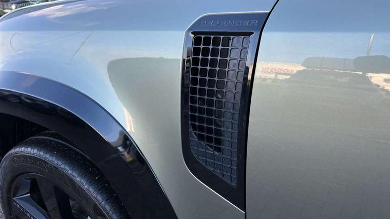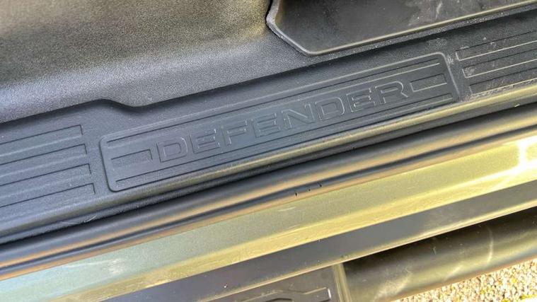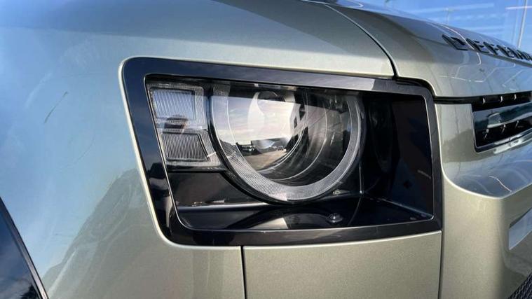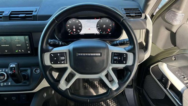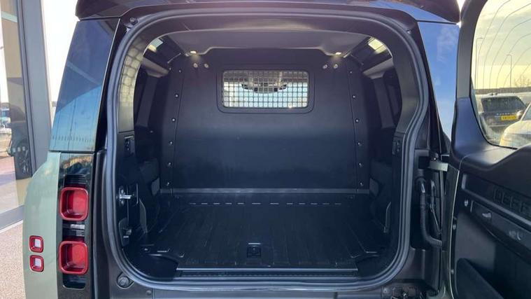 Customer Configurable Autolock, 360 parking aid, 3D Surround Camera with 360 View, 180 Rear View, Front Traffic Detection, Forward Vehicle Guidance, Tow Hitch Assist and clear sight Ground View, Blind spot assist, Brake Hold, Driver condition monitor, Electric power assisted steering (EPAS), Lane keep assist, Low traction launch, Pivi pro connected, Rear traffic monitor, Traffic sign recognition adaptive speed limiter, Trip computer, Tyre pressure monitor, Wade Sensing, Android Auto, Apple CarPlay, DAB Radio (Digital Audio Broadcasting), Meridian 280W sound audio system with 7 speakers with subwoofer, Alpine lights, Assisted tailgate, Auto High Beam Assist, Automatic headlight levelling, Automatic headlights and rain sensitive front wipers, Centre high mounted stop light, Electric heated/power fold door mirrors with approach lights and auto dimming driver side, Electric windows with one touch open/close and anti-trap, Exterior signage panel, Follow me home lighting, Front fog lights, Heated rear window with timer, Heated windscreen, LED tail light, Privacy glass, Puddle lights, Rear fog lights, Rear wash wiper, Side-hinged tailgate, Standard roof, Standard tread plates, Additional lashing points, Dual zone climate control, Durable rubber cabin flooring, Footwell lights, Full height bulkhead behind row 1 seats, Glovebox storage, High sided rubber mats, Loadspace cover, Loadspace hooks, Loadspace rubber mat, Manual adjustable steering column, Overhead stowage for sunglasses, Rear centre headrest, Rear reading light, Standard interior, Standard seating configuration, Sunvisors with illuminated vanity mirrors, Twin front cupholders, Upgraded loadspace LED lighting, Online pack - Defender with data plan, Brake pad wear indicator, Electronic traction control, Emergency braking, Front airbags, with passenger seat occupant detector, Power operated child locks, Remote for (e-Call, Optimised assistance call, InControl app, Climate, beep and flash and door), Seat belt reminder, Intrusion sensor, Keyless entry system, Locking wheel nuts, 8 speed automatic transmission, ABS and EBA, All wheel drive, CBC - (Cornering brake control), Dynamic stability control, Electronic brake force distribution, Electronic park brake, Gradient acceleration control, Hill Descent Control, Hill start assist, Particulate filter (DPF), Push button start, Roll stability control, Trailer stability assist, Twin speed transfer box (high/low range),