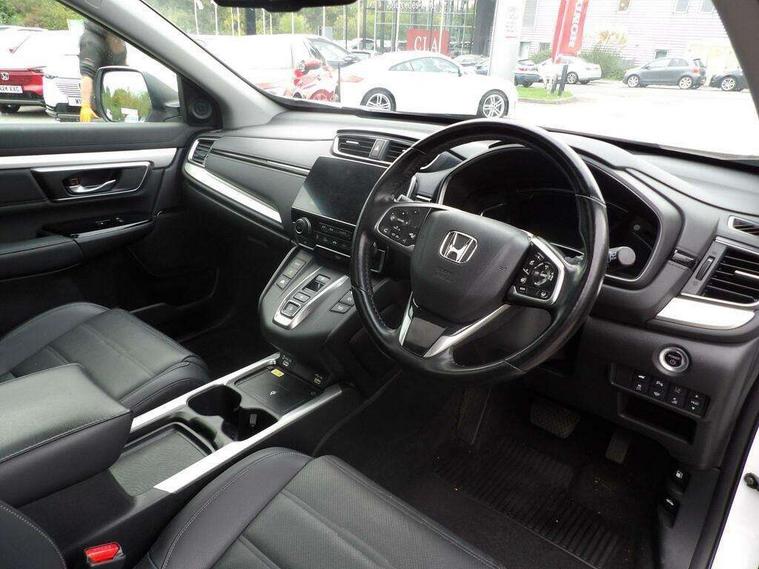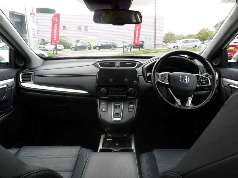 Adaptive cruise control, Agile handling assist, BLIS (Blind Spot Information System) with dual power heated blind spot mirrors, Bluetooth hands free telephone connection, E-call, Economy mode, Electric power steering, Emergency stop signalling system, Forward collision warning, Front parking sensors, Hands free tailgate, Head up Display, Honda CONNECT with GARMIN Navigation + 7" touchscreen, DAB radio, Apple CarPlay, Android Auto, Aha app integration and internet browsing, Intelligent multi info display, Lane departure warning system, Lane keep assist system, Low speed following, Rear parking sensors, Rear view camera, Road departure mitigation, Speed limiter, Traffic sign recognition, Wireless charging, Drive mode (Econ, Sport, EV), Vehicle stability assist, 2 USB sockets in rear, 2x USB sockets in front, 9 speakers, DAB Digital radio, Dashboard centre speaker, Front tweeters, Steering wheel mounted controls, Subwoofer, Aspheric door mirrors, Auto dimming rear view mirror, Auto wipers, Automatic headlights with dusk sensor, Body colour bumpers, Body colour door handles, Body colour door mirrors, Chrome grille, Cornering light, Door mirrors tilt when reversing, Electric front windows/one touch facility, Electric rear windows + one touch facility, Electrically adjustable and heated door mirrors, Electrically retractable door mirrors, Front LED Indicator lights, Front windscreen de-icer, High beam assist, LED daytime running lights, LED front fog lights, LED Headlights, LED rear lights, Panoramic opening glass sunroof, Rain sensor, Rear privacy glass, Rear side wing doors, Rear wiper, Roof rails, Shark fin roof aerial, Tailgate spoiler, Third brake light, Welcome home function, 3 seat bench in 2nd row, 60/40 split folding rear seat, 8 way electrically adjustable drivers seat + mirror memory, Accessory sockets, Ambient interior lighting, Ambient light in roof, AWD emblem rear, Cargo hooks, Courtesy lights, Driver's electric adjustable lumbar support, Driver/passenger front seatback pockets, Driver/passenger sunvisors with illuminated vanity mirrors, Dual zone automatic climate control, Electric lumbar adjustment on passenger's seat, Footwell ambient lighting, Front centre armrest, Front map lights, Front passenger seat height adjust, Heated front seats, Heated rear seats, Heated steering wheel, Hybrid emblem, Illuminated glovebox, Instrument panel with garnish wood film, Isofix child seat preparation, Leather steering wheel, Leather upholstery, Paddle shift controls, Rear air vents, Rear centre armrest, Rear headrests, Rear reading lights, Silver interior door handles, Silver interior panels, Single front passenger seat, Sunglasses holder with mirror, Tilt/telescopic adjustable steering wheel, Tonneau cover, Trunk light, 5 x 3 point seatbelts, ABS/EBD, Anti-whiplash front headrests, Brake assist function, Collision mitigation braking system, Deflation detection system, Driver airbag, Electronic parking brake with auto hold, Front and rear curtain airbags, Front and rear seat belts with emergency locking retractor (ELR), Front centre airbag, Front passenger airbag, Front side airbags, Hill start assist, Manual child lock in rear doors, Passenger airbag deactivate switch, Honda super locks, Immobiliser, Security alarm, Selectable door unlock, Smart entry + Smart start, Ultrasonic security sensor, Tyre repair kit,