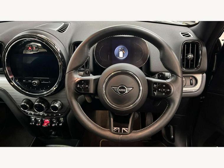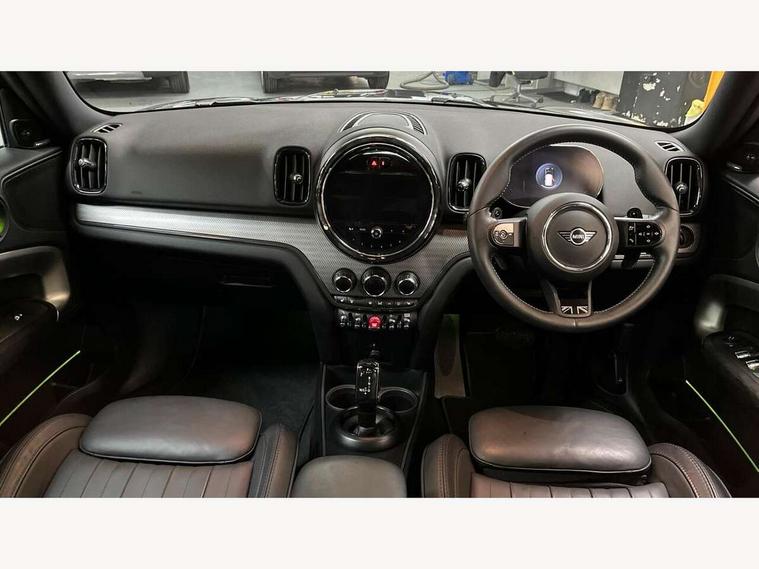 Active Guard incl speed limiting and lane departure functions with auto steering, and front collision warning with brake intervention, Automatic start/stop function with brake energy recuperation, Electro-mechanical speed dependant steering assistance, Instrument cluster, MINI Driving Modes - centre toggle switch to control driving setting (sport, mid and green), Mini E-call, MINI TeleServices, On board computer, Double Vanos system, Fully variable valve control, High precision injection, Performance Control, Sport automatic transmission with steering wheel paddles, FM tuner and DAB digital radio, 3rd brake light, Bonnet scoop, Chrome fuel filler cap, Day time driving lights, Dynamic brake lights, Electric windows, Heated rear window, Heated windscreen washer jets, LED fog lights, Metal door sill strips with Cooper S imprint, MINI yours exterior badge in C-Pillar, driver and passenger side, Model logo, Model logo on Tailgate, Rain sensor with auto headlights, Rear fog lights, Rear side wing doors, Rear window wiper, Side scuttle panel with integrated indicator, Split rear doors, Sun/heat protection glass, White indicator lenses, 12V socket in centre console, 3 seat bench in 2nd row, 360L luggage compartment capacity, 4 lashing eyes in luggage compartment, 40:20:40 split folding rear seats, Anthracite headlining with grab handles and clothes hooks, Chrome interior highlights, Colour line - Carbon black, Cupholders, English handbook, Front headrests, Glove compartment, Height and length steering column adjustment, Interior lighting with 12 basic colours selectable via toggle switch in roof, Isofix rear child seat preparation, Leather gearshift lever and handbrake gaiters, LED reading lights, vanity mirror lights, front foot well light and spotlight on front seats, MINI Yours fine walk nappa leather steering wheel with contrast stitching in silver and MINI Yours badge, Multifunction steering wheel, Rear headrests, Single front passenger seat, Storage compartments in doors, Sunvisors with vanity mirrors, Excitement pack - Countryman, Navigation plus pack - Countryman, 2 tone horn, 3 point seatbelts on all seats, 6 Airbags - front, side, head and seat belt tensioners, Anti-lock braking system (ABS), DSC - Dynamic Stability Control, Electronic handbrake, Front and rear disc brakes, Hill start assist, Manual rear child locks, Tyre pressure monitoring system, Alarm system with tilt sensor, monitoring doors, bonnet interior and tailgate, Auto drive away locking, Deadlocking function, Electronic vehicle immobiliser, Locking wheel bolts, Start/stop toggle with keyless go, Tool kit,
