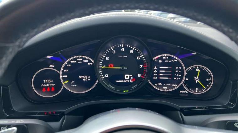 Apple car play/Android Auto, Auto start/stop function and coasting, Brake pad wear indicator, Central analogue rev counter with black dial face, power meter and pointers in acid green, Driver personalisation for climate, audio and communication, assistance systems and other customisable car systems, Energy recuperating braking system, High resolution 12.3-inch touchscreen display in full HD resolution, Individual mode for individual selection of vehicle drive settings, Instrument cluster with two high-resolution displays, Mobile phone preparation with Bluetooth interface for telephone and music, Porsche Communication Management (PCM) including online navigation module, mobile phone preparation, audio interfaces and voice control system, Power steering plus, Power tailgate, Vehicle electrical system recuperation, Warn and brake assist including pedestrian protection, 75 litre fuel tank, 8 Speed Tiptronic S, Aluminium cylinder heads and engine block, Charge port, Charging cable for household socket, Charging cable for industrial socket, Direct fuel injection (DFI) with central injector position, Front and rear aluminium multi link axles, Gasoline particulate filter, Lightweight battery, Mobile charge cable(mode 2)for charging at household and indus electrical outlets inclu pouch basic wall 4.5m cable between control unit and vehicle, Panoramic roof with fixed glass panel, Power electronics, battery manager and electrically powered auxiliary units, Supply cable for domestic electrical socket, Turbocharger with twin scroll turbine, VarioCam Plus, Water cooled with thermal management, Digital radio, Two USB charge ports in rear compartment, Two USB charging and connectivity ports in the front centre console storage compartment, Active air intake flaps, Air intake slats with inlays in rhodium silver finish, Automatic headlight activation including welcome home functionality, Bumper system with high strength cross members and two deformation elements + Two receptacles with screw threads towing lug + onboard tool kit, E-Hybrid logo on front wings with acid green border, Electric windows + anti trap protection + one touch open/close drivers side, Electrically adjustable, folding and heated exterior mirrors, aspherical on drivers side including courtesy lights, Extensive aerodynamic underbody protection, Four point signature LED daytime running lights, Front end with integrated air intakes and airblades for the side air intakes, Front light modules including position lights and direction indicators in LED light guide technology, Front windscreen wipers with two speeds, intermittent wipe and rain sensor, Heated rear window with automatic switch off, High gloss silver model designation on tailgate with acid green border, LED High level third brake light integrated into roof spoiler, Porsche logo integrated into rear taillight strip, PORSCHE' lettering integrated in tailgate strip, Preparation for the roof transport system, Rear window wiper with intermittent function and washer jet, Thermally tinted insulated glass all round, App-controlled remote parking pre-climatisation, B-pillar clothes hooks on driver and passenger's side, Charge air cooling, Driver/passenger sunvisors and vanity mirrors, Elevated centre console with handles, Front and rear bottle holders in door panels, Front head restraints, Isofix fastening system for child seats on outer rear seats, LED interior light with switchoff delay function, footwell + glove compartment light, ashtray + ignition lock illumination, front + rear reading light, Manual height adjust for driver and front passenger seat belt, Mobile charger including transport case and basic wall mounting bracket and Cable connection between control unit and vehicle (4.5m), Particle/pollen filter with active carbon filter, Plastic pedal pads, Rear seat split folding design 40:20:40, Fold out centre armrest with integrated cup holder, manual fore/after adjust and backrest angle adjust, Rigid integrated and removable parcel shelf, Sideskirts in black plastic, Storage compartments - Cooled glove compartment, front centre console, door and map pockets on front seat backrests + side luggage compartment, Three 12V power sockets - front below the glove compartment, centre console and at side of luggage compartment, Two integrated cup holders in front and rear with variable diameter, 3 point automatic seatbelts with front and outer rear seats pretensioners and front force limiter, 4 piston aluminium monobloc fixed caliper brakes at rear and internally vented brake discs, 6-piston aluminium monobloc fixed caliper brakes at front, internally vented brake discs, Active bonnet, Auto hold function, Brake discs with diameter 360 mm at front, 358 mm at rear, Curtain airbags along roof frame and side glazing from the A-pillar to the C-pillar, Electronic parking brake, Front passenger airbag deactivation function for front seat mounting of child seat, Front side airbags integrated into seat, Full size driver and front passenger airbags, Knee driver and passenger airbags, Multi-Collision braking, Porsche hill control (PHC), PTM Porsche Traction Management active all-wheel drive with an electronically variable, map-controlled multi-plate clutch, ABD and anti-slip regulation, Regenerative braking system, Rollover detection for activation of curtain airbags and seat belt pretensioners, Seat belt warning system for driver and front passenger and rear seat system, Side impact protection in doors, Tyre pressure monitoring system, Vehicle stability system, Porsche stability management (PSM) including ABS, ASR, ABD, MSR and trailer stability management, Alarm system with ultrasonic interior sensor and two stage locking, Engine immobiliser with key transponder, Keyless start, Porsche vehicle tracking system (PVTS Plus) subscription required, Remote central locking, Air curtains in wheel arch housings, Staggered tyre fitment with wider section rear tyres, Tyre sealing compound and electric inflator,